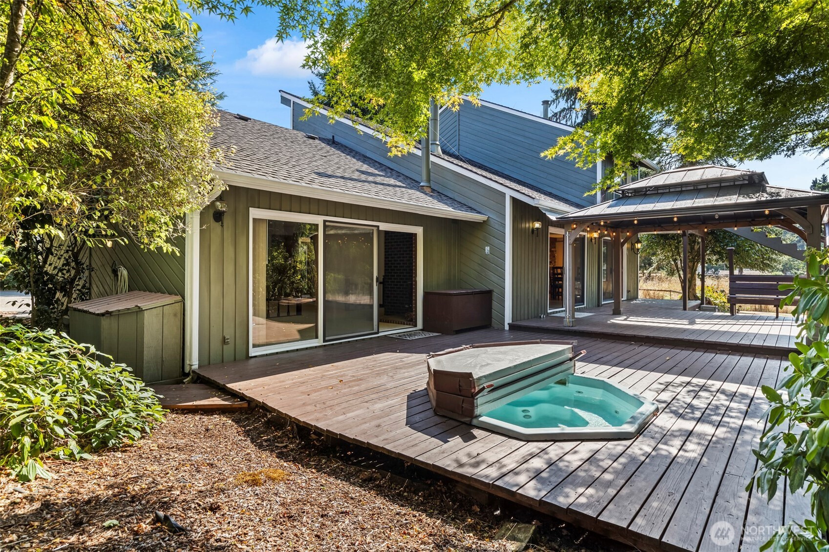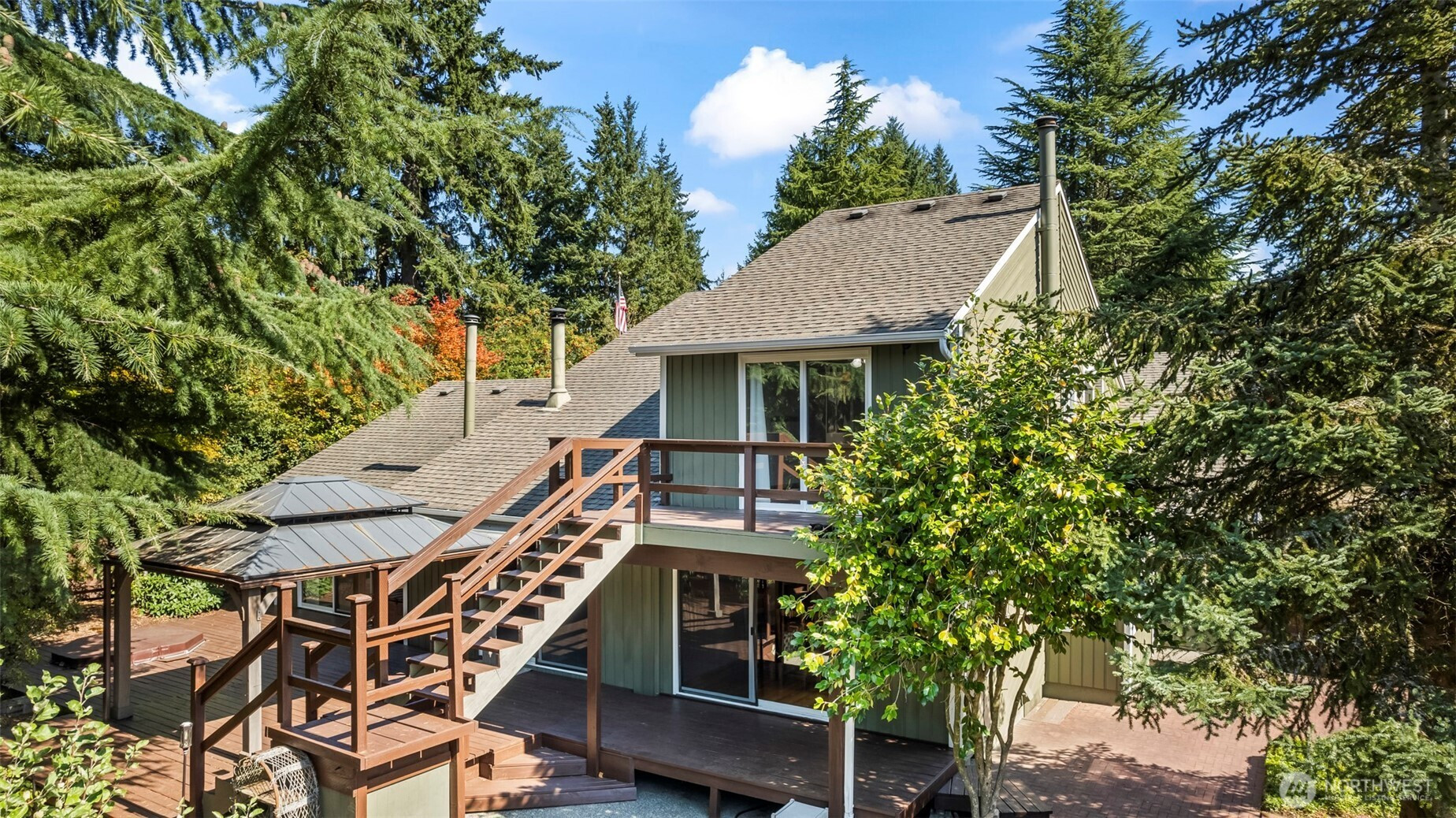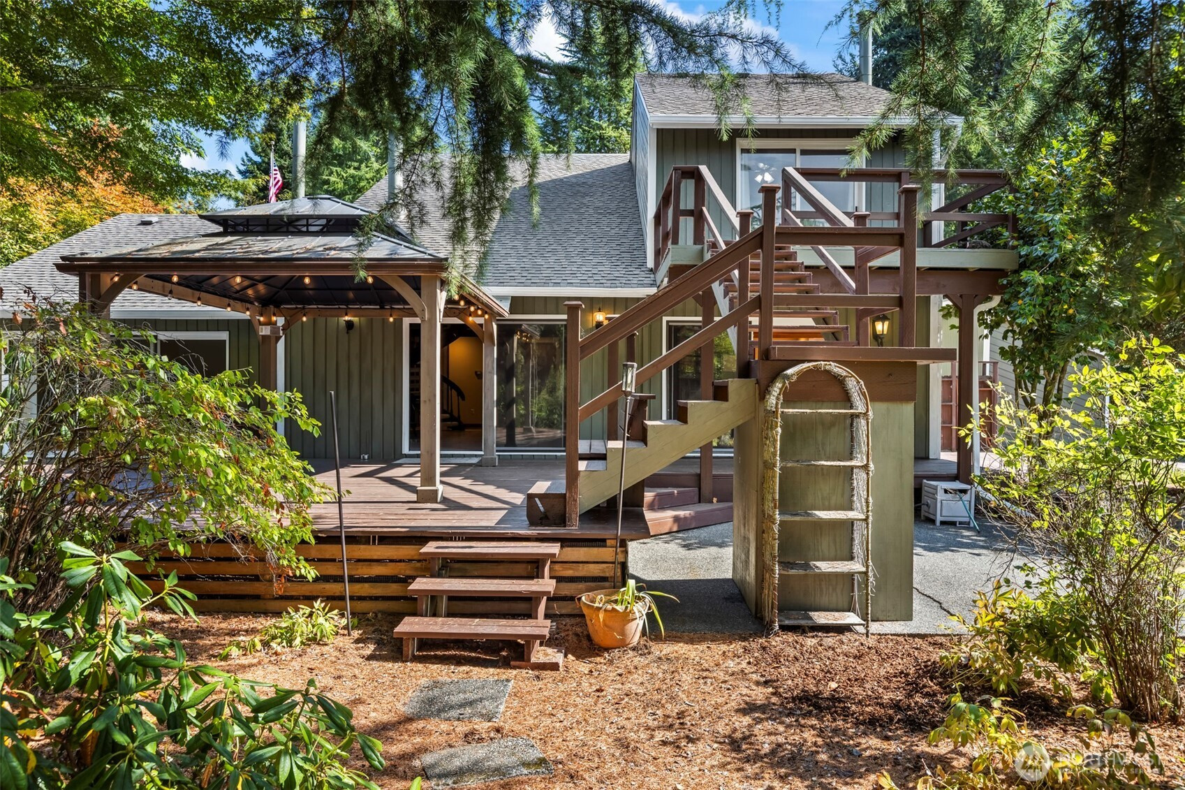 Tucked away just off 72nd & Waller, this home offers the rare gift of privacy close in. Centered on just over an acre and is fenced and cross fenced, this home and property feels like a retreat. Soaring cedar-lined ceilings, a dramatic spiral staircase with catwalk, warmth and character throughout. The spacious main-level primary suite w/full bath, walk in closet and wood stove opens to a private deck w/hot tub overlooking the greenbelt—perfect for unwinding at day’s end. Entertain with ease in the updated kitchen with granite counters, butler’s pantry, and huge walk-in pantry. Fresh paint, gas furnace w/heat pump, wired for generator, oversized 2-car garage, carport, and storage shed make this home as practical as it is unique.