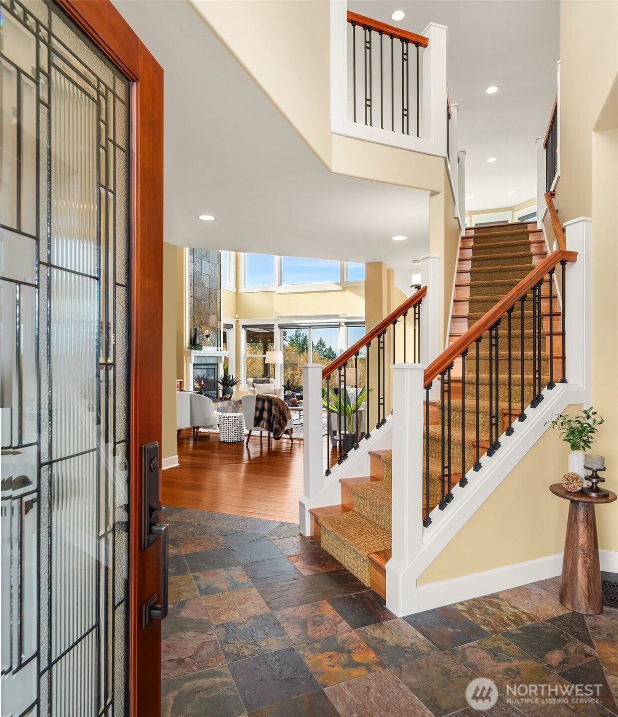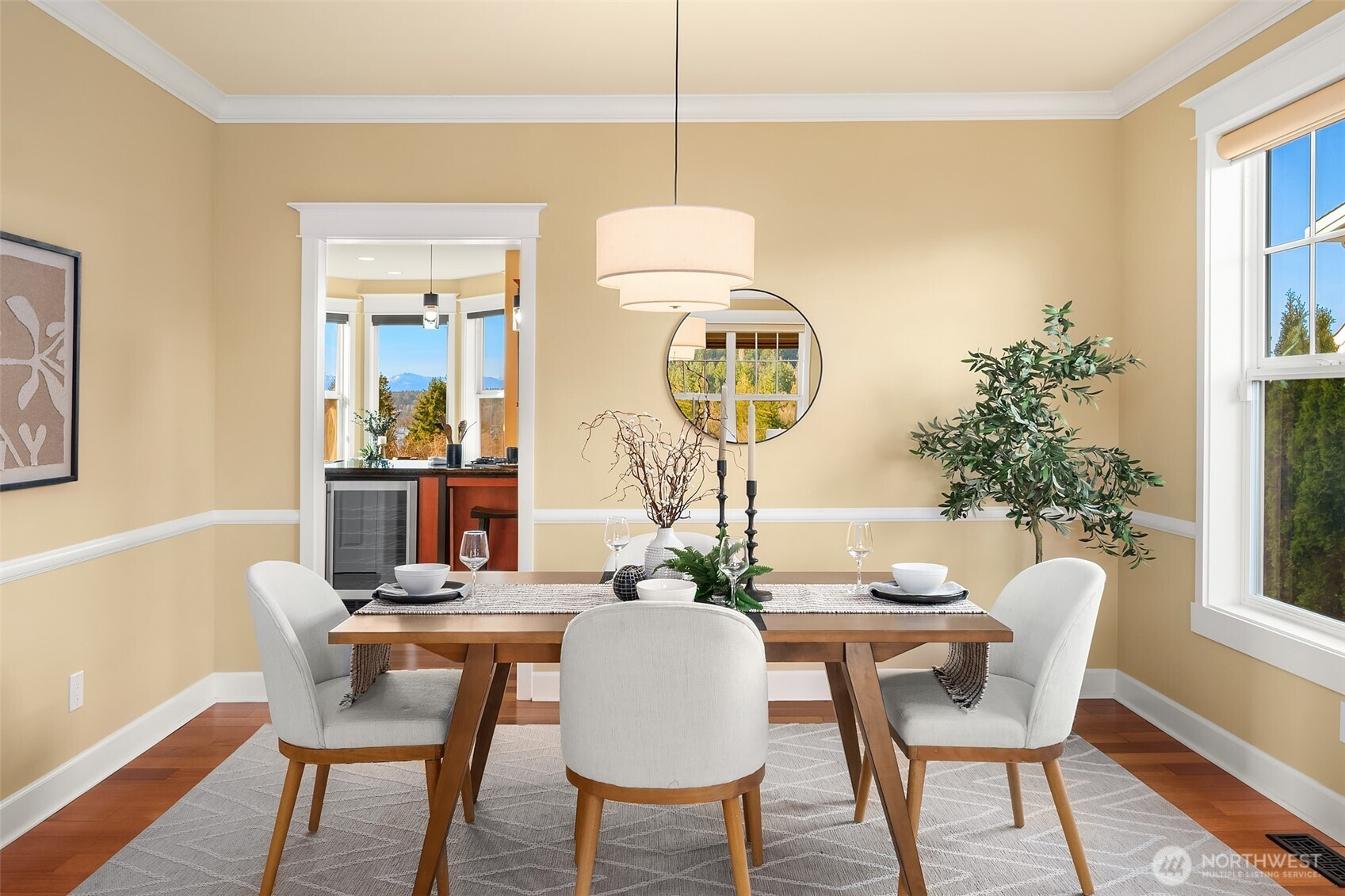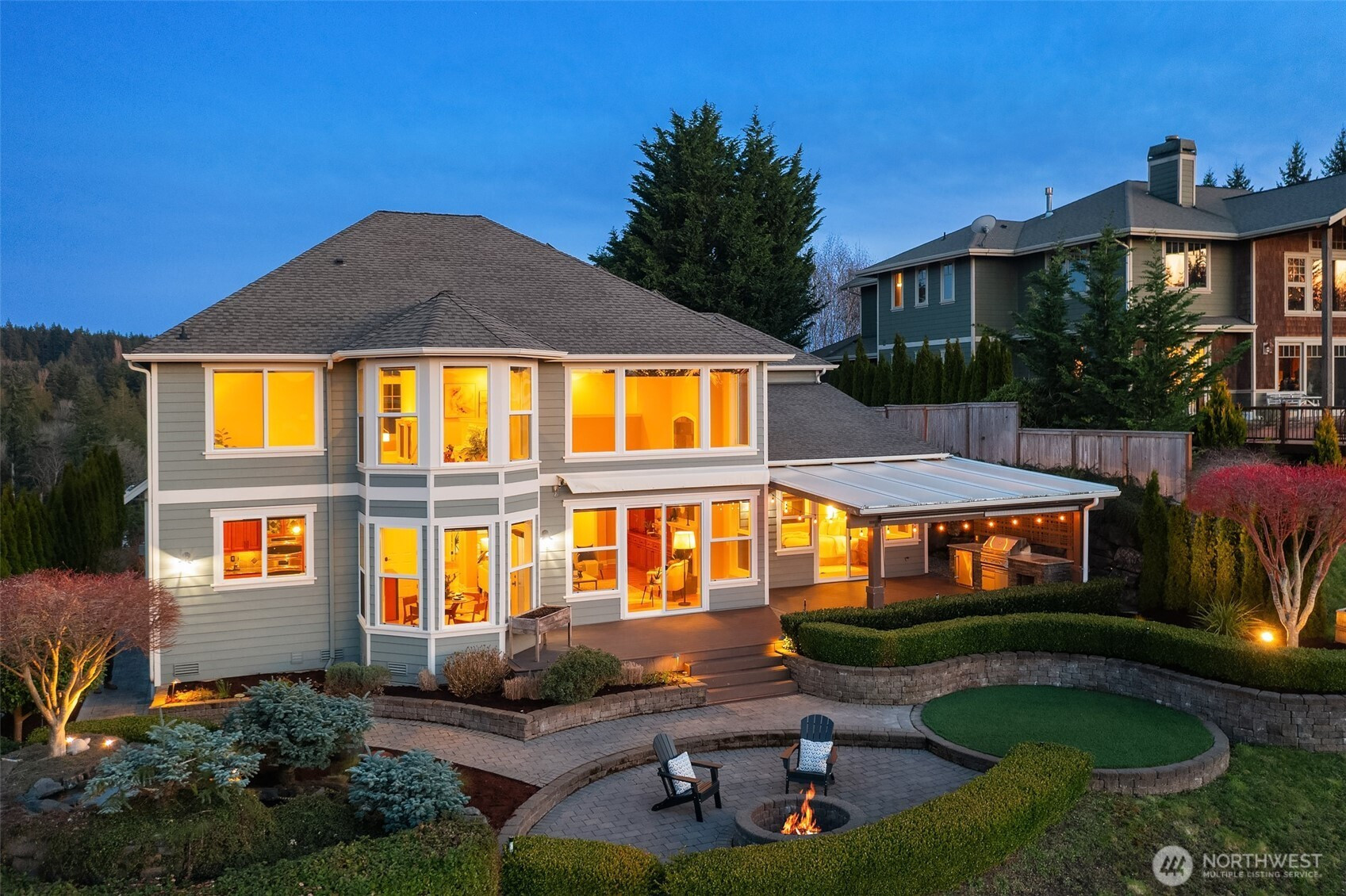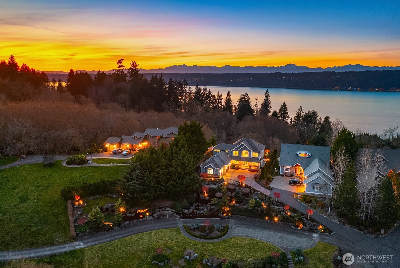 Perched above the peaceful waters of Puget Sound with sweeping views of Henderson Bay and the Olympic Mountains, this custom Craftsman offers a rare blend of privacy and natural beauty in one of Gig Harbor’s most sought-after communities. Set on a tranquil acre, the grounds were thoughtfully curated in collaboration with Rosedale Gardens to create a serene, park-like setting with pathways, benches, water features, and year-round color—designed to be low maintenance and enjoyed in every season. Inside, warm rosewood hardwood floors, rich custom millwork, and extensive built-ins throughout the home (including beautifully designed closet systems) reflect exceptional attention to detail. Expansive windows frame breathtaking sunsets and ever-changing views of the Sound/garden from nearly every room. The thoughtfully designed layout features the primary suite and a private office on the main level. Upstairs are three additional bedrooms, including a guest suite with its own bathroom separate from the Jack-and-Jill bedrooms/bath on the opposite side of the second floor—ideal for guests or multigenerational living. Outside, gather around the fire pit and enjoy the peaceful setting where a pair of resident bald eagles nest nearby and can often be seen fishing in the bay below. On occasion, orcas have even been spotted passing through the Sound-an unforgettable reminder of the extraordinary Pacific Northwest setting that surrounds this home.