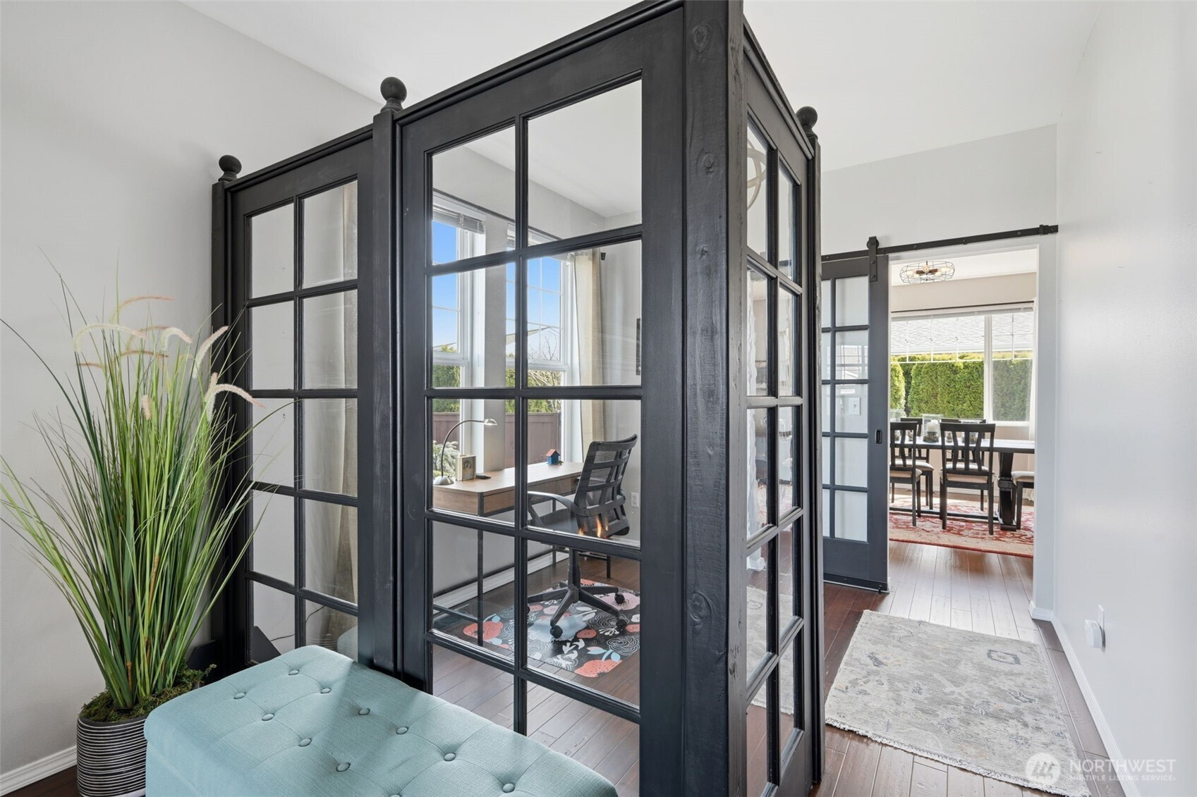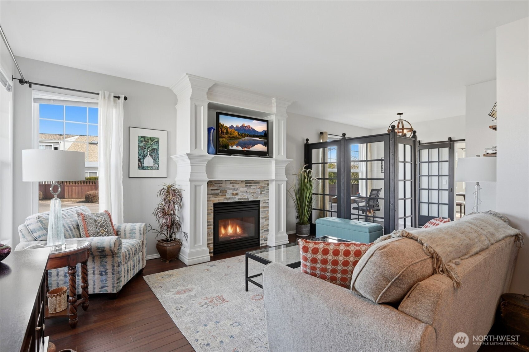 Absolutely spectacular Riverwalk stand-alone, single step condo, thoughtfully remodeled and meticulously maintained. Tucked on a quiet cul-de-sac, corner lot, this light-filled home offers a rare blend of tranquility and convenience with direct access to the scenic riverwalk trail just steps away. Designed for effortless, low-maintenance living, the interior has been beautifully refreshed with bamboo flooring throughout, new interior paint, updated countertops, vanities, fixtures, lighting, and custom window treatments including blinds and drapes. The flexible office feature wall is free-standing, allowing for adaptable living or work-from-home functionality. Major system upgrades provide peace of mind with a new furnace, A/C, and water heater. Outdoor living is equally inviting, featuring an expanded patio with privacy hedge and a water feature for ultimate relaxation. Sprinkler and drip system, plus a custom 18’ retractable awning with remote—perfect for year-round enjoyment. This quiet, well-kept community is known for its ease of living and pride of ownership, often attracting those seeking simplicity without compromise. Whether you're purchasing your first home or right-sizing into something more refined, this home delivers turnkey comfort with undeniable charm. Ideally located near beloved local destinations like Farm 12 and other great farm to table dining options as well as charming Sumner and Puyallup downtowns. This won't last!
