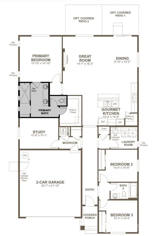 The popular Arlington by Richmond American Homes offers an open layout featuring 10ft. ceilings, a spacious great room, dining room and a gourmet kitchen boasting a center island and pantry. A lavish primary suite featuring an attached bath with upgraded 6ft soaking tub and walk-in shower, an oversized closet is separated from two additional bedrooms and an office. This amazing homes also features a 2car garage, a heat pump, fenced yard and front and rear landscaping.