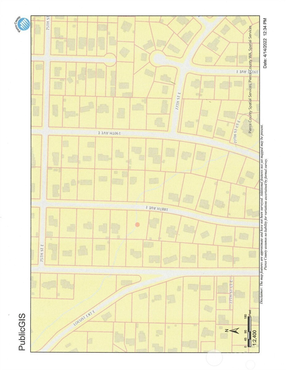 Nice 1/2 acre lot with 100 frontage on the street. All the utilities are in the street. Property is less than a mile from Lake Tapps. Neighborhood has all nice homes and good school district. Close to shopping and freeway. Come build your dream home here. It is buildable but buyer needs to speak to Bonney Lake building department to discuss perimeters regarding the spillway for Bonney Lake. Map of spillway area is in pictures. Bonney Lake says it is buildable but you have to present a plan to the city just like any other building permit. Buyer to confirm all information to their own satisfaction. Possible place for a manufactured home and there is no HOA fees. Email from City talking about what will need to be done is included in the supplements. Price reflects that this is a challenging lot.