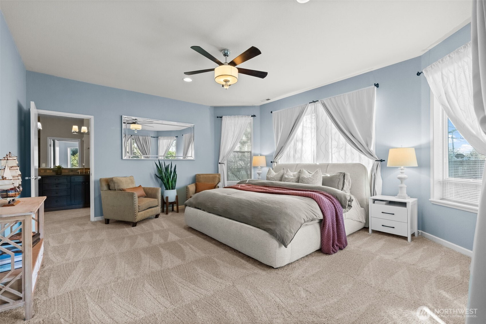 Welcome into this quintessential UP rambler! This 4 bedroom, 2 bath home with a split floor plan sits at the end of a quiet cul-de-sac that offers both privacy and convenience. This open concept kitchen with an island features stainless steel appliances, a double oven, hardwood floors, and a formal dining area leads into the coziest living area with a brand new gas fireplace. The primary suite features an oversized bedroom equipped with brand new carpet and bay windows that are perfect for letting in natural light. Enter into the spa-like bathroom with a walk-in shower, double vanity, and a large walk-in closet with a brand new custom closet system. This home is also a split floor plan with the the primary suite on the opposite side of the home from the living space and guest bedrooms for maximum privacy. The bonus room is a flex room that can be used as an office, bonus room, or 4th bedroom as it features french glass doors. Don't miss the AC! This property sits on nearly a quarter acre and is well-manicured. The back yard is fully fenced and has a deck that's great for summertime relaxation. Enjoy abundant parking with a 2 car garage, a carport, and a very large driveway! There's also no HOA! Located in the sought-after University Place School District, close to shopping, and Chambers Bay, don't miss this one!