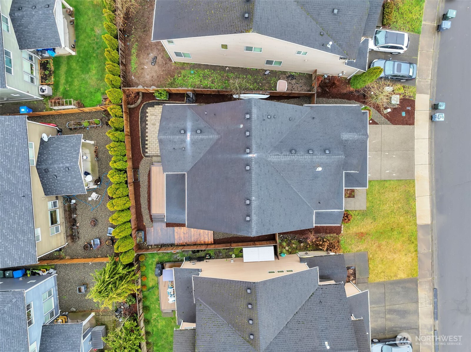 Welcome to this beautifully designed home in the coveted Red Hawk community, perfectly situated in the heart of Puyallup. With 2,147 sq ft of thoughtfully planned living space, this home offers comfort, flexibility, and style for today’s lifestyle. The main floor features a bedroom with double doors which could also be used as a den/office, ideal for working from home. Enjoy abundant natural light throughout the open-concept layout, where the inviting living room centers around a cozy gas fireplace—perfect for those chilly days. The spacious kitchen offers ample cabinetry, pantry, and flows seamlessly into the eating area, where a sliding glass door leads outdoors. Step outside to your year-round Trex deck covered patio with a fireplace, creating the perfect space for entertaining or relaxing in any season. The fully fenced backyard provides low maintenance upkeep. Upstairs, you’ll find an open sitting area at the top of the stairs, ideal for a reading nook or bonus space. The primary suite is a true retreat with double doors, a large en-suite bathroom featuring double sinks, a separate soaking tub, walk-in shower, and walk-in closet. Three additional bedrooms, two full bathrooms, and a convenient utility room complete the upper level, offering room for everyone. Located close to shopping, schools, restaurants, and everyday conveniences, this home combines modern living with an unbeatable location in one of Puyallup’s most sought-after neighborhoods. Welcome home!