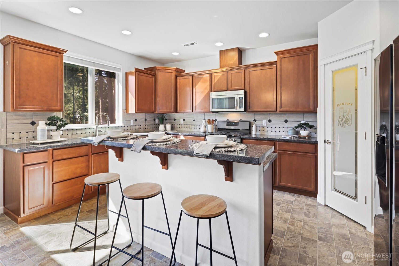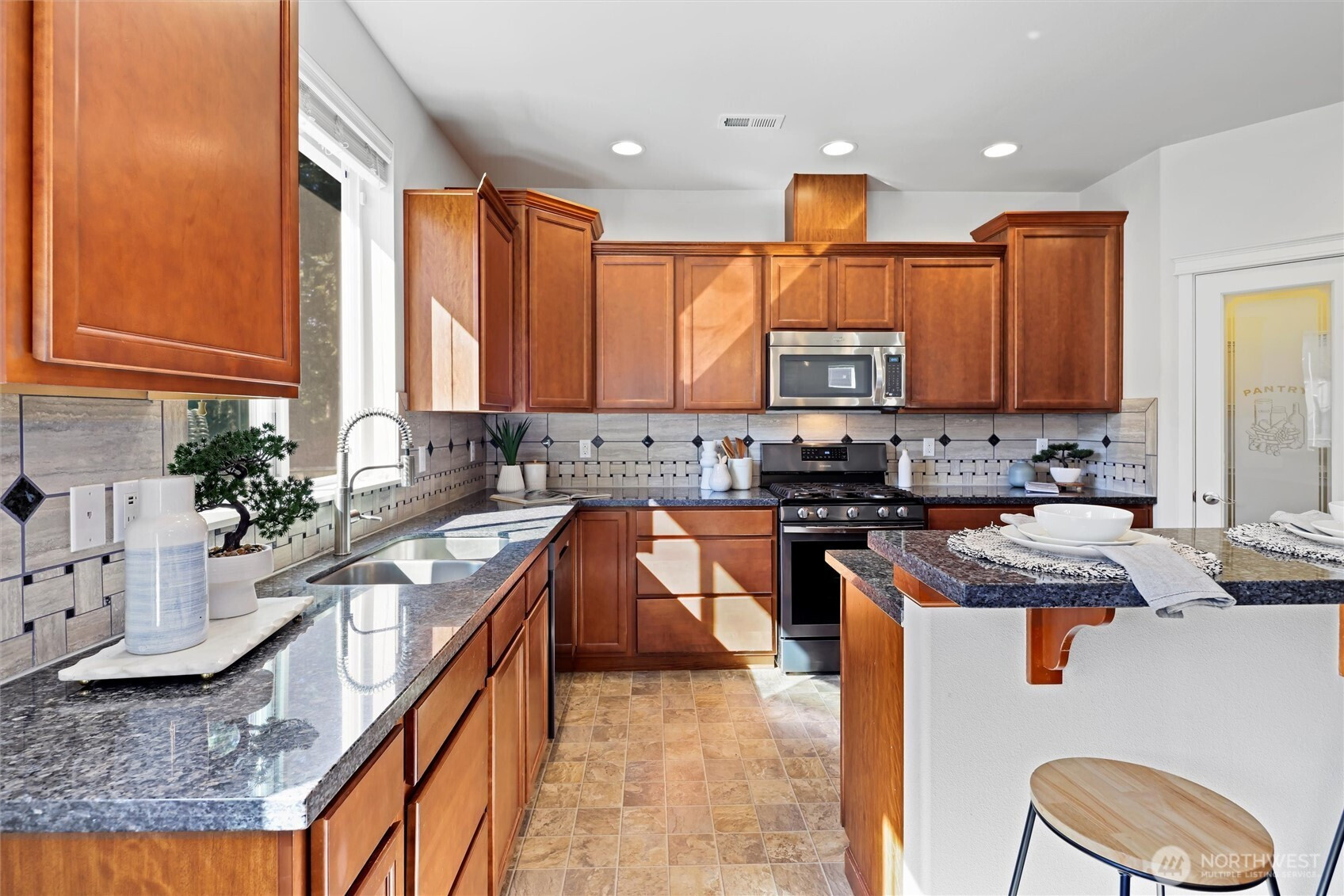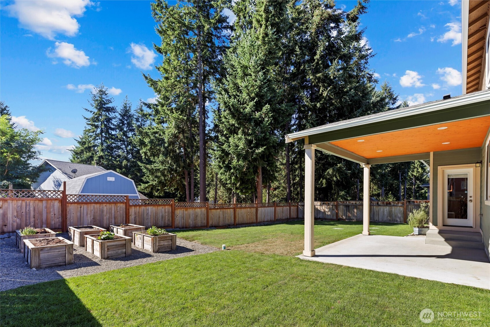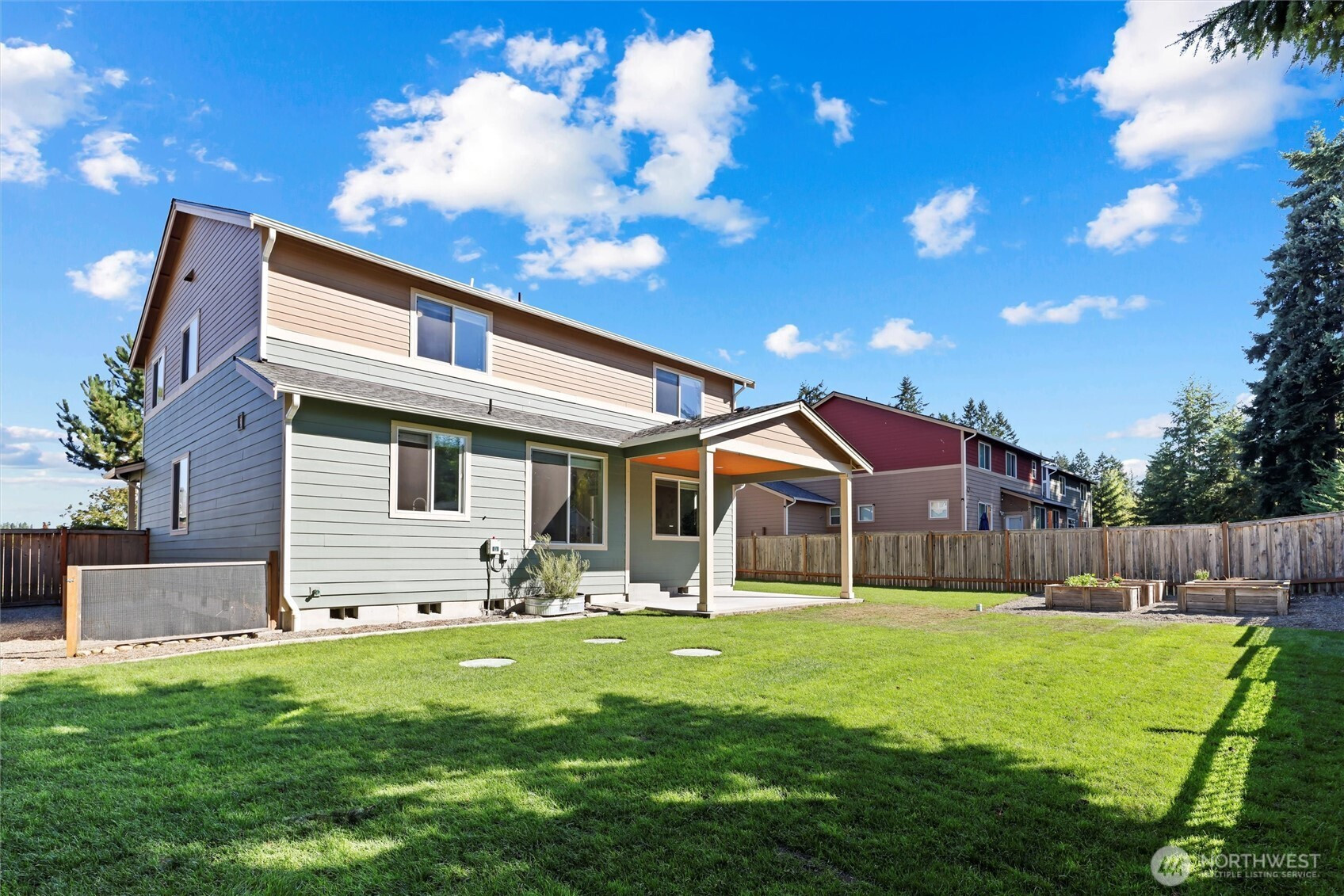Welcome to Grand Firs, a gated community! This stunning 4-bedroom home is filled with upgrades and boasts a massive bonus room, ideal for a playroom, gym, home office, or more. The open kitchen shines with granite counters, breakfast bar seating, stainless steel appliances, and ample storage. Outside, the flat fully fenced yard is perfect for entertaining with garden boxes, sprinkler system, fresh landscaping, and a covered patio for BBQs. A 3-car garage + boat parking offers space for endless hobbies. Located in a quiet, sidewalk-lined neighborhood near town and an easy commute to JBLM. This home delivers comfort, flexibility, and outdoor fun in a vibrant active community.