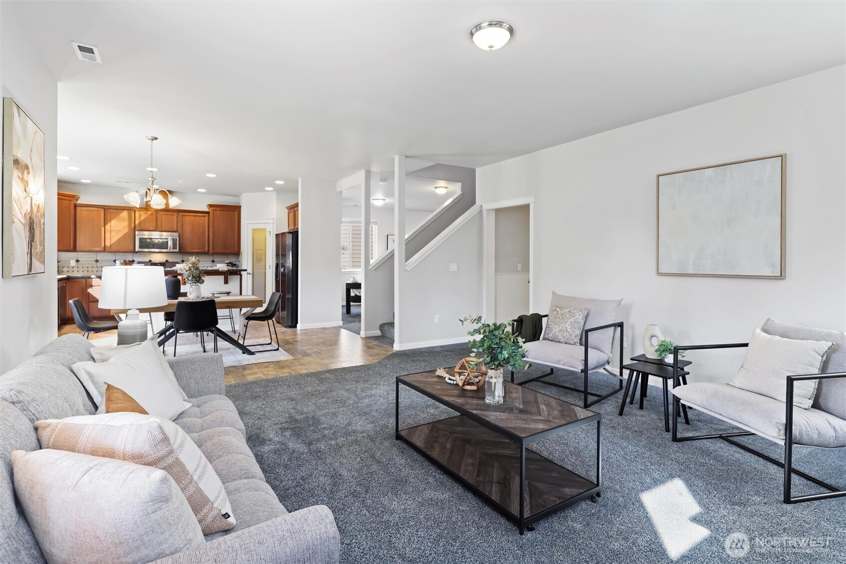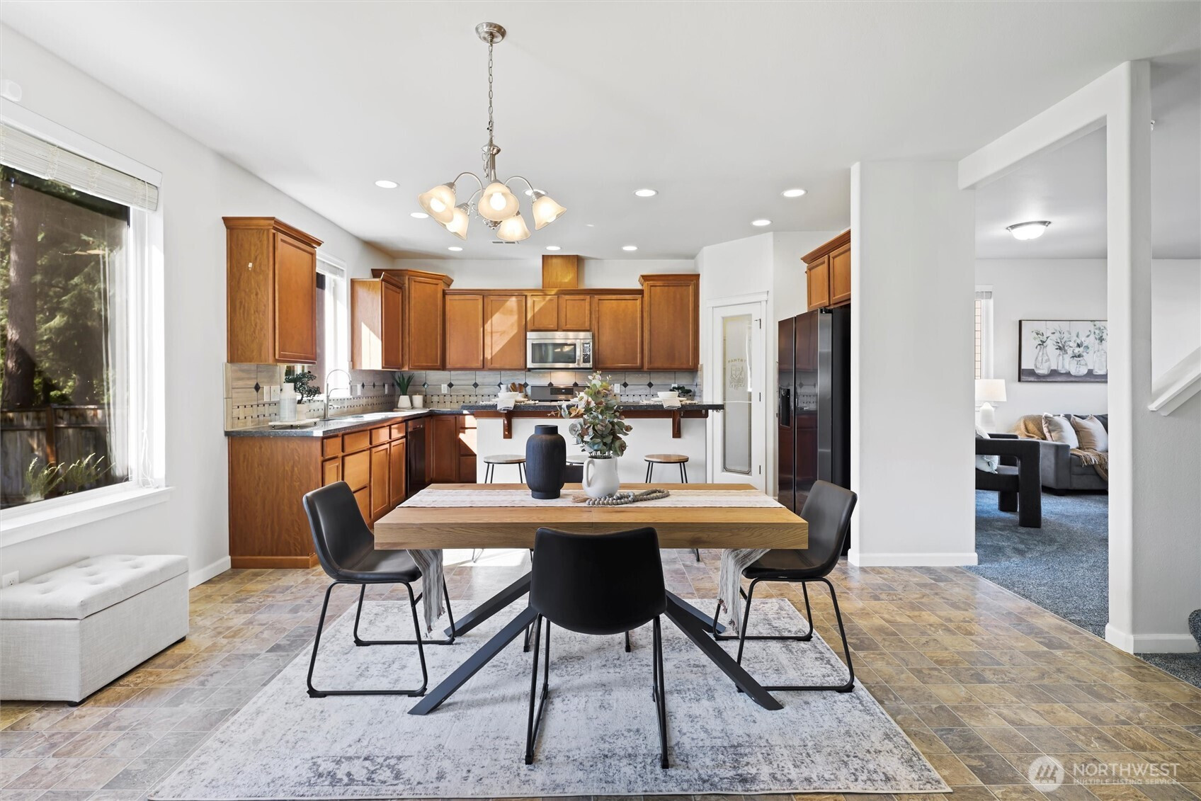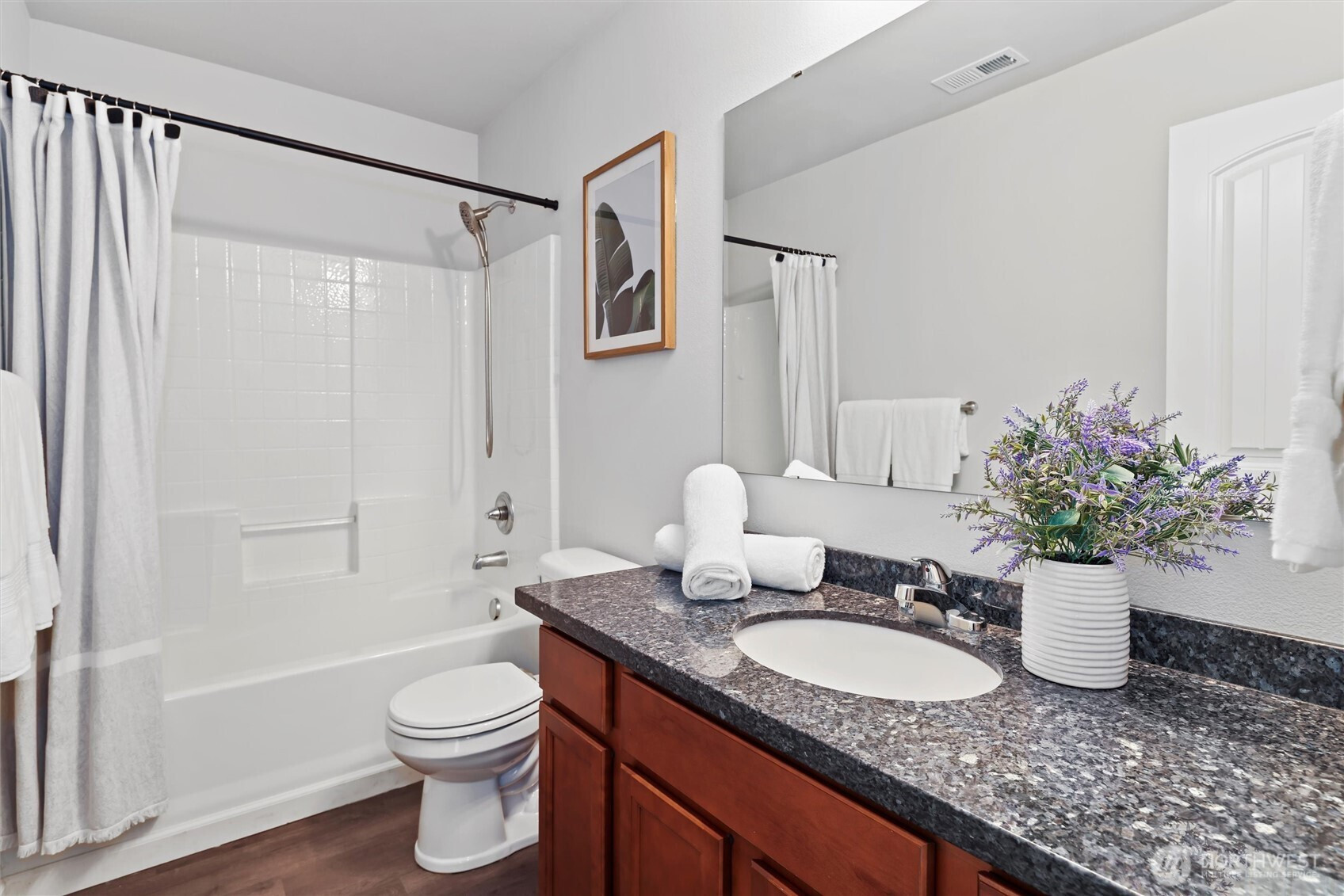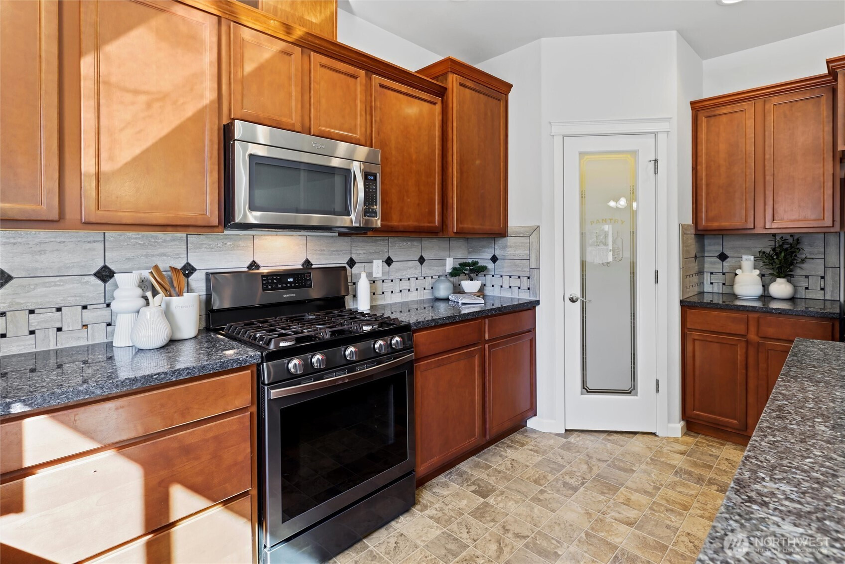 Welcome to Grand Firs, a gated community! This stunning 4-bedroom home is filled with upgrades and boasts a massive bonus room, ideal for a playroom, gym, home office, or more. The open kitchen shines with granite counters, breakfast bar seating, stainless steel appliances, and ample storage. Outside, the flat fully fenced yard is perfect for entertaining with garden boxes, sprinkler system, fresh landscaping, and a covered patio for BBQs. A 3-car garage + boat parking offers space for endless hobbies. Located in a quiet, sidewalk-lined neighborhood near town and an easy commute to JBLM. This home delivers comfort, flexibility, and outdoor fun in a vibrant active community.
