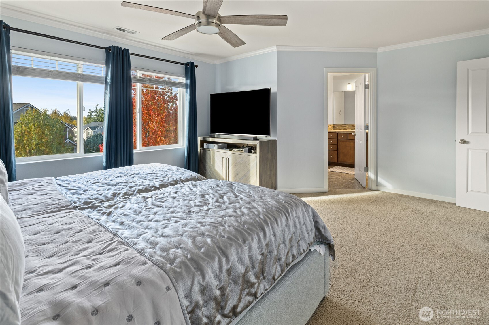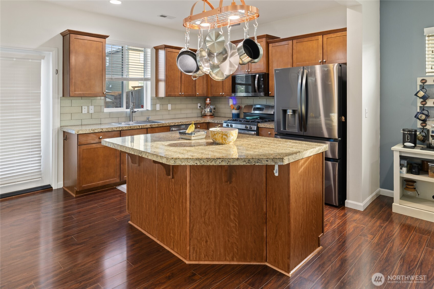 Fantastic, well cared for 4 bedroom home on a cul-de-sac within the highly rated Puyallup School District, the lower level has a large 4-car tandem garage, head up to the main level to enjoy the open concept kitchen and dining room, the living room with a deck overlooking the front of the home, this level also has a half bath and laundry room, along with access to the back yard with a large patio designed for entertaining, the upper level has the primary bedroom with walk-in closet and 5-piece en-suite bath, as well as the other 3 bedrooms and full bathroom, the home has a solar panel system to help offset those electric bills, location is convenient to shopping, dining, schools, and of course JBLM.