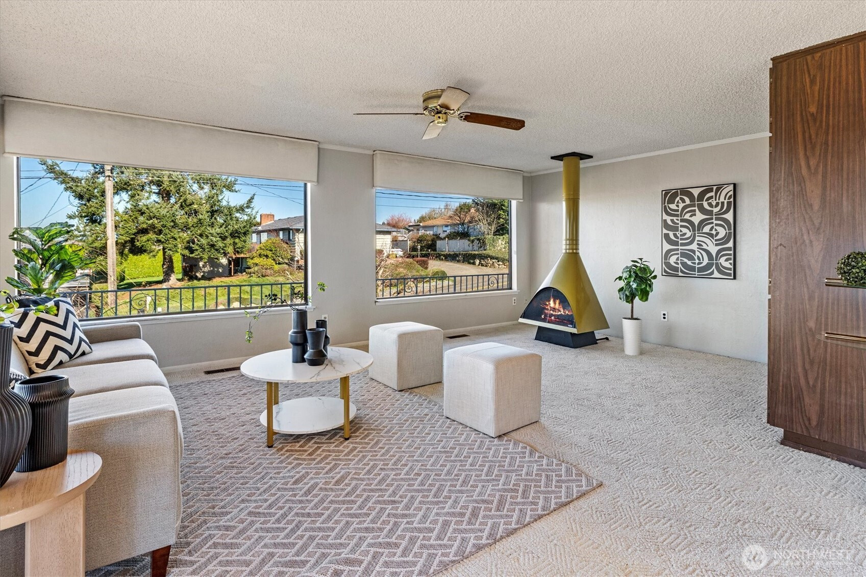 Offered for the first time ever, this well-maintained midcentury home is a rare opportunity in the sought-after University Place School District. Enjoy beautiful water views and timeless character throughout this 3-bedroom, 3-bath residence featuring original charm blended with thoughtful updates. The home has been meticulously cared for, with major improvements completed in recent years including exterior paint, a newer 40-year roof, updated furnace and heat pump, and newer garage doors. Central vacuum system is fully operational for added convenience. Inside, you’ll find spacious living areas, quality built-ins, and a functional layout that offers flexibility for everyday living and entertaining. The lower level features a bar area perfect for hosting, while the dedicated hot tub room creates a private retreat right at home. An additional laundry hookup in the garage adds versatility and future potential. This is a true midcentury gem—solid, stylish, and thoughtfully maintained—with water views and pride of ownership throughout. Homes like this rarely come to market.