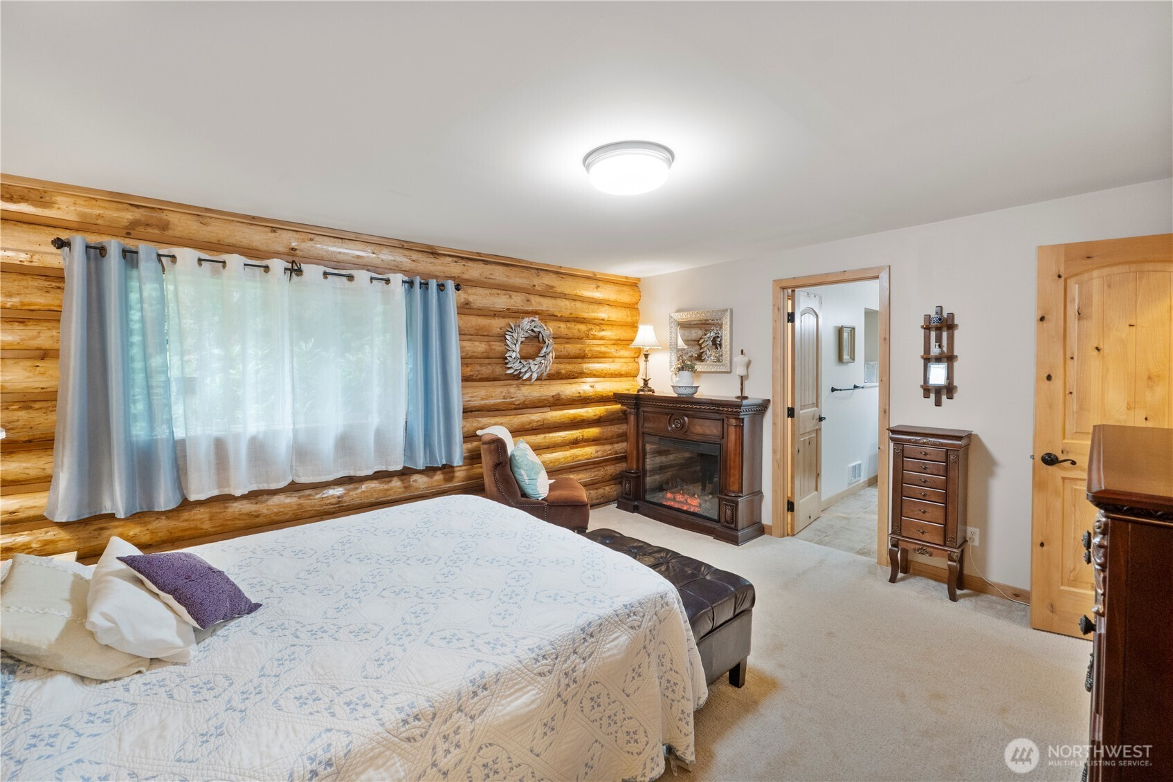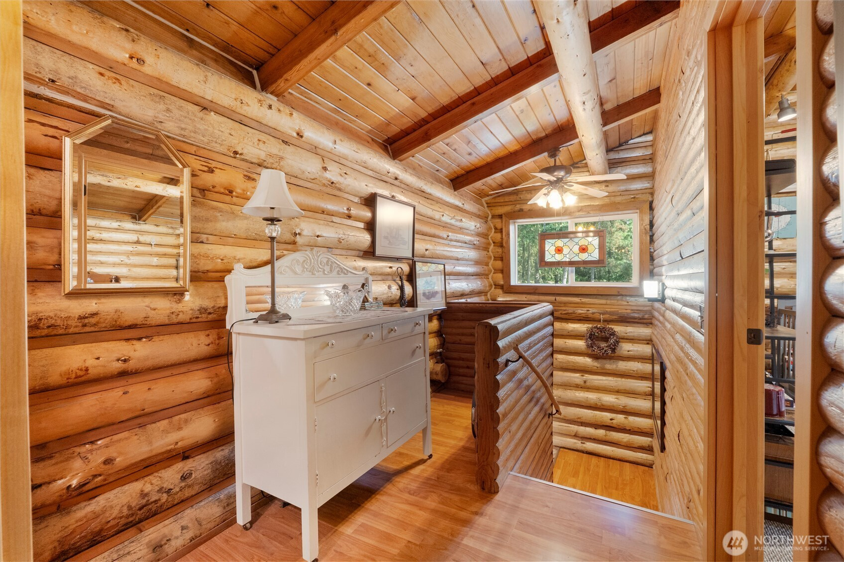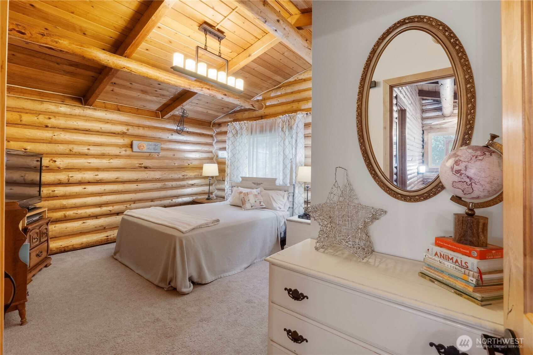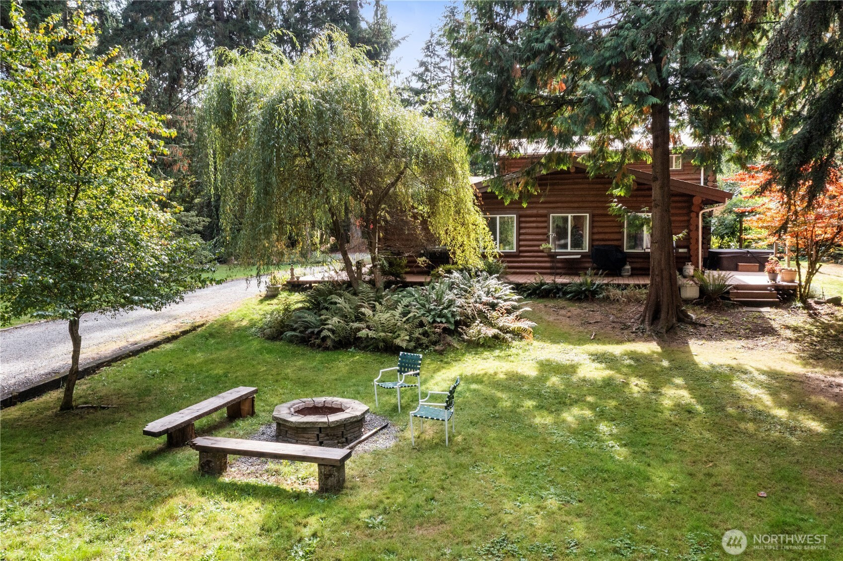 Situated on 2.4 secluded wooded acres, stunning 2-story log home totally remodeled offers the perfect blend of rustic charm & modern comfort. Featuring 3 bdrms, 2.25 baths, the home welcomes you w/vaulted ceilings, skylights & beautiful French doors. Main Floor Primary Bdrm Enjoy year-round comfort w/efficient mini-split heating & cooling, plus the warmth of a pellet stove. Entertain or relax on the expansive wrap-around deck, perfect for soaking in the peaceful surroundings. Detached garage offers storage & best of all, no HOA! Even w/its private, wooded setting, you're just minutes from shopping, schools, dining, & freeways. This is PNW living at its finest—privacy, nature, & timeless log home charm w/everyday convenience close by.