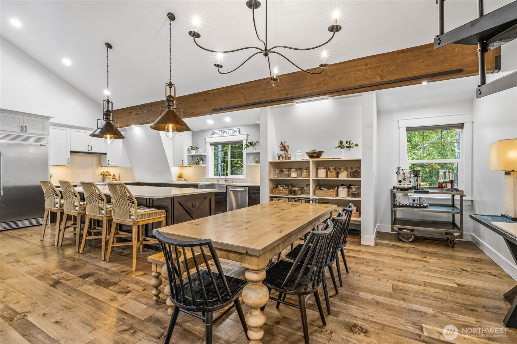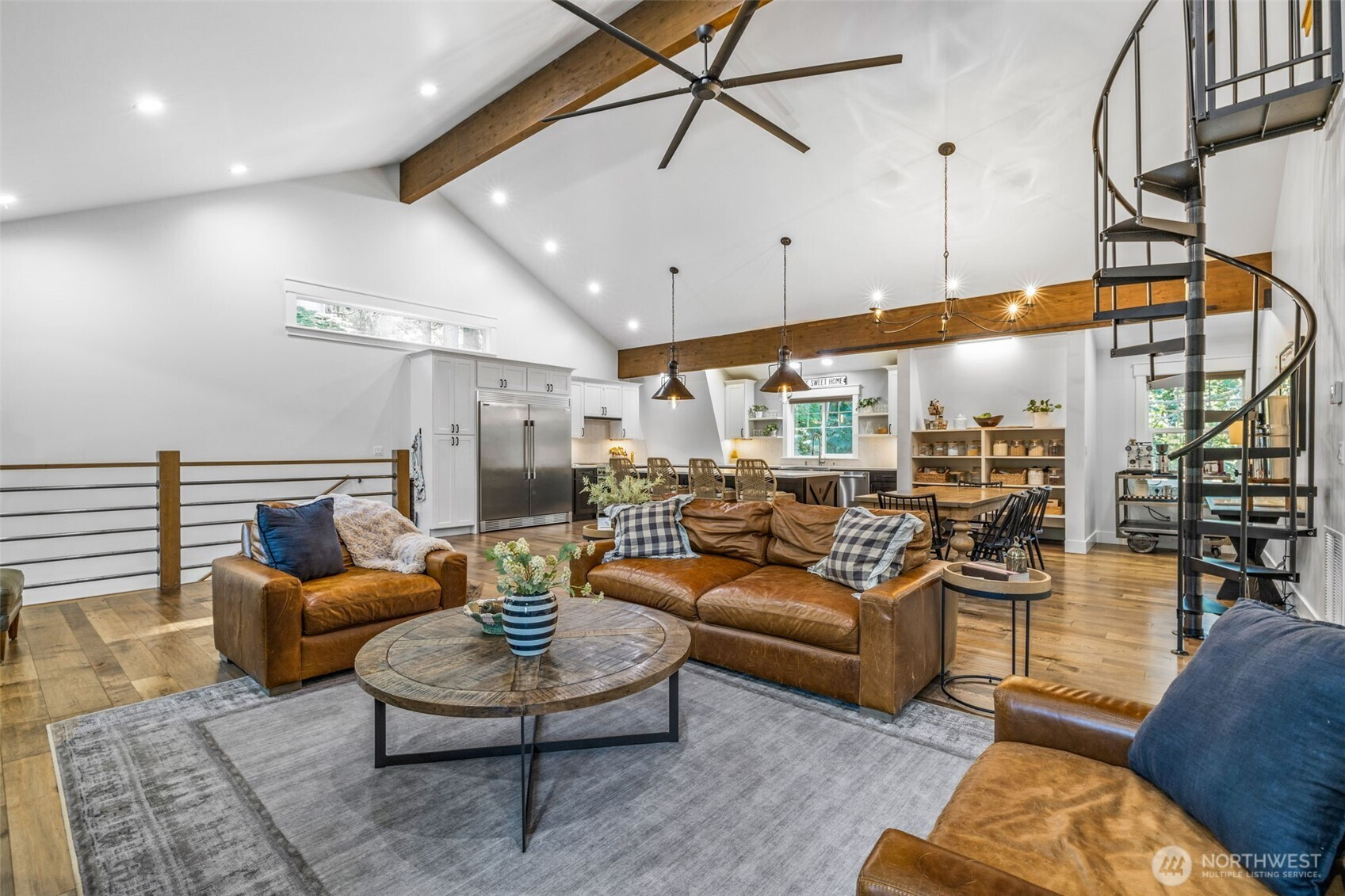 Welcome to "The Barn" – a stunning & truly unique property set on 2.2 peaceful acres. With 2,848 sq ft of open-concept living, this home features 3 beds & 3 baths, beautiful hardwood floors, chefs kitchen, special loft space, brand-new A/C system, & a durable metal roof. The heart of the home flows seamlessly between the spacious kitchen, dining & living areas—ideal for entertaining. Step outside to enjoy a covered patio, hot tub, beautifully fenced-in garden & shed, complete w/ a chicken coop for your backyard homestead dreams. The heated, one-of-a-kind 6-car garage is a showstopper, offering ample space for vehicles, storage, or creative projects. “The Barn” isn’t just a home—it’s a lifestyle. Don’t miss your chance to own this rare gem!