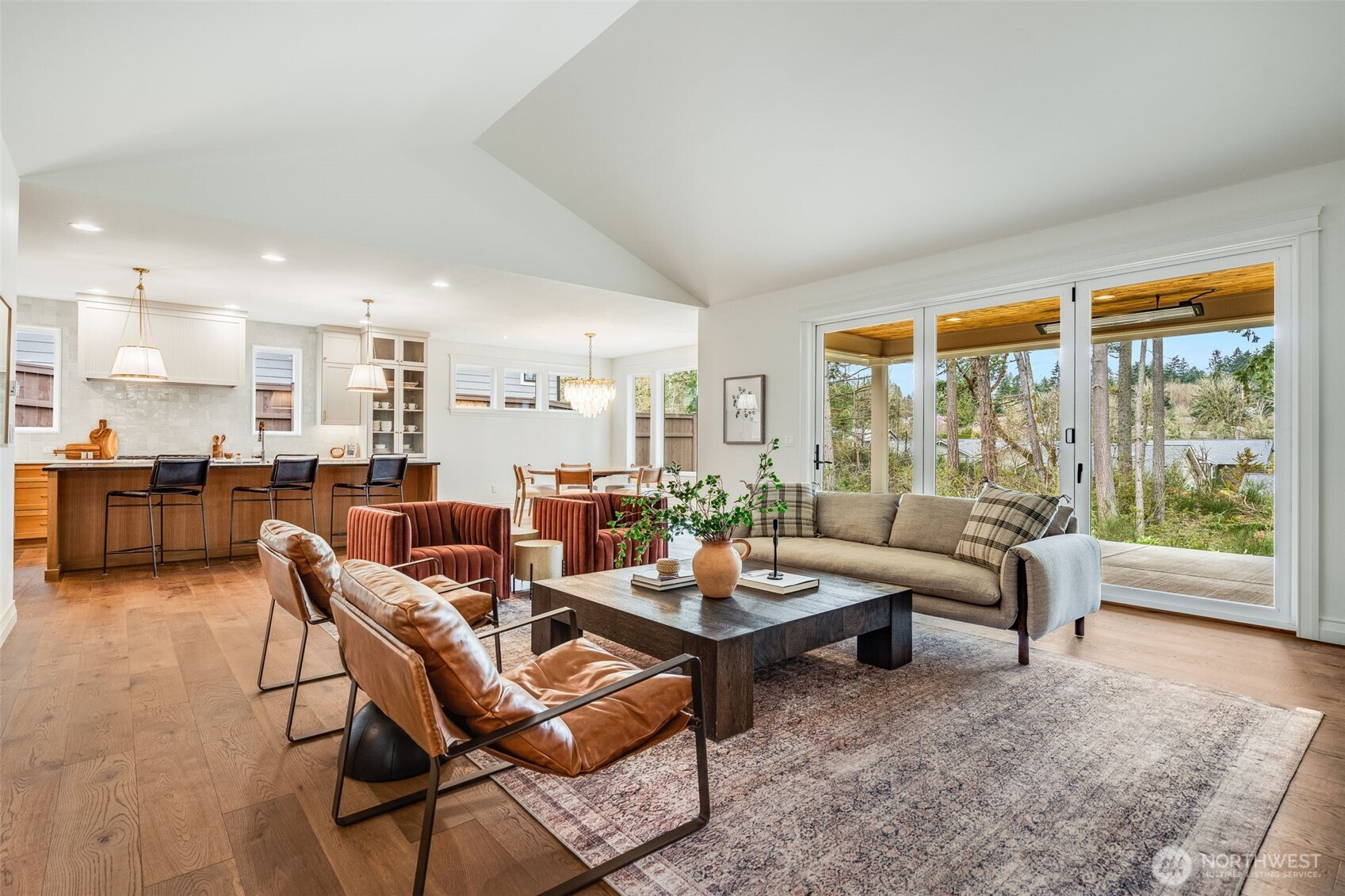 Introducing the Aspen floor plan at Camden by Zetterberg Custom Homes, a limited-release community of luxury rambler-style homes within walking distance of downtown Gig Harbor. This 3-bedroom, 2.75-bath, 3,185 sq ft home offers true main-level living with a primary suite on the main floor, an additional main-floor bedroom with access to a ¾ bath, plus an office that can function as a 4th bedroom. Upstairs includes guest space and a large bonus room. Exceptional craftsmanship shines throughout with vaulted ceilings, a hand crafted Roman Clay fireplace surround, and hand-built cabinetry with custom blended wood and painted finishes. The chef’s kitchen features a Thermador appliance package with panel-front refrigerator and dishwasher, quartzite island, marble counters, plus a hidden scullery for additional prep and storage. The great room opens to outdoor living through a 12-ft accordion door, leading to a covered patio with ceiling heater and BBQ stub—perfect for year-round entertaining. Designer touches include wallpaper accents in the office, hall bath, and pantry ceiling, adding distinctive character throughout.