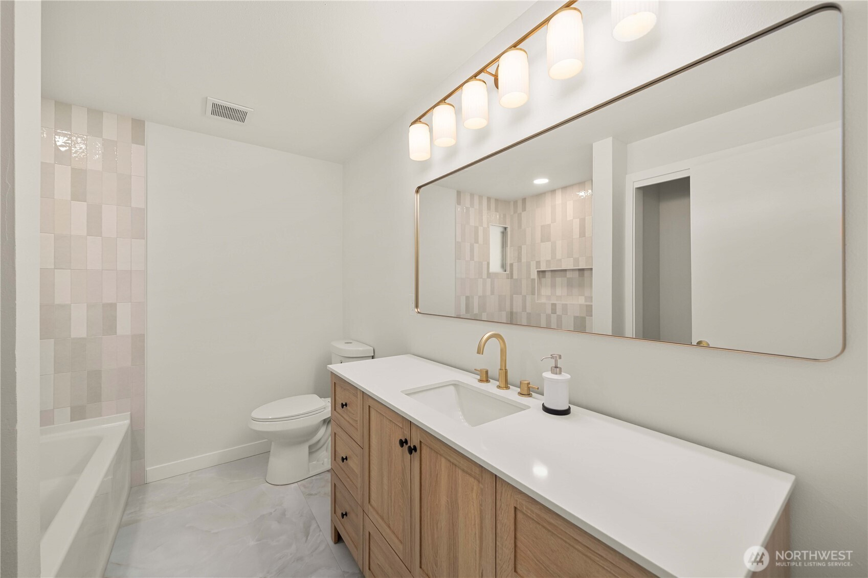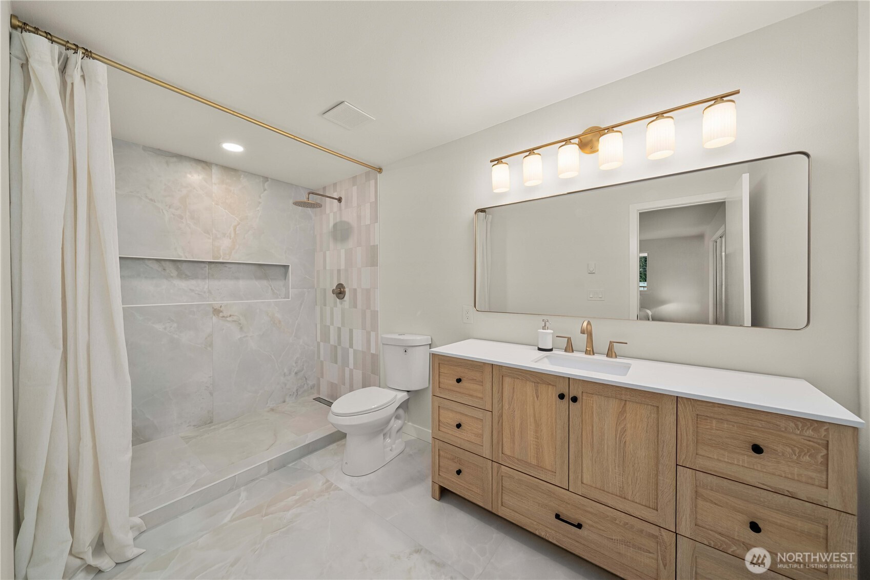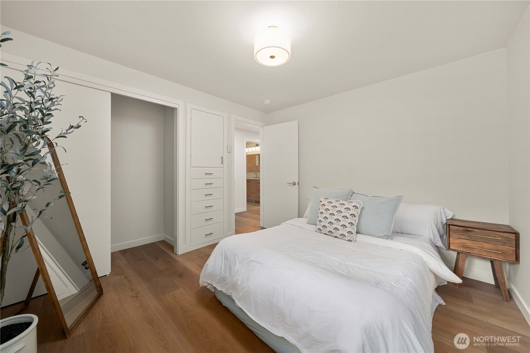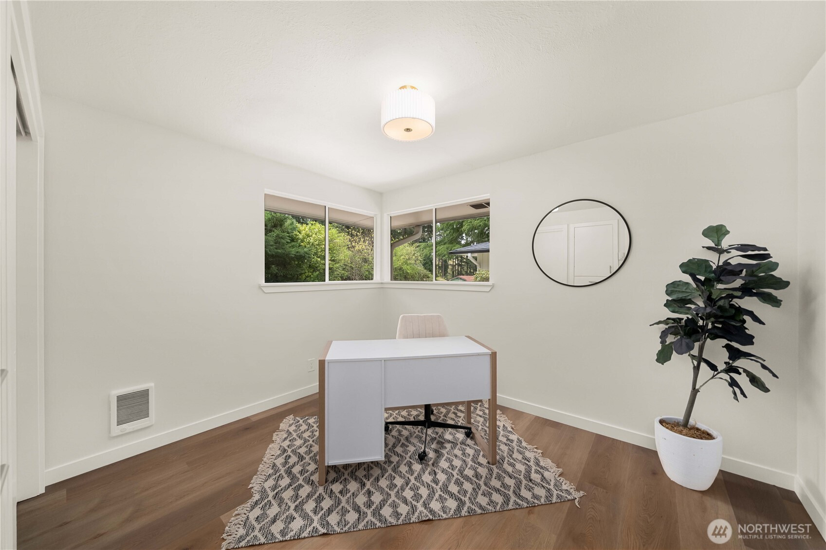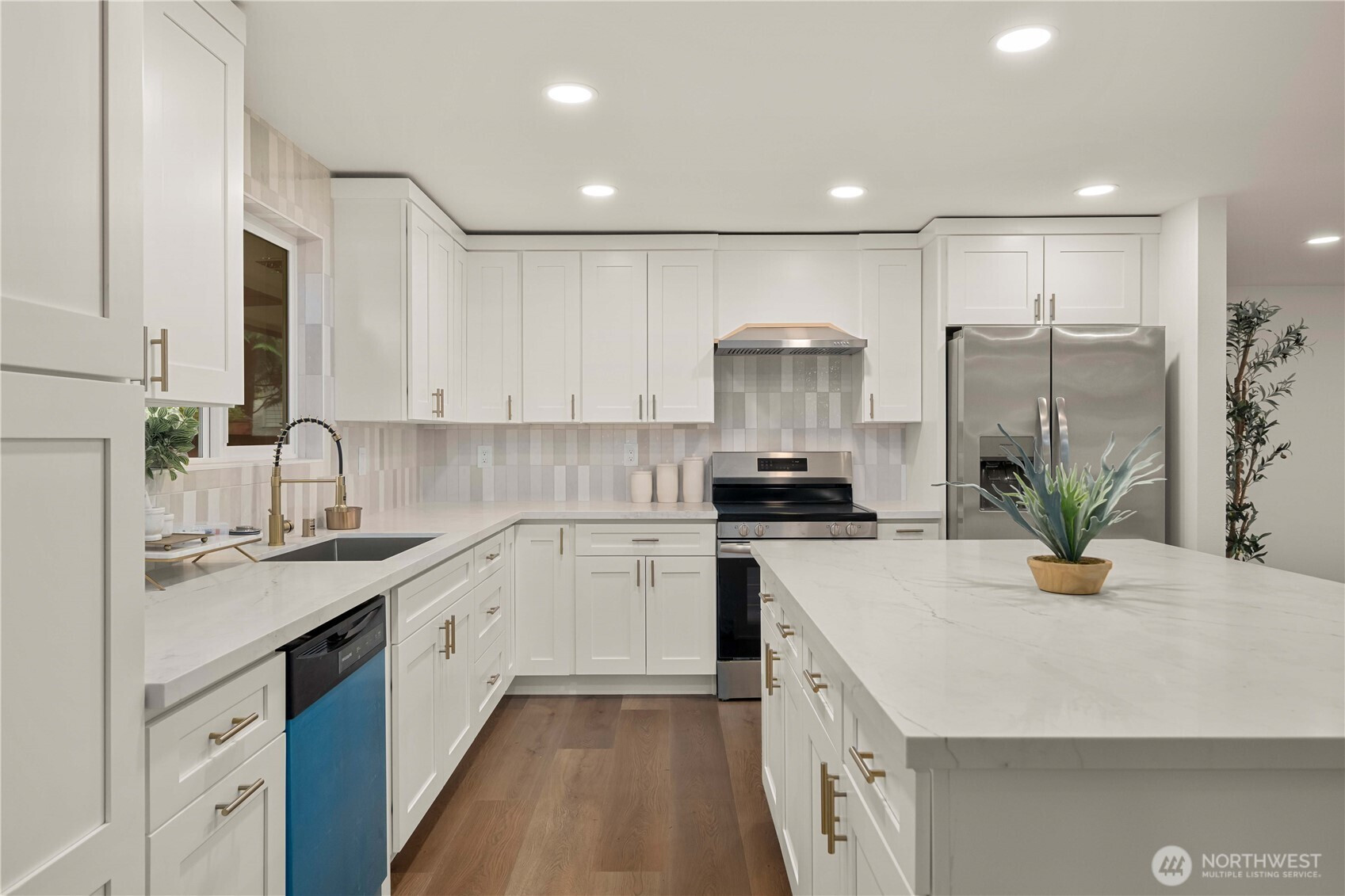 Fully renovated rambler nestled in a peaceful, wooded setting. This home features a new roof, gutters, fresh interior & exterior paint & high-end upgrades throughout. Step into the formal living room showcasing a stunning brick-surround fireplace & expansive windows that fill the space with natural light. The open-concept layout offers seamless sight lines into the spacious kitchen, complete with a center island with additional storage, new stainless steel appliances & a beautiful tile backsplash. The formal dining room features a second fireplace & a sliding glass door leading to the back patio—perfect for indoor-outdoor entertaining. Just steps down from the dining area, a generous family room provides versatile additional living space. The utility/mudroom includes a sink, closet for extra storage & direct access to the backyard. Bedrooms feature original built-ins, adding charm & functional storage. The primary suite offers a spa-like en-suite bath with a large vanity and an oversized walk-in shower adorned with elegant tile work. Outside, enjoy a park-like backyard with mature trees, manicured landscaping, a picnic area, and a concrete pathway leading to the detached two-car garage, which provides ample parking and storage. Situated on just over half an acre, this secluded property offers a tranquil, forest-like atmosphere while remaining just minutes from local amenities and freeway access. Potential opportunity to purchase the adjacent lot for added space or investment.