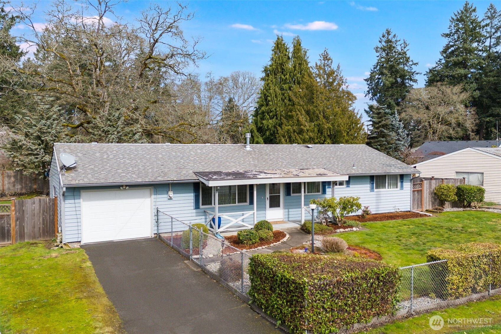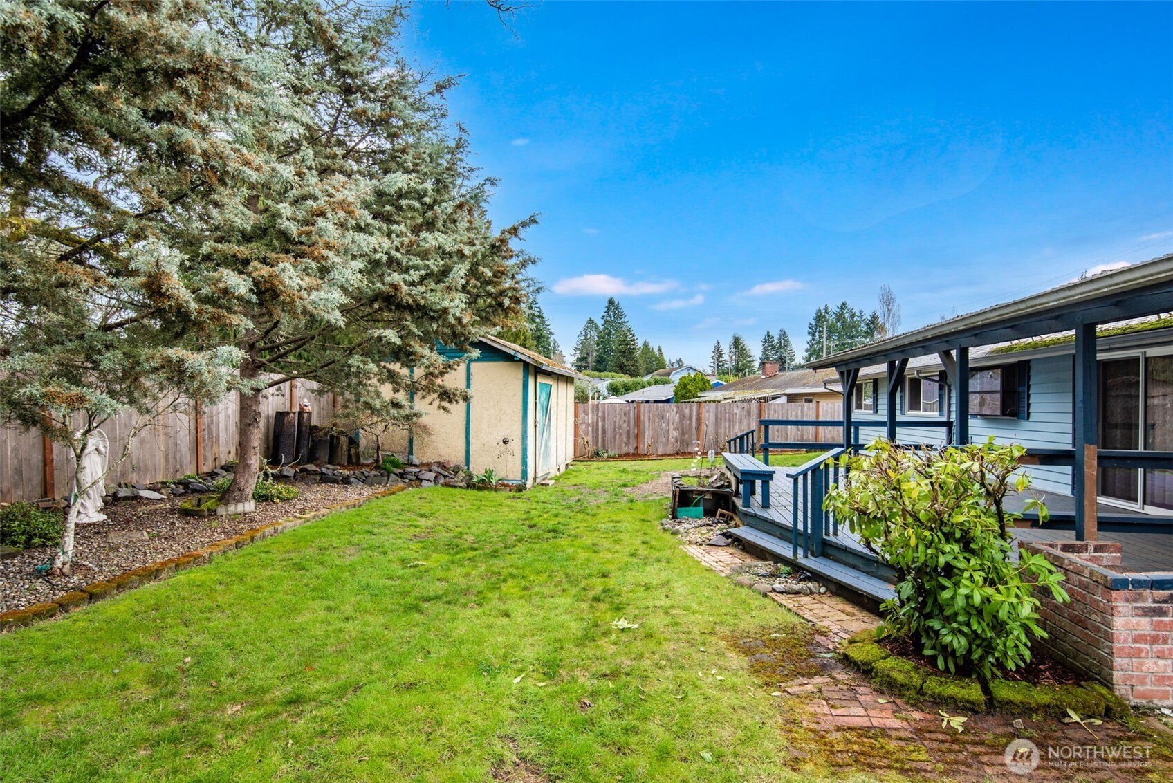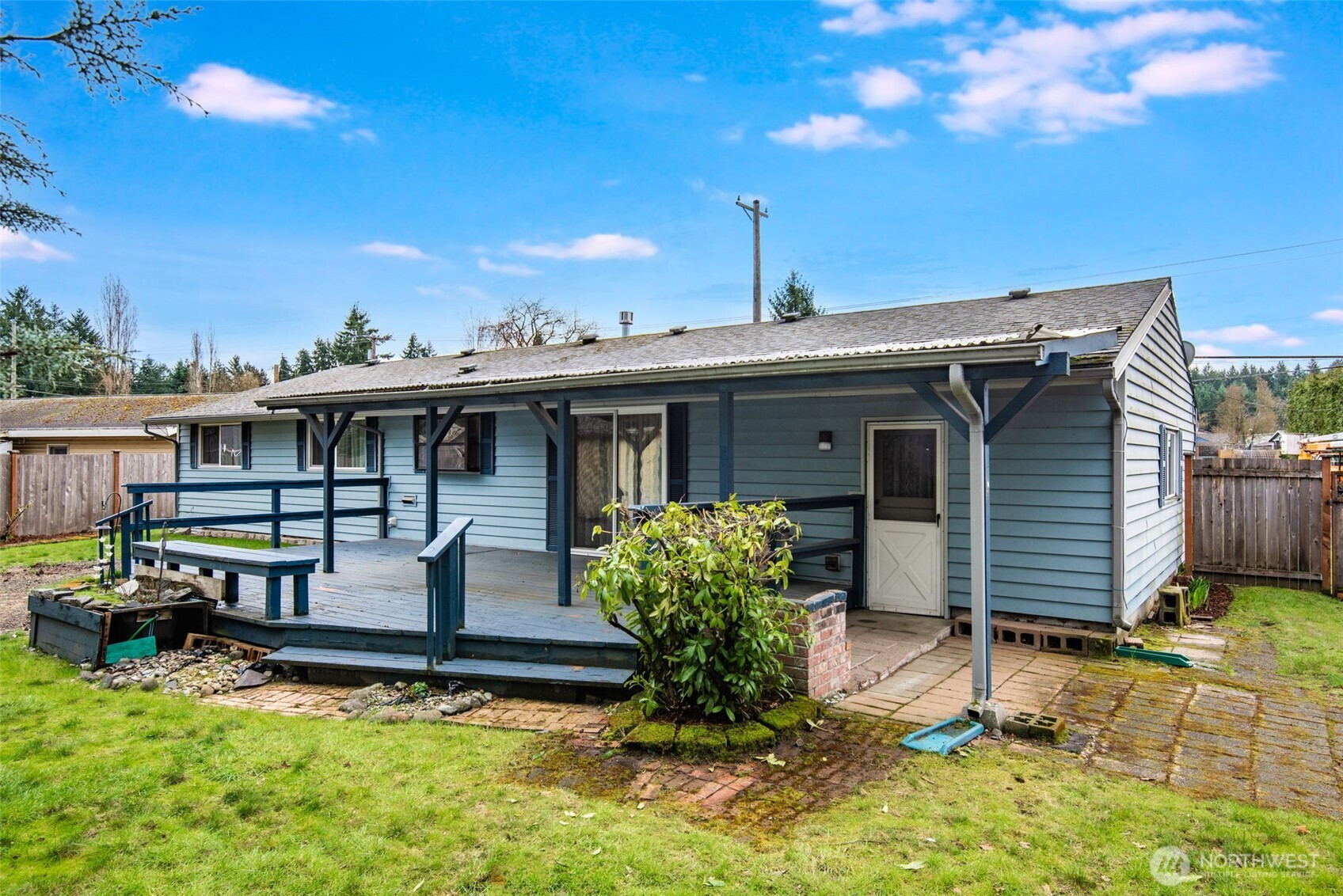 This home sits on a large, fully fenced lot with established landscaping and a private backyard. The covered deck provides great space for outdoor use year-round.The interior offers a functional single-level layout with comfortable living areas and good natural light. The living room features a propane fireplace, adding warmth and comfort. The kitchen includes all appliances, and the washer and dryer are also included, making for an easy move-in.Convenient location close to JBLM, Spanaway Lake, parks, shopping, and everyday amenities. Solid option for buyers looking for a home with a usable yard, privacy, and a practical layout.