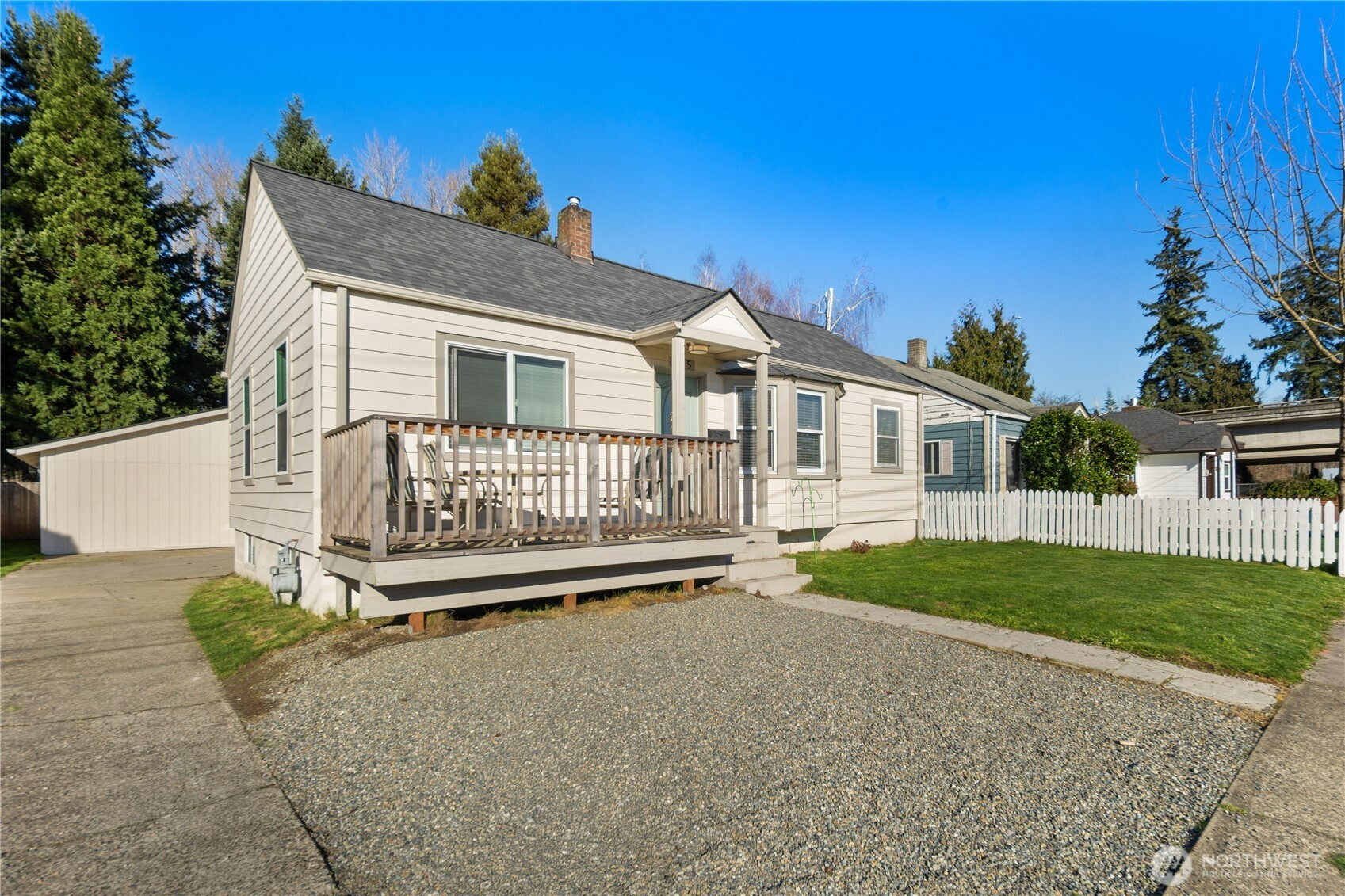 Discover this fully refreshed multi-generational gem and smart investment opportunity in the heart of Downtown Puyallup. This home features 4 bedrooms, 2 baths, and a bright finished basement—ideal for extra living space, guests, or activities. The modern kitchen impresses with stainless steel appliances, sleek quartz countertops, and abundant natural light. Enjoy a recently renovated exterior and a serene backyard where the Puyallup River flows gently just below. Relax on the covered porch or entertain in the private fenced yard—it truly feels like your own riverside retreat. This property also features a separate renovated guest house with 2 bedrooms and 1 bathroom, perfect for multi-generational living or guests and very spacious parking at the back of the property. Nestled in vibrant Downtown Puyallup, this home combines modern style, comfort, and an unbeatable location. Rare opportunities like this don’t last—don’t miss out!