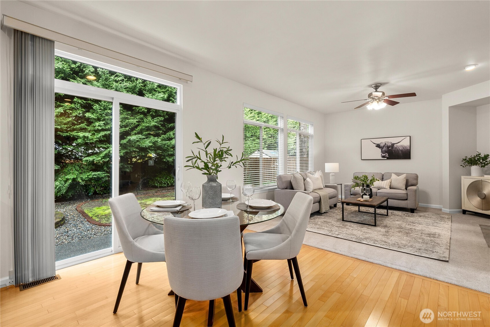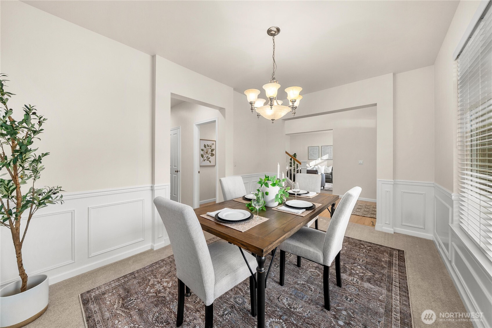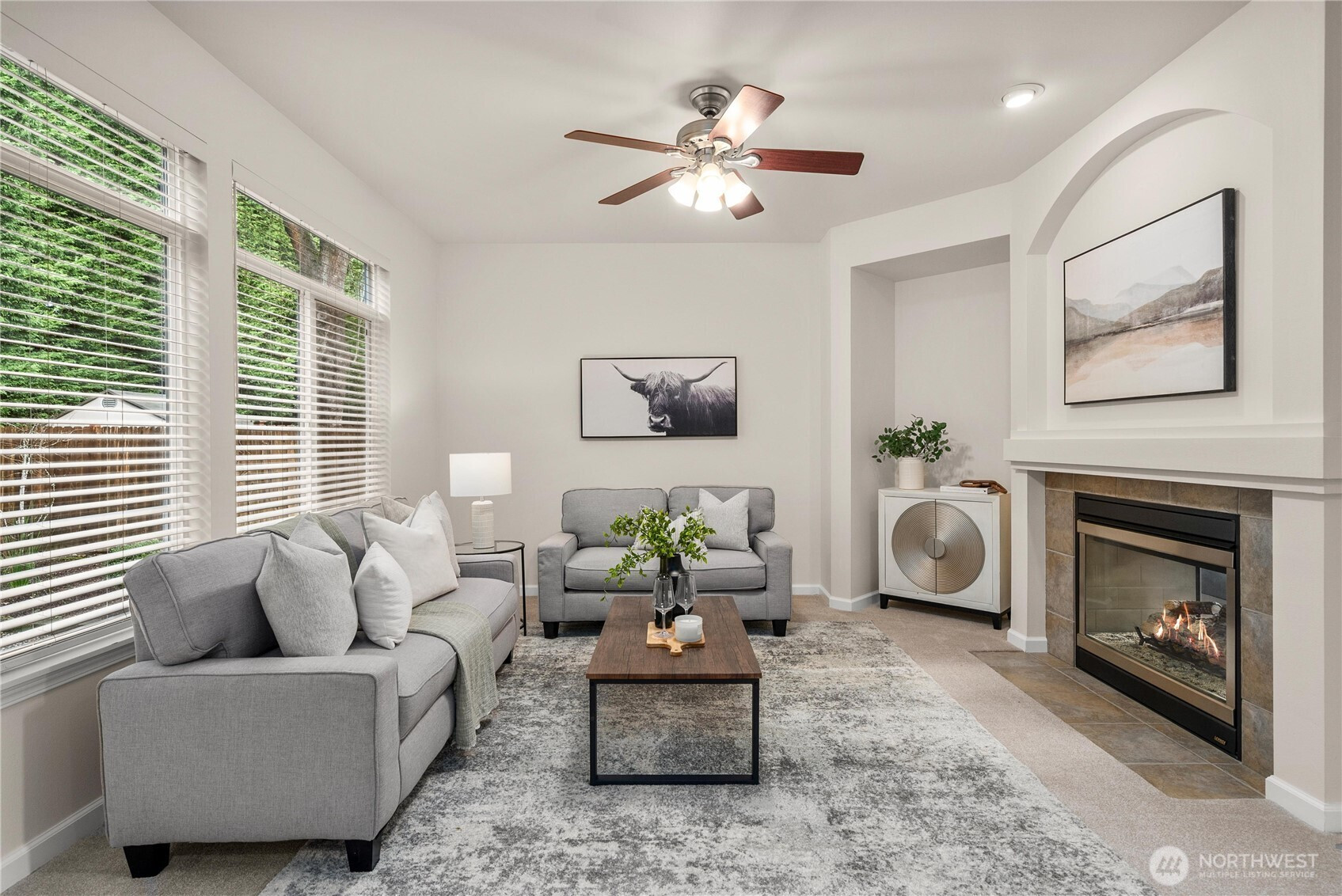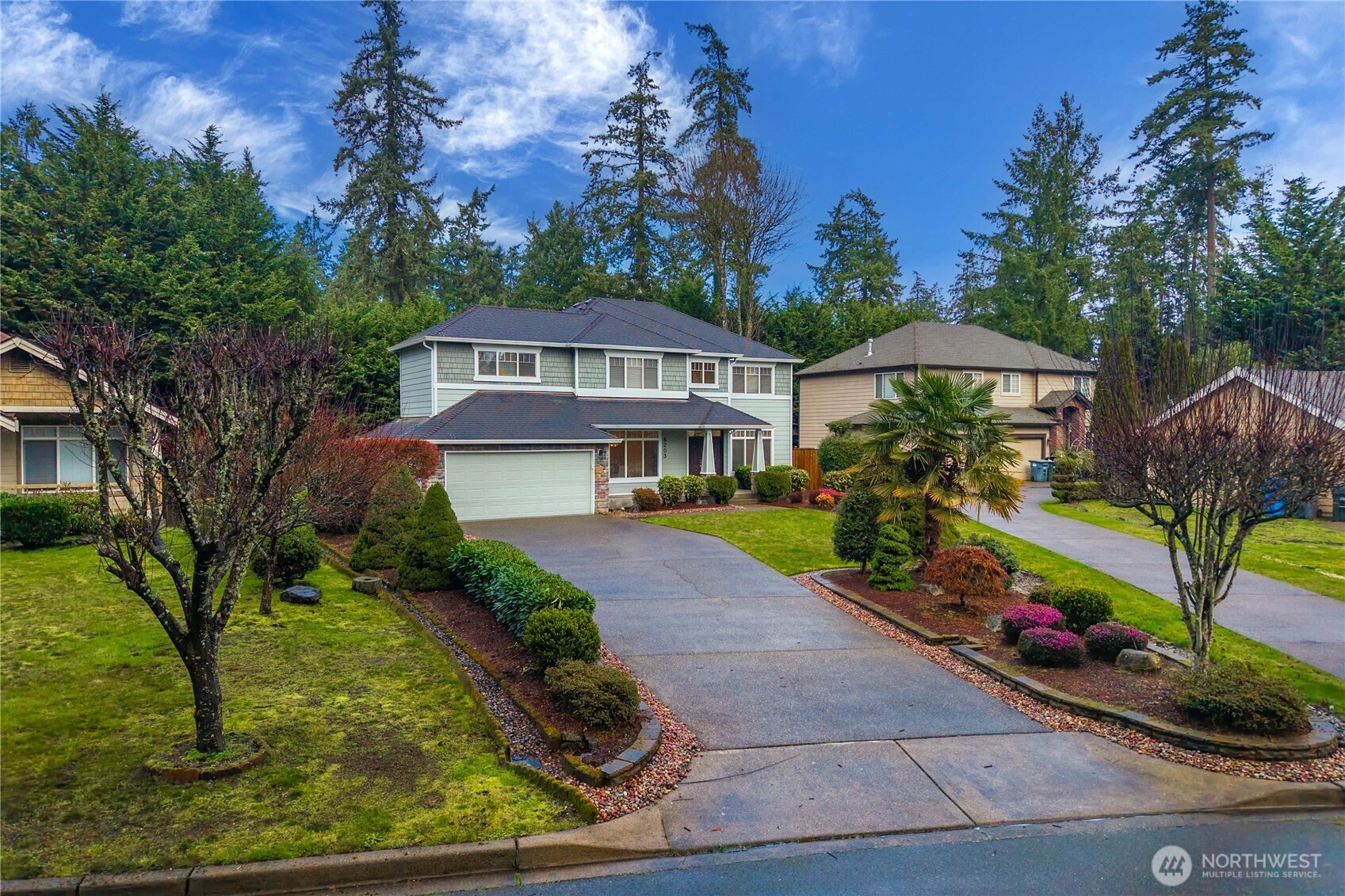 Impeccable. One owner. And it shows. Set at the end of a quiet cul-de-sac within a gated enclave, this beautifully maintained two-story home combines classic architecture with meaningful updates—newer LG appliances, fresh interior and exterior paint, newer carpet, LED lighting throughout, and updated blinds. A welcoming covered porch opens to a dramatic two-story entry, framed by a den, formal living room, and an elegant dining room adorned with wainscoting. Pristine hardwood floors lead to a thoughtfully designed kitchen with center island, abundant cabinetry, planning desk, and seamless sightlines to the family room, where a striking two-way fireplace creates warmth for both everyday living and effortless entertaining. Large windows overlook a private, fully fenced backyard and patio—quiet, comfortable, and ready for gatherings. Upstairs, the spacious primary suite offers a five-piece bath and walk-in closet, complemented by three additional bedrooms and a versatile bonus room suited for a home theater, office, or fifth bedroom. Central A/C ensures year-round comfort. A deep two-car garage provides generous storage. The front yard is beautifully manicured, creating polished curb appeal from the moment you arrive. All of this just moments from the 340-acre Fort Steilacoom Park and convenient to shopping, lakes, beaches, and Joint Base Lewis-McChord.