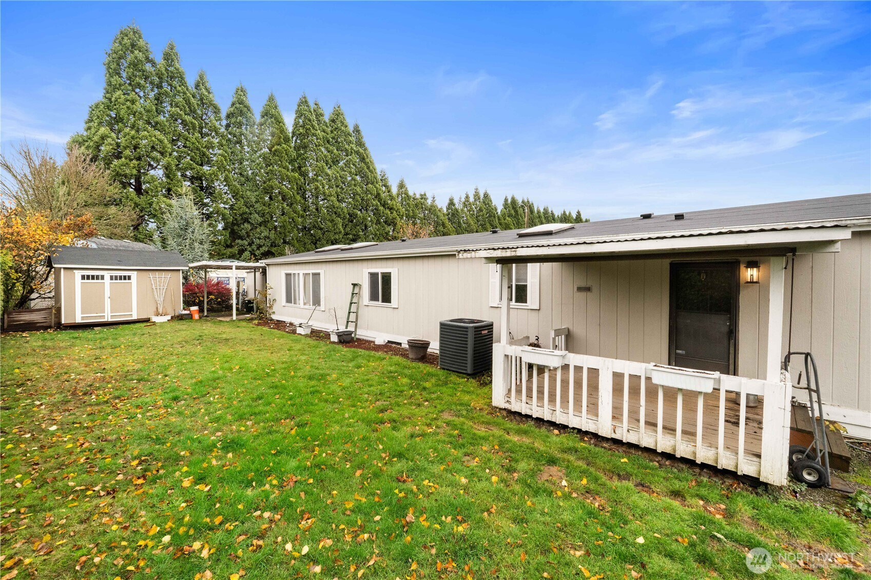 Large corner lot and fantastic layout in a 55+ park. This home lives large with its 1724 sq ft layout there's tons of space. The primary bedroom is on one end of the home and it includes a large closet and private bathroom with a newer walk in shower. On the other end you'll find 2 additional bedrooms with a bathroom and the large family room with a slider to the outside. In the middle is a living room, kitchen, dining room and utility room. Tall ceilings make the home feel even larger. The carport parking fits 2 cars and more can park uncovered. There is AC for the warmer months and a newer furnace for the chilly times. Lot rent is low at $713.00 a month.