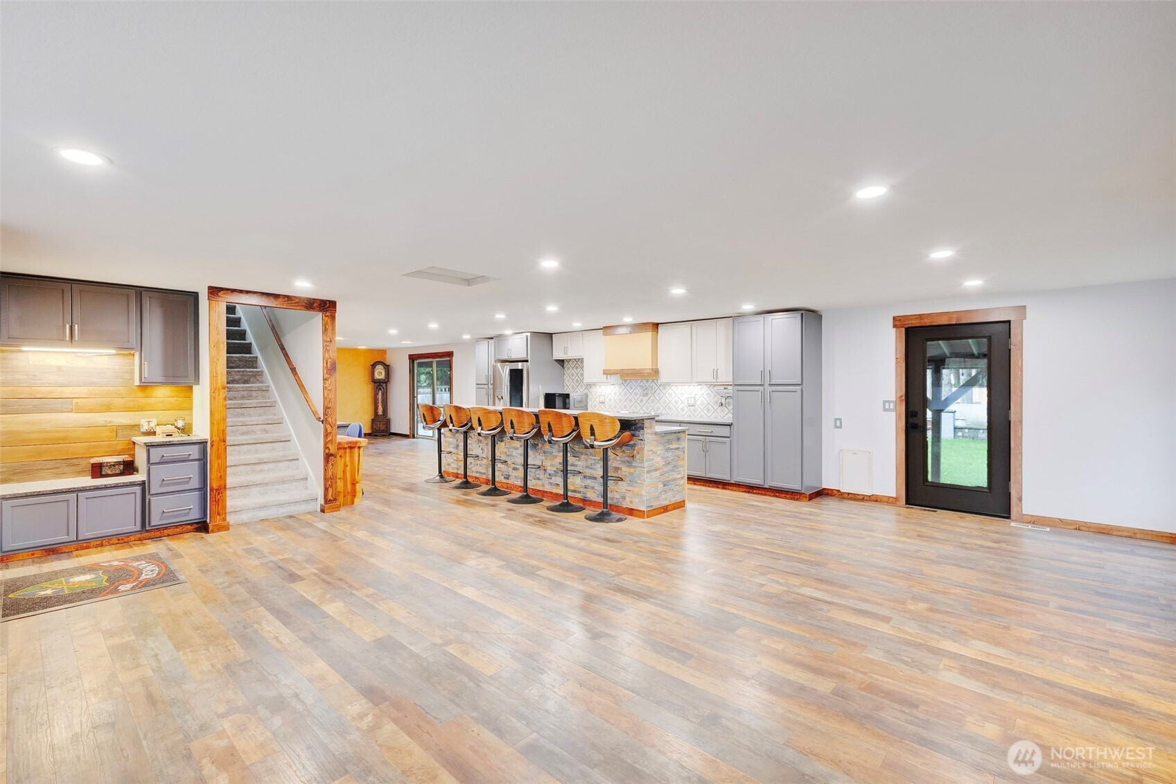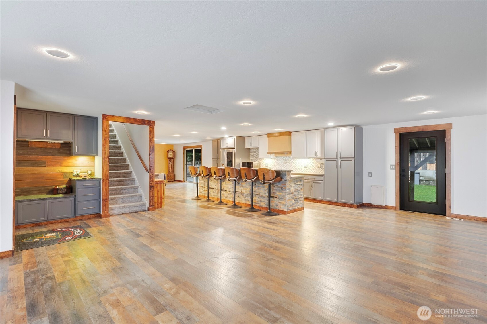 Step into a home that feels instantly alive—bright, open, and perfectly designed for living, gathering, and yes, dance parties downstairs. The recently remodeled main level features a spacious kitchen with high-end appliances, under-cabinet lighting, a pot filler, a glass rinser, and a stylish wet bar/coffee bar complete with a wine fridge and thoughtful upgrades. The open living area is anchored by a cozy gas fireplace framed with built-in shelving and cabinetry, adding warmth and character to the heart of the home. A full bath and a generous main-floor bedroom add comfort and flexibility, while upstairs you’ll find two bedrooms, an additional bathroom, as well as a primary suite with bathroom. Outside, the magic continues. Sitting on a fully fenced acre, this property unfolds into a private, park-like escape. There’s room for everything—RV, boat, and toy parking, an XL shed, and a powered workshop that could easily be transformed into an ADU. Enjoy the greenhouse with raised beds, a fire-pit circle with built-in benches, and countless charming spaces to explore. The fully covered back patio is perfect for year-round entertaining, and the covered hot tub invites relaxation in any weather. With a heat pump, generator wiring, water softener and filtration system, and true turn-key readiness, this home welcomes you from the moment you arrive.
