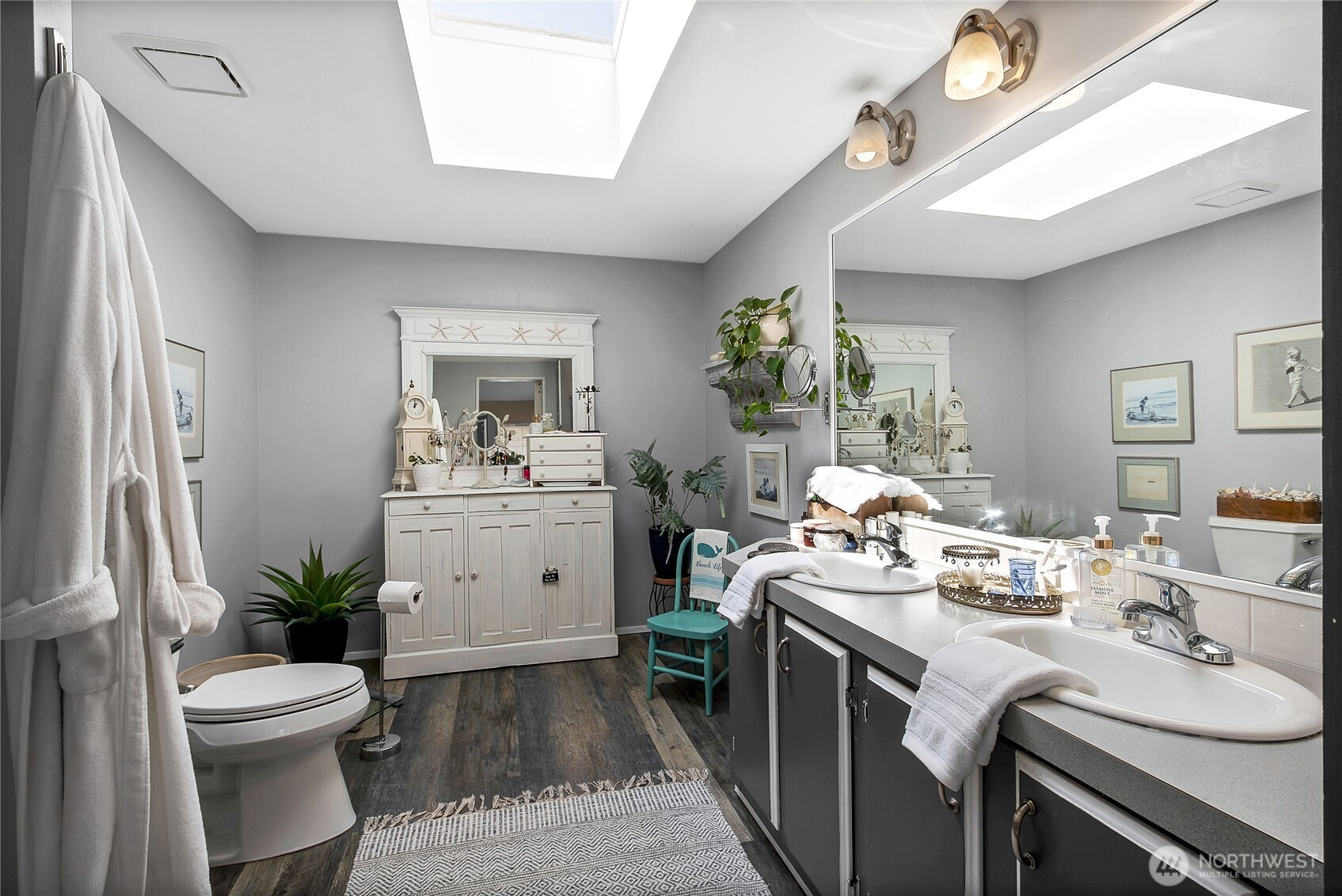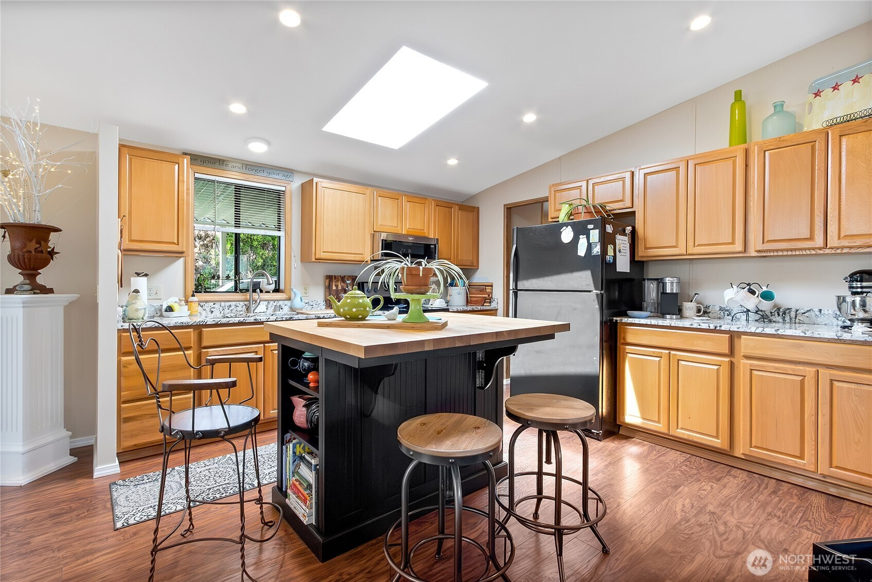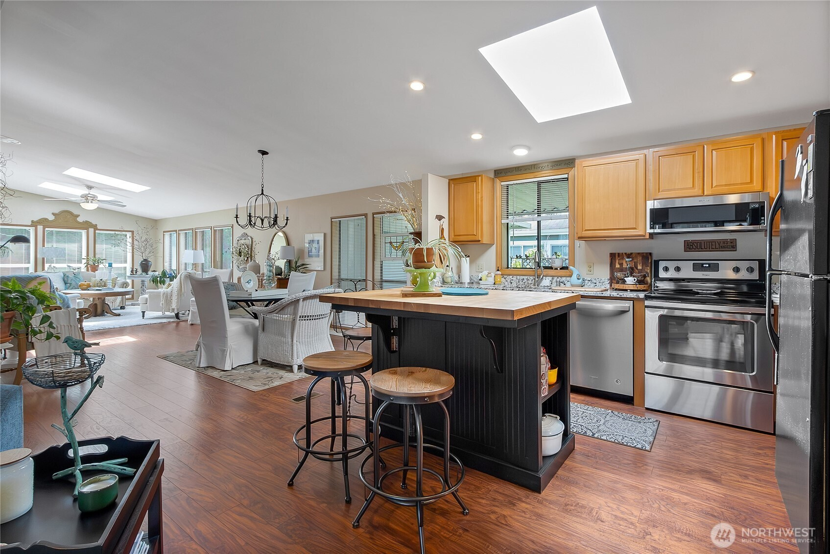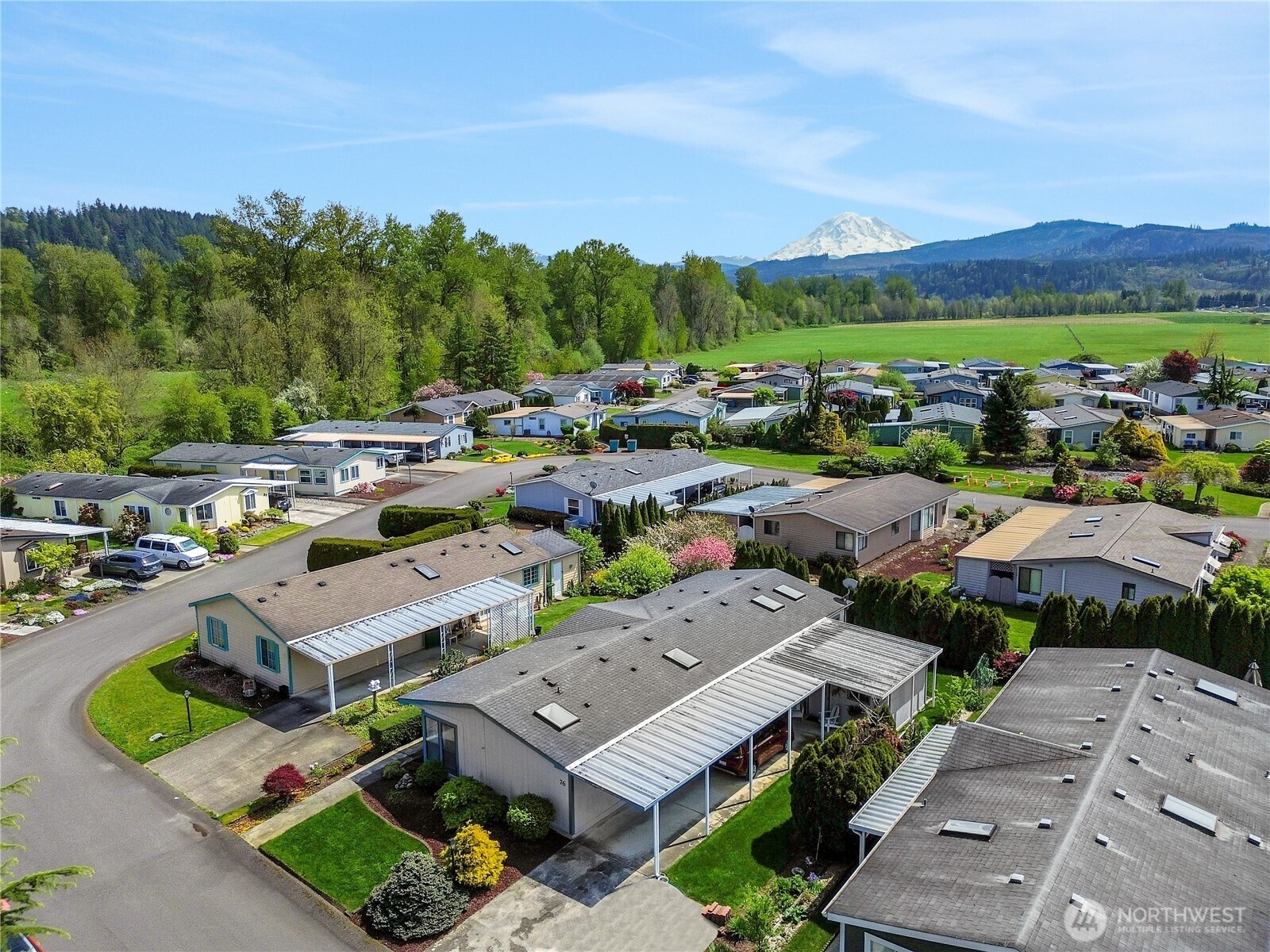Welcome to easy, low-maintenance living in the sought-after Mountain View 55+ community! This beautifully updated 3-bedroom, 2-bath home offers 1,775 SF of bright, open living space designed for comfort and functionality. Step inside to find fresh interior paint, stylish flooring, and abundant natural light pouring in through multiple skylights. The spacious kitchen features generous cabinetry, granite countertops, and a convenient breakfast bar—perfect for everyday living or entertaining. The open-concept layout flows seamlessly into inviting living and dining areas, highlighted by large windows and a warm, welcoming feel. The primary suite offers a walk-in closet and private bath, while additional bedrooms provide flexibility for guests, hobbies, library, or office space. Enjoy year-round comfort with a heat pump for efficient heating and cooling. Outside, the home is impeccably maintained with attractive curb appeal, covered parking, and space for additional vehicles. Community amenities include RV parking and a peaceful neighborhood setting, all just minutes from downtown Orting, local shops, dining, & outdoor recreation. Move-in ready and meticulously cared for—this is the one you’ve been waiting for! Submit your application today!