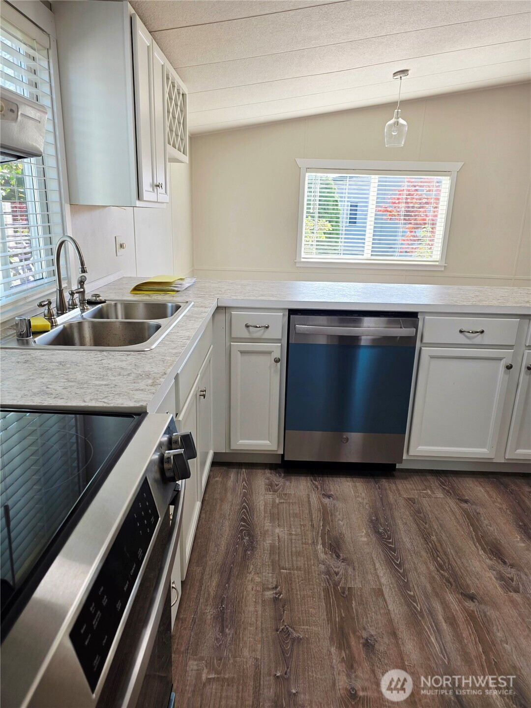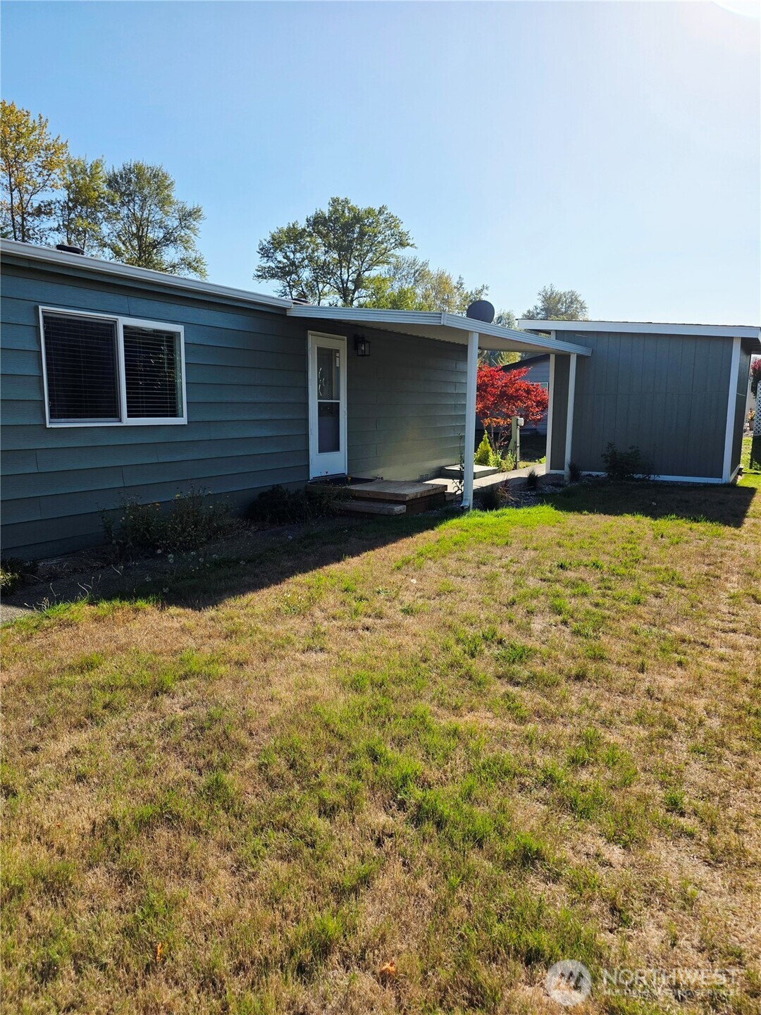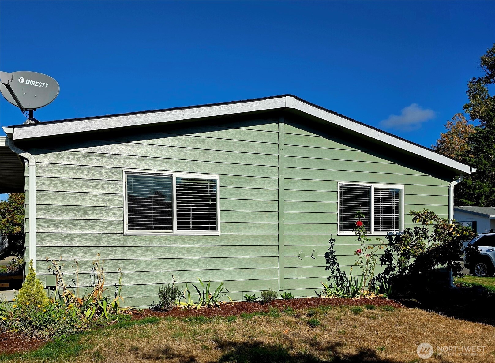 Discover the perfect mobile home haven in the peaceful 55+ community of Mountain View estates. Completely remolded and move-in-ready, this home boasts vaulted ceilings, elegant quartz countertop's in both the kitchen and bathrooms, and brand-new stainless-steel appliances. Nestled on a spacious corner lot, it offers two-car covered parking, a large shed with electricity, and the breathtaking views of Mt. Rainier. Enjoy, comfort, and scenic beauty - all in one exceptional home.