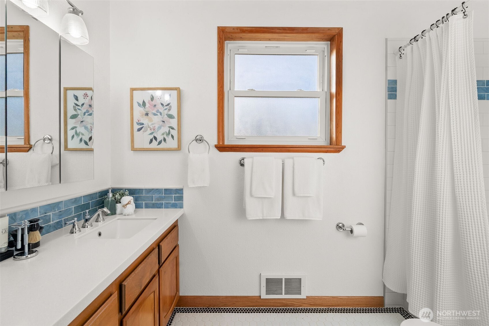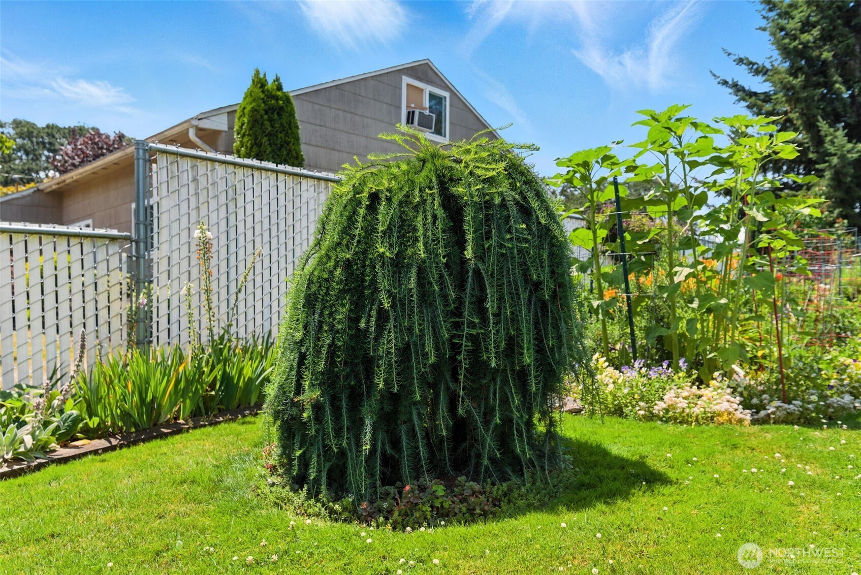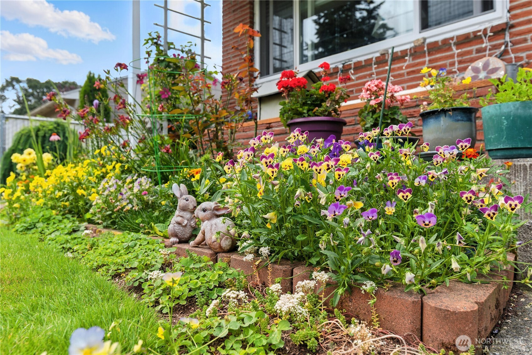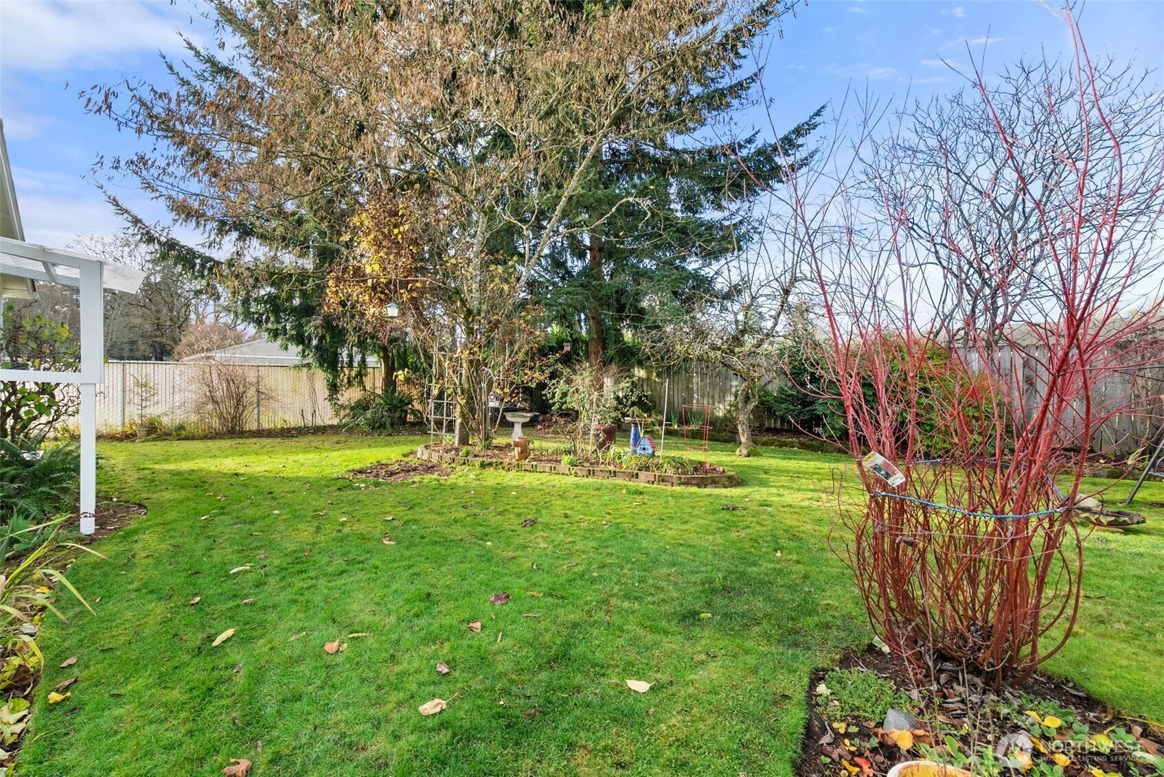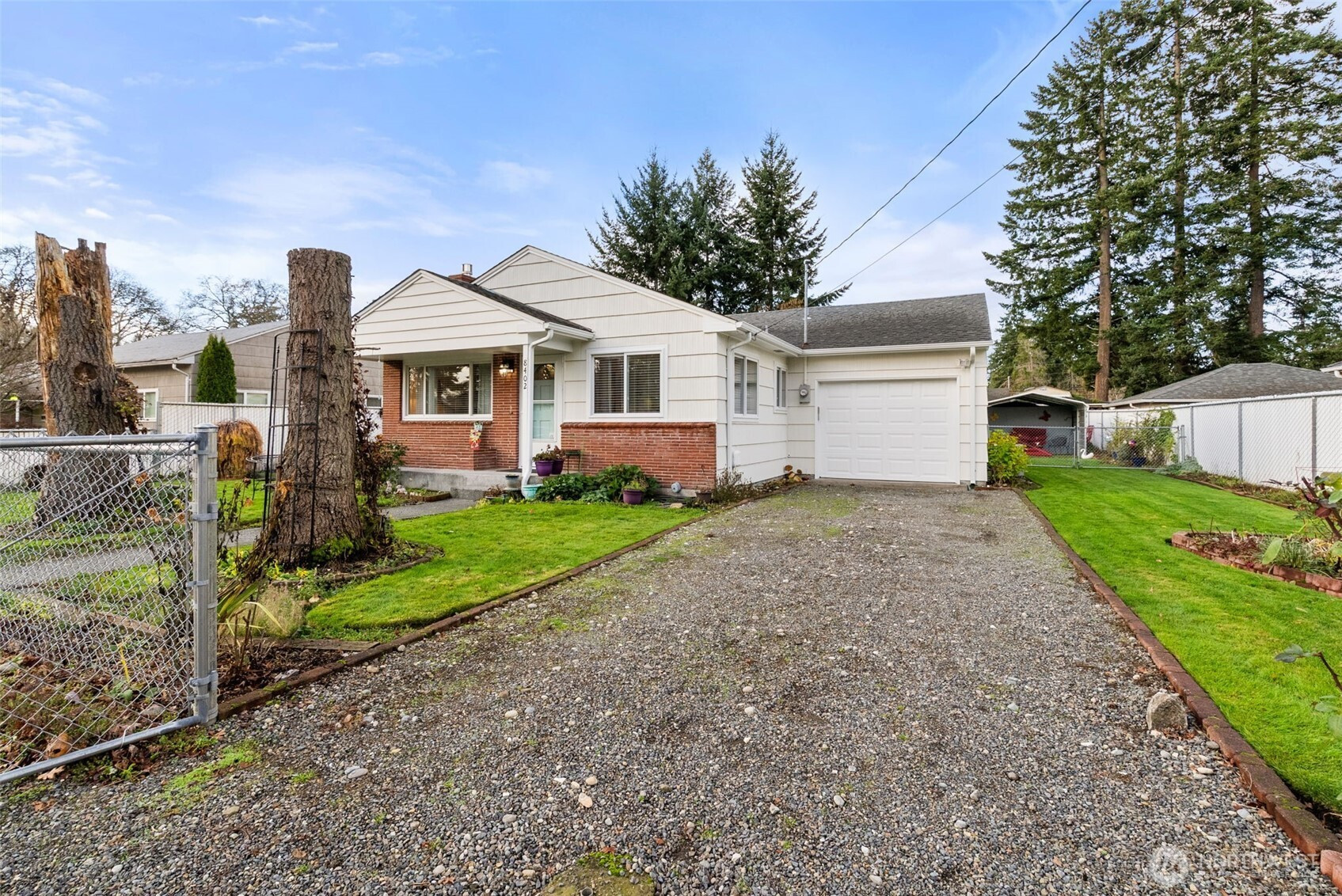 This fully updated Lakewood gem blends mid century charm + modern comforts! Bright, updated kitchen with white subway tile, quartz countertops, and soft-close cabinetry. Cozy brick gas fireplace, newer double-pane vinyl windows, and timeless built-ins throughout for added character you just don’t find in newer builds. Spacious primary suite w/plush new carpet and padding. Updated bathrooms with charming tile designs. 2025 ext paint, newer furnace, a/c, hot water heater, refinished oak HW floors. Fully fenced, park-like yard w/mature landscaping, garden beds, patio & outbuildings—your own backyard sanctuary. Attached 1-car garage doubles as a workshop. On quiet street just minutes from Lakewood Towne Center, I-5, a must see!