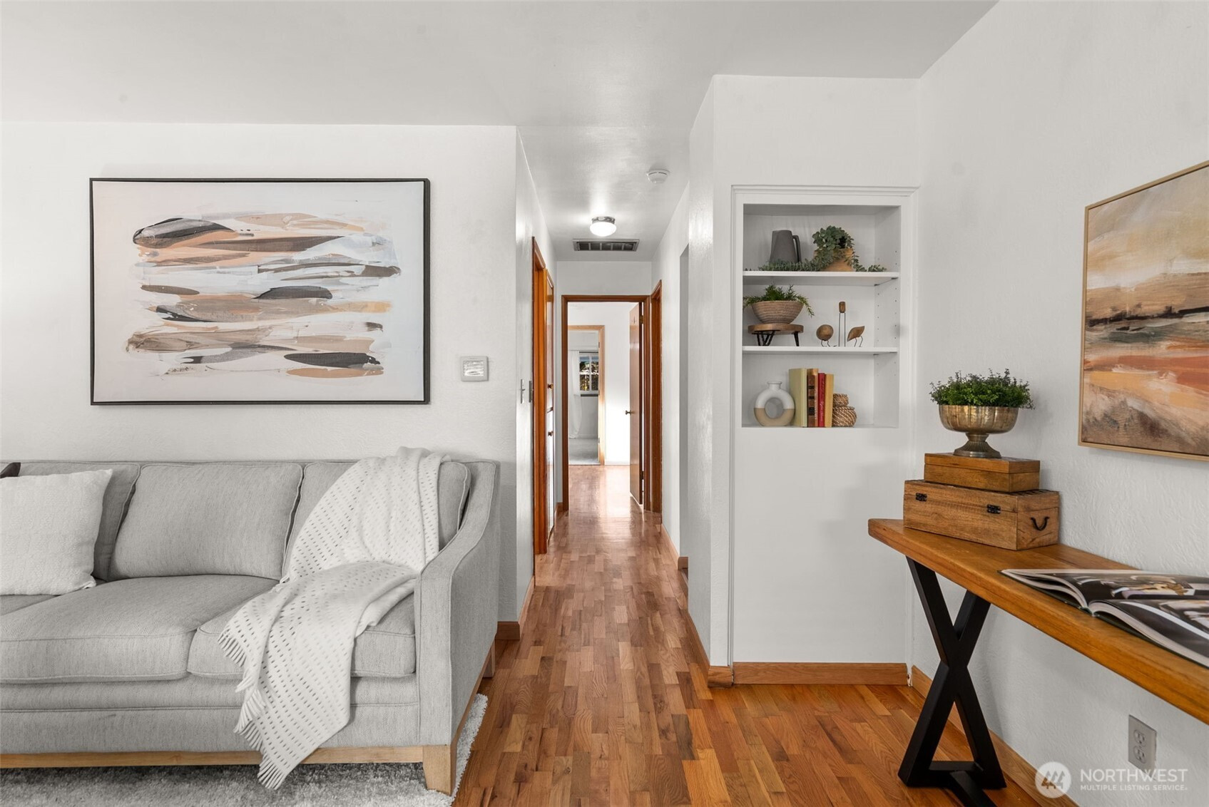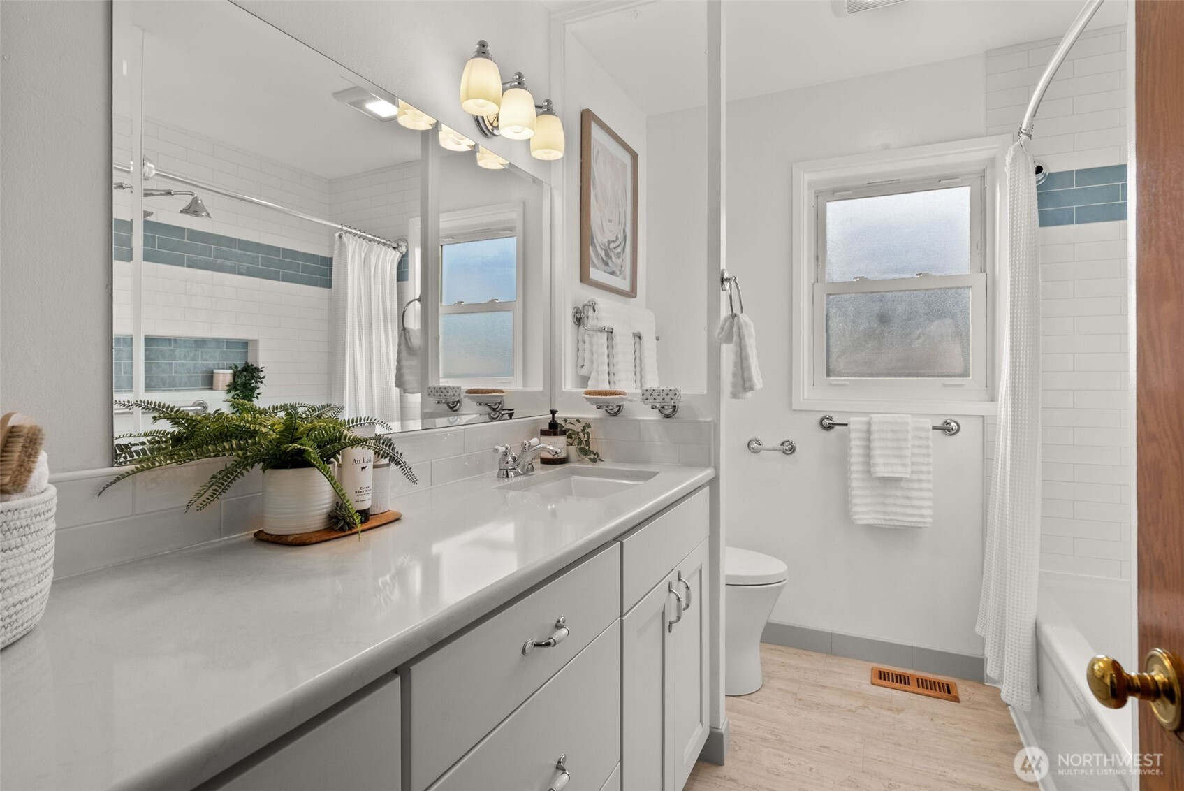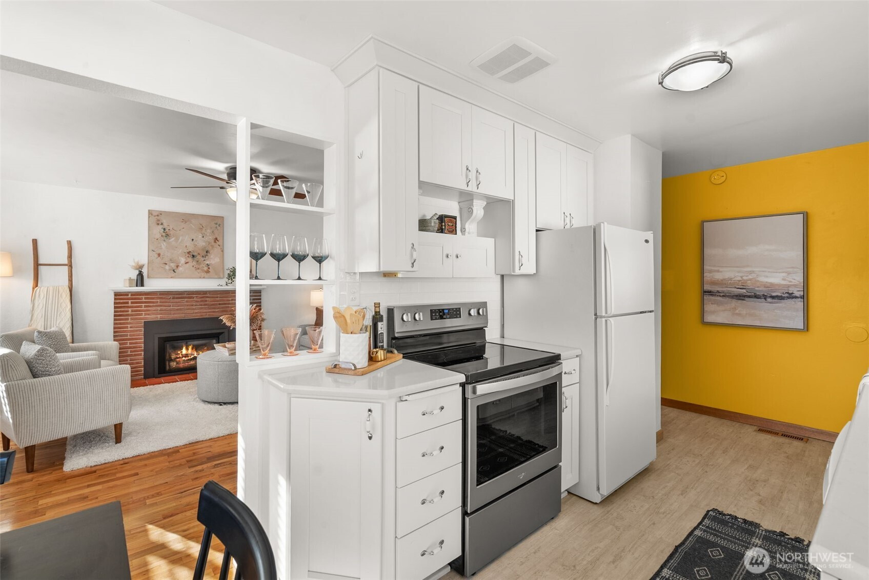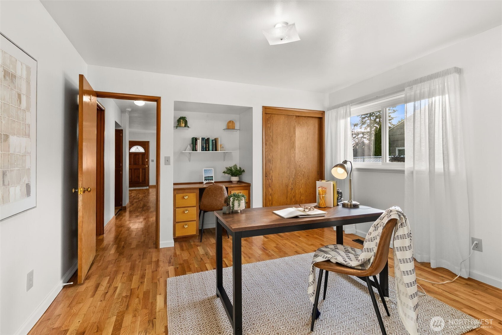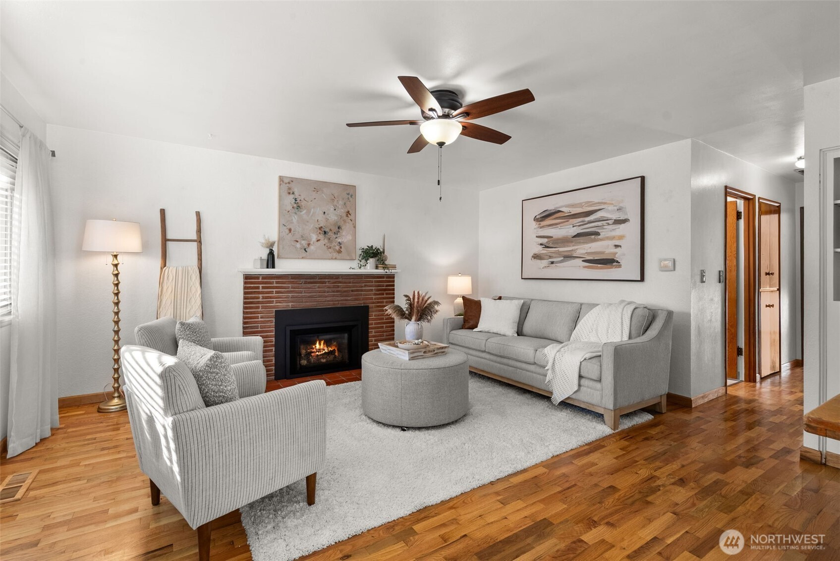 This fully updated Lakewood gem blends mid century charm + modern comforts! Bright, updated kitchen with white subway tile, quartz countertops, and soft-close cabinetry. Cozy brick gas fireplace, newer double-pane vinyl windows, and timeless built-ins throughout for added character you just don’t find in newer builds. Spacious primary suite w/plush new carpet and padding. Updated bathrooms with charming tile designs. 2025 ext paint, newer furnace, a/c, hot water heater, refinished oak HW floors. Fully fenced, park-like yard w/mature landscaping, garden beds, patio & outbuildings—your own backyard sanctuary. Attached 1-car garage doubles as a workshop. On quiet street just minutes from Lakewood Towne Center, I-5, a must see!