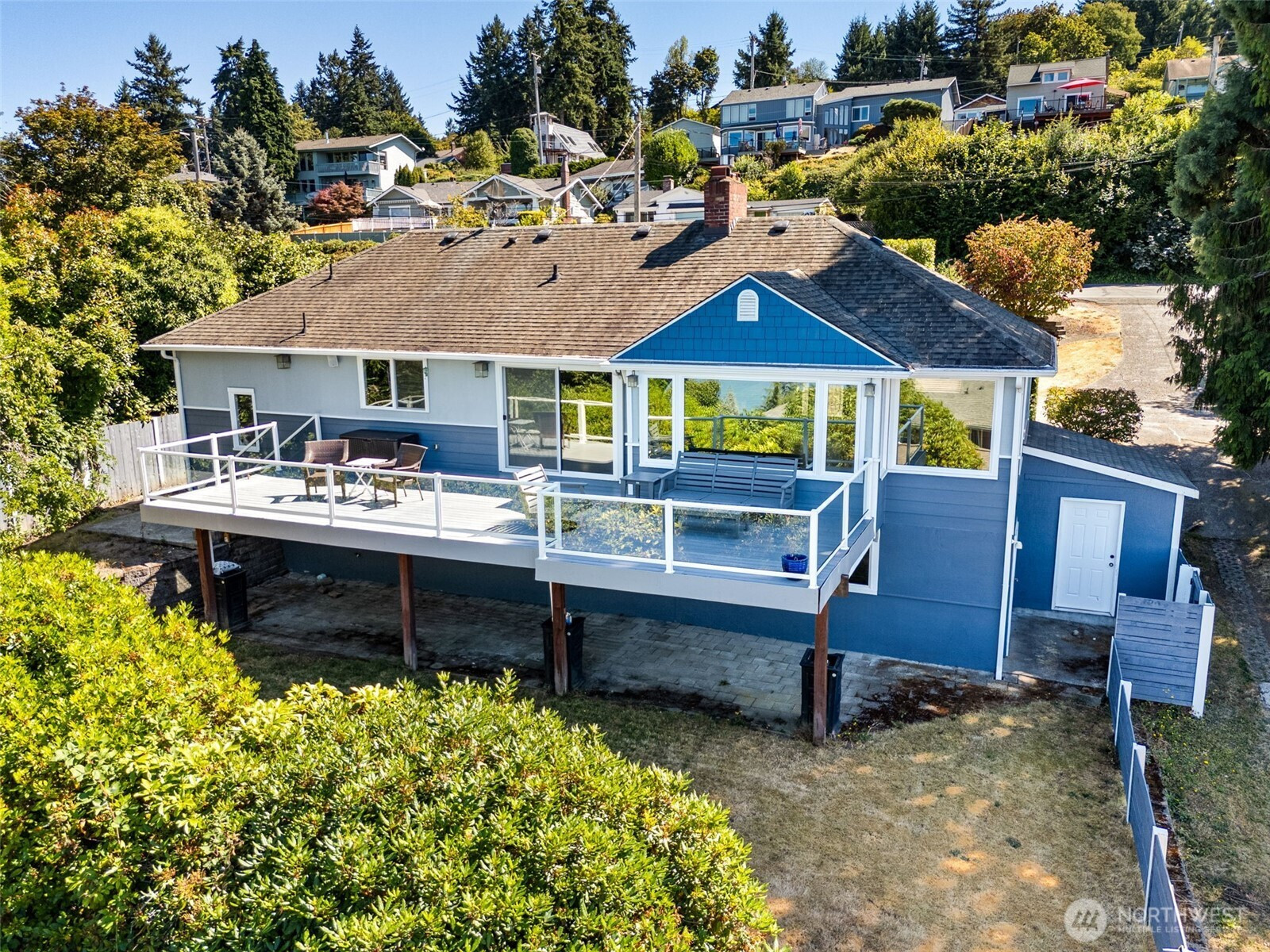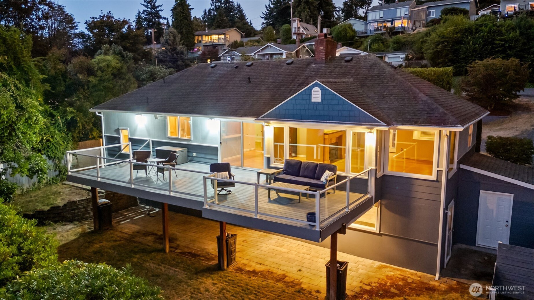 Sweeping breathtaking Puget Sound & Mountain Views Await! Enjoy stunning sunsets, Vashon Island, passing ships, and more from the expansive entertainer’s glass wall deck of this well-maintained home. Features a chef’s kitchen with high-end appliances, gas stove, granite counters, glass cabinets, wine cooler, center island & dedicated beverage service area. Open-concept living room boasts hardwood floors, cozy gas fireplace with custom millwork/marble surround & is wired for whole-home stereo. The spacious primary suite includes a luxurious en-suite bath & walk-in closet. Downstairs, plenty of space and access to a fully-fenced private yard. Easy access to Dash Point Park, beach, pier, restaurants & award-winning schools. Won't last long!