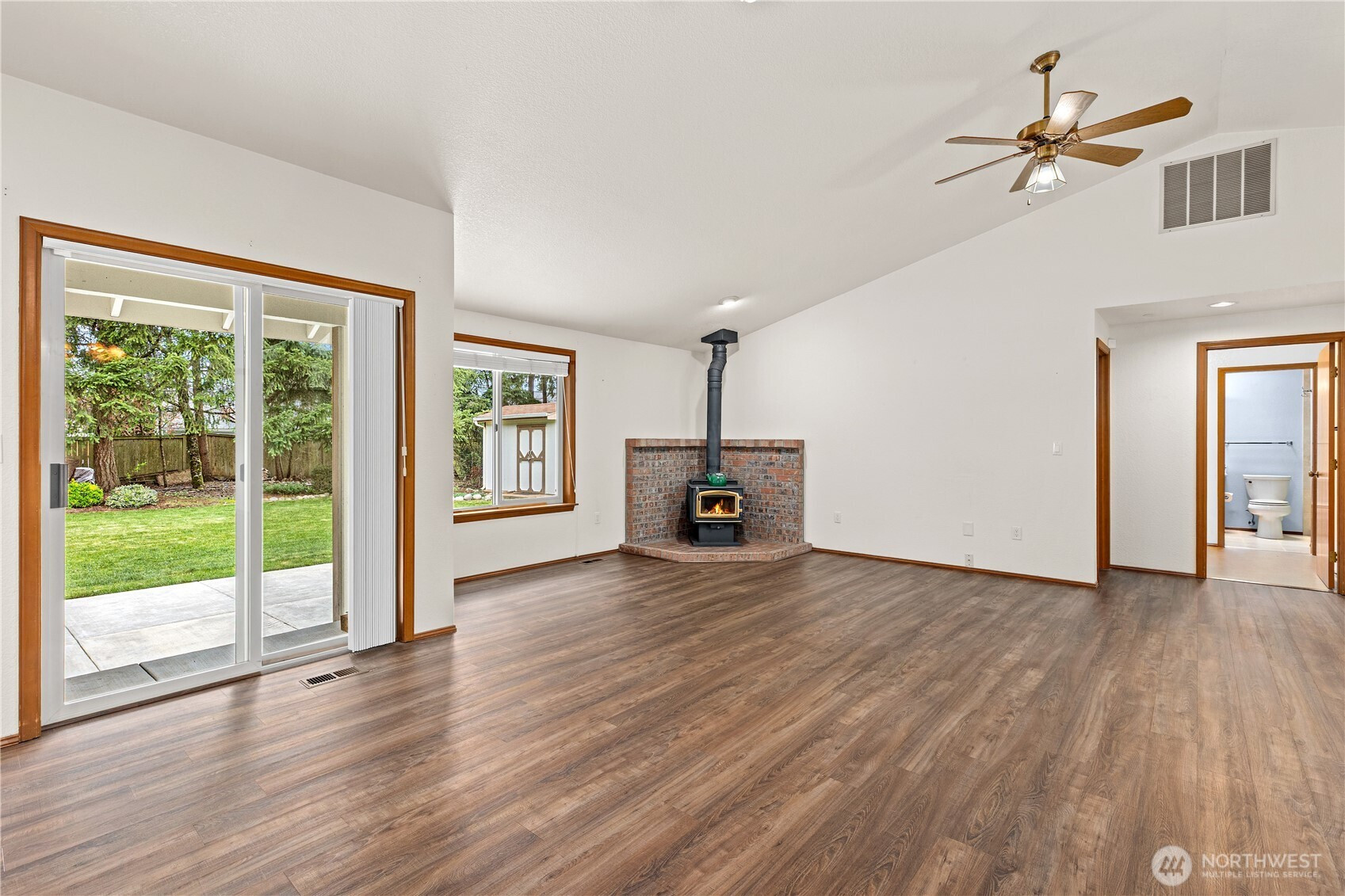 This home is a must see!! Clean, well maintained, custom built rambler, located on a quiet dead-end street, on South Hill. The fantastic home features a great open concept layout, and is perfect for first-time homebuyers, or those looking to downsize. Situated on a spacious .29 acre lot, this home features a fully fenced, private backyard with a beautifully maintained yard and sprinkler system. Enjoy the large back patio, new in 2023, perfect for relaxing or entertaining. There is also a large garden shed with electricity and lighting, great for storing lawnmower, landscaping tools and more. Inside, you’ll find a smart, split floor plan, with the primary bedroom on one side of the home for added privacy. Vaulted ceilings and a freestanding wood stove create a warm and inviting living space. The kitchen offers stainless steel appliances, a gas oven/stove, cabinets with convenient pull-out drawers, and ample counter space. Garage is insulated, fully finished (tape, texture, paint), and features storage shelves that are included. Durable concrete tile roof provides protection for years to come. Near Rogers High School, just minutes to Costco and the South Hill Mall, with quick access to Highway 512, downtown Puyallup and all that South Hill has to offer. No HOA. Schedule a visit today!!