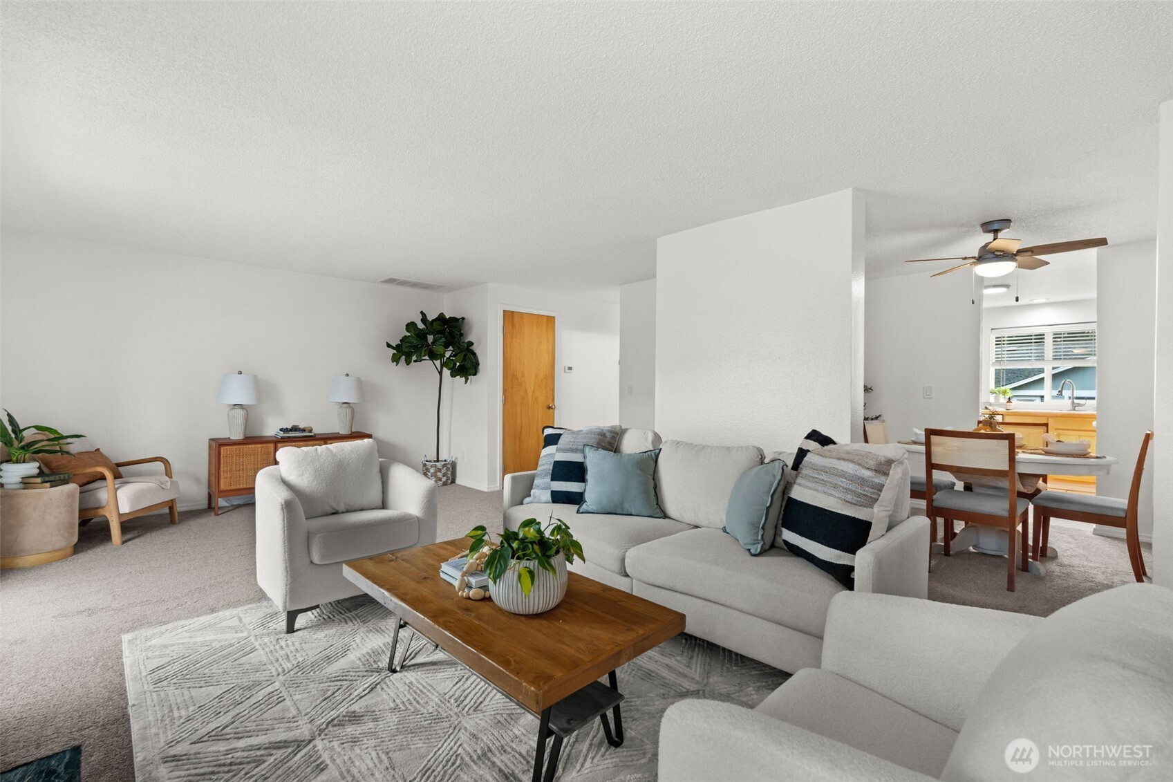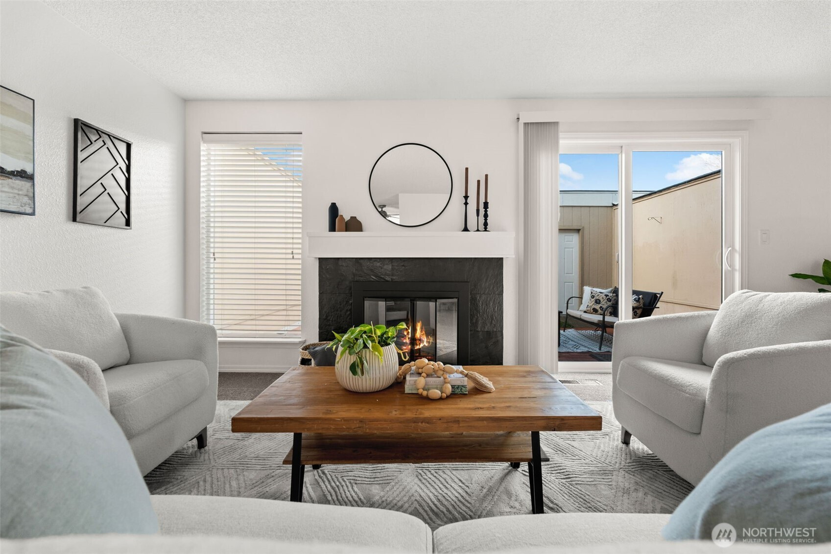 Welcome to Mt. Vernon Village — a highly desirable townhome community set on 15 acres of beautifully maintained, park-like grounds. This sparkling clean, move-in ready home offers new paint throughout, new carpet, and new roof. The bright, functional floor plan features a welcoming living room with fireplace and slider leading to a large, fully fenced private patio — ideal for morning coffee, entertaining, or relaxing outdoors. The kitchen includes a dedicated dining area and flows seamlessly into the main living space. The spacious primary suite offers a full bath with two additional bedrooms. Enjoy a well-managed HOA that includes water, landscaping, exterior maintenance, roads, clubhouse, pool, and earthquake insurance. Home features a generous two-car garage. Pet-friendly with a two-pet minimum. Unbeatable location with easy access to Fort Steilacoom Park, farmers markets, dog park, walking and biking trails, coffee shops, dining, and shopping. Convenient to JBLM, Chambers Bay, Western State Hospital, and several golf courses. A must-see opportunity for low-maintenance living in a fantastic community.
