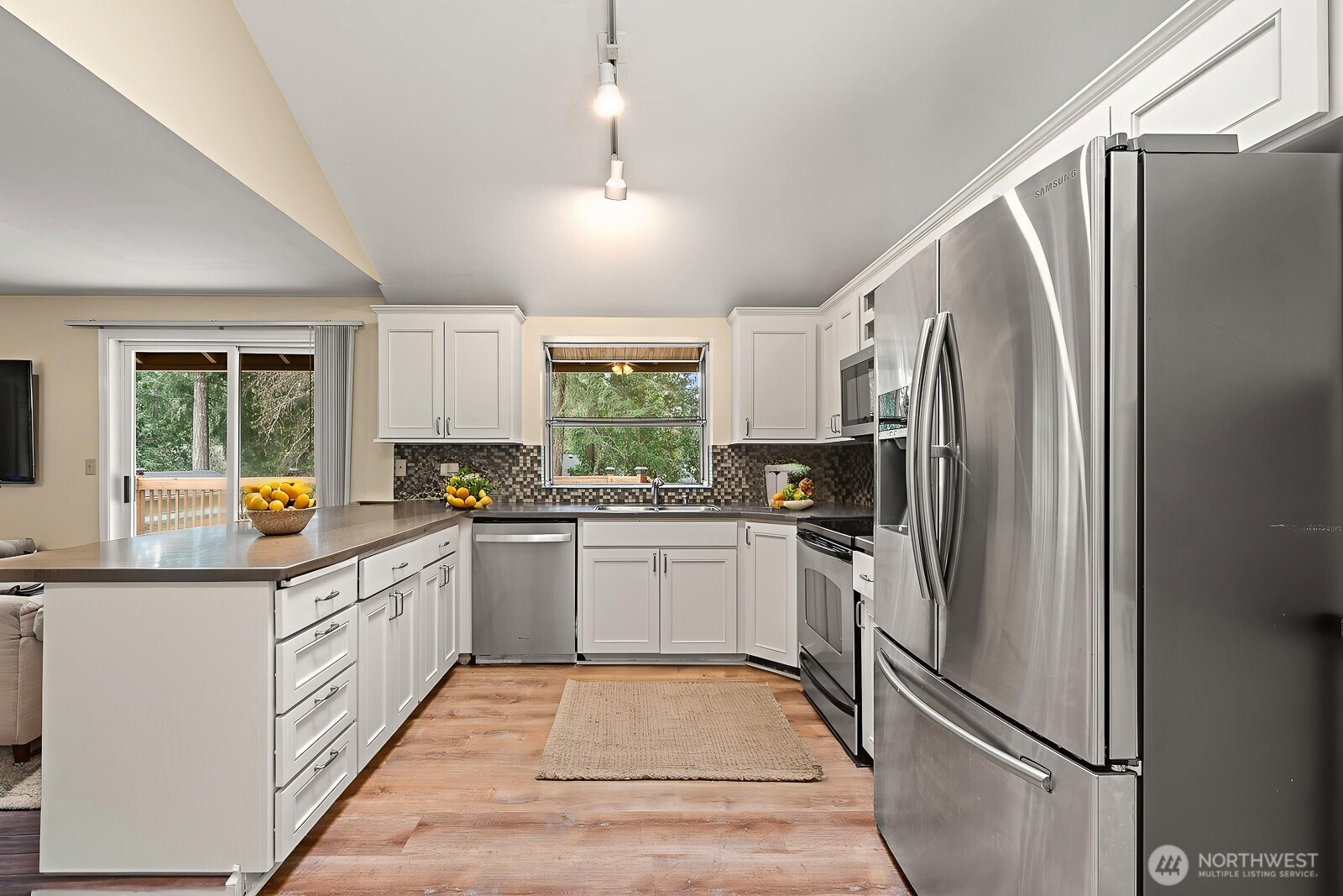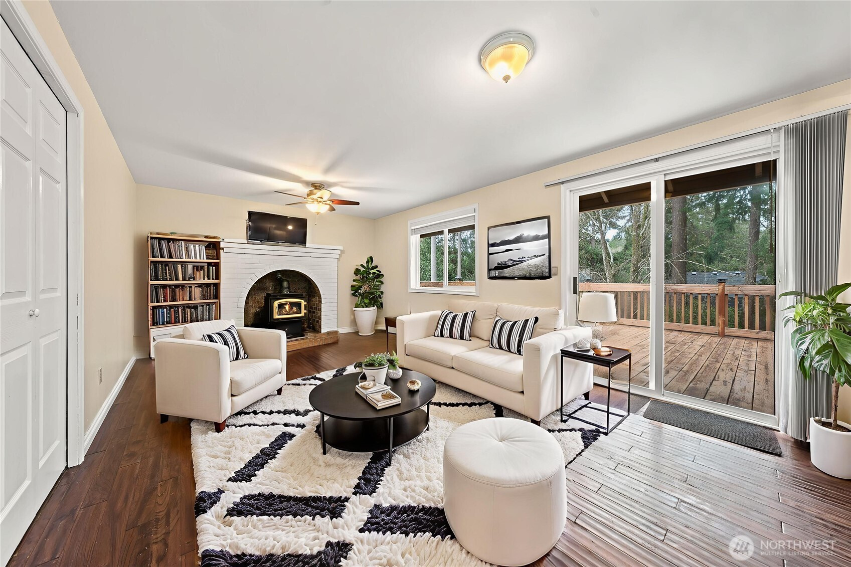 Welcome home to a beautifully updated one-story rambler in the highly desirable Artondale area of Gig Harbor. This home offers the perfect blend of modern finishes and comfortable single-level living. Step inside to discover a bright, airy living room accented by impressive vaulted ceilings and skylights. The beautifully appointed kitchen features stainless steel appliances, durable Corian countertops, and its own vaulted ceilings and skylights. Need more space? Enjoy the separate rec room, kept cozy year-round by a gas stove. The home boasts a spacious primary bedroom complete with a private attached en-suite bathroom. All bedrooms feature plush, brand-new carpets, complemented by elegant engineered hardwood floors and fresh interior paint throughout the main living areas. Outside, entertain or unwind on the spacious deck that overlooks the backyard—perfect for privacy, pets, and summer gatherings. A practical 2-car garage provides ample parking and storage. Location is everything! This property is ideally situated just minutes from Highway 16, premium shopping, and local amenities, offering unparalleled convenience. Whether you are searching for an updated single-story home or a peaceful Artondale retreat, this Gig Harbor gem truly has it all.
