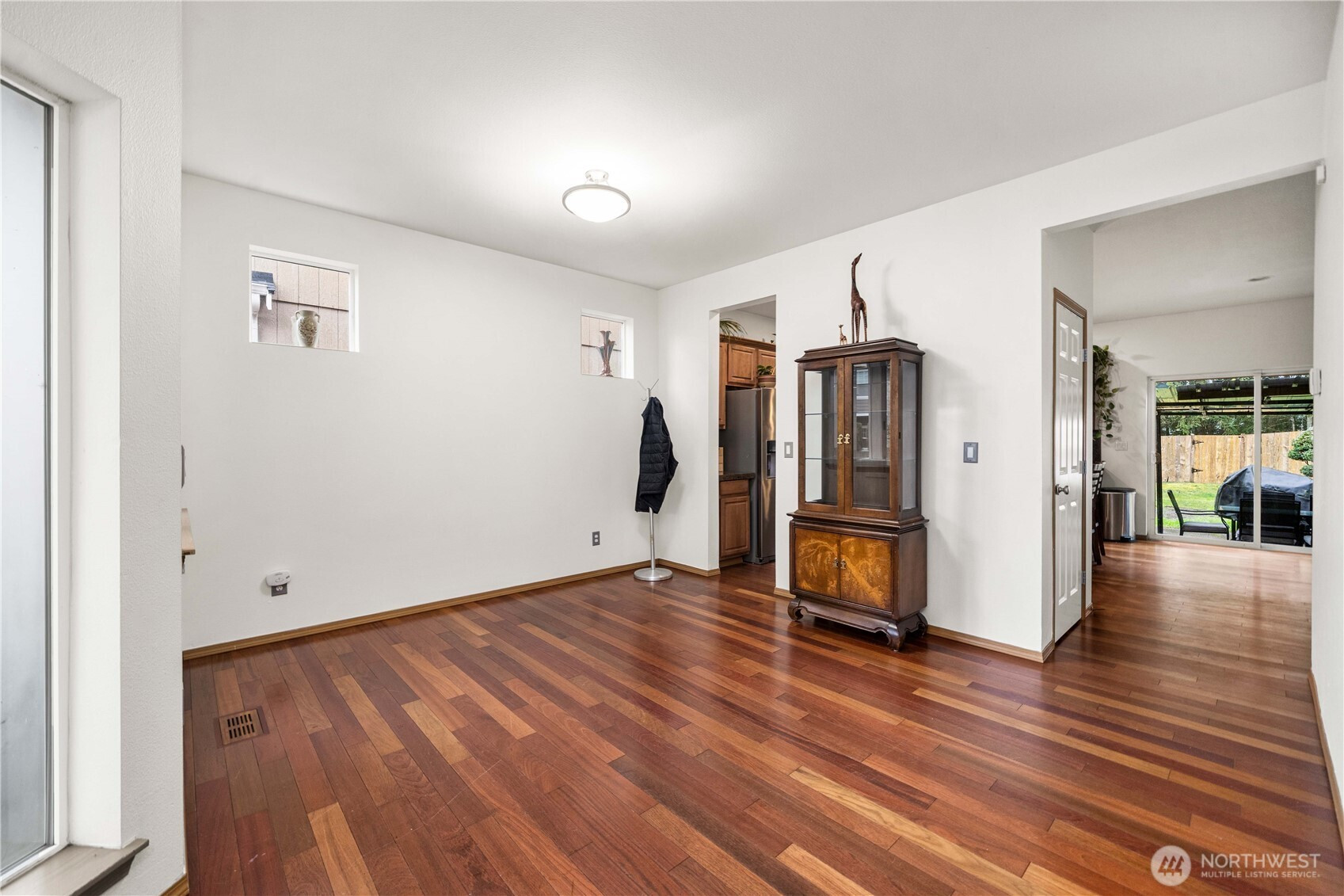 Tucked at the end of a private driveway in the highly sought-after Silver Creek community, this beautifully maintained home offers space, flexibility, and privacy. Featuring 4 bedrooms plus a spacious bonus room that could serve as a 5th bedroom or rec room, the layout is ideal for multigenerational living. With a bedroom on the main level and adjacent ¾ bath with a walk-in shower—this setup is perfect for guests or extended living options. The open-concept design creates an inviting flow from the kitchen to the living room, ideal for both everyday living and entertaining. Hardwood flooring enhances the main living areas downstairs, while new carpet adds comfort and a fresh feel. Upstairs, the generous primary suite features a 5-piece ensuite bath and walk-in closet, creating a relaxing retreat at the end of the day. Step outside to a cozy patio overlooking a large, private backyard backed by peaceful greenbelt for added privacy. A spacious storage shed provides plenty of room for tools, hobbies, or outdoor equipment. Ample parking, a newer A/C unit, and a prime Silver Creek location complete this exceptional home!