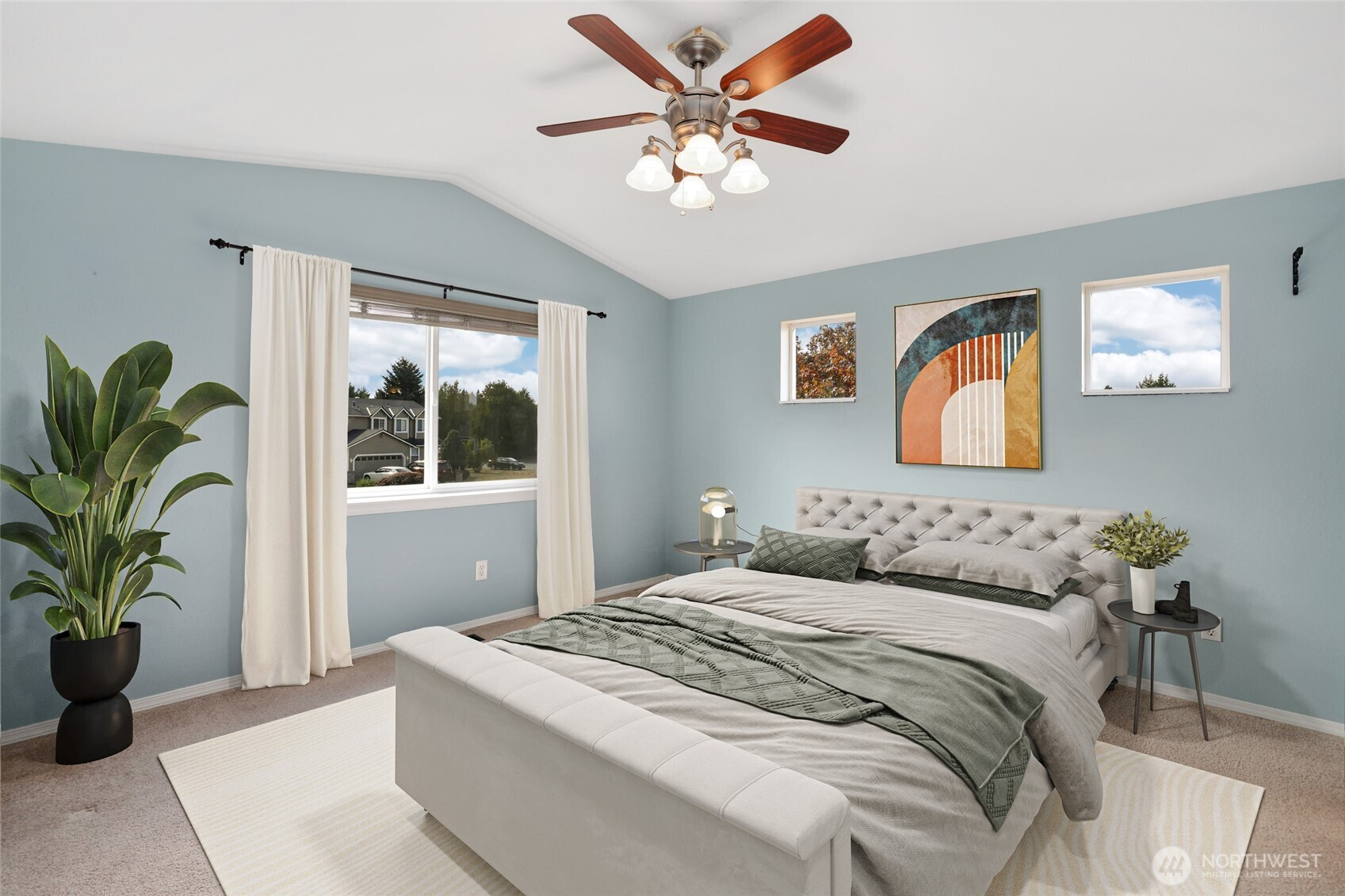 (503) 893-8874Spacious 2-story home on a cul-de-sac with thoughtful updates throughout! Remodeled kitchen with modern finishes opens to the dining area with French doors. Fresh interior paint and bamboo flooring create a warm, inviting feel. Upstairs, the primary suite features vaulted ceilings and a full bath. Enjoy the skylit sunroom and a private, fully fenced backyard with new fencing on a large lot, perfect for entertaining. Energy-efficient upgrades include a smart panel and solar panels. With 3 bedrooms, 2.5 baths, and over 1,700 sq. ft., this home combines comfort, style, and efficiency in a prime Spanaway location.