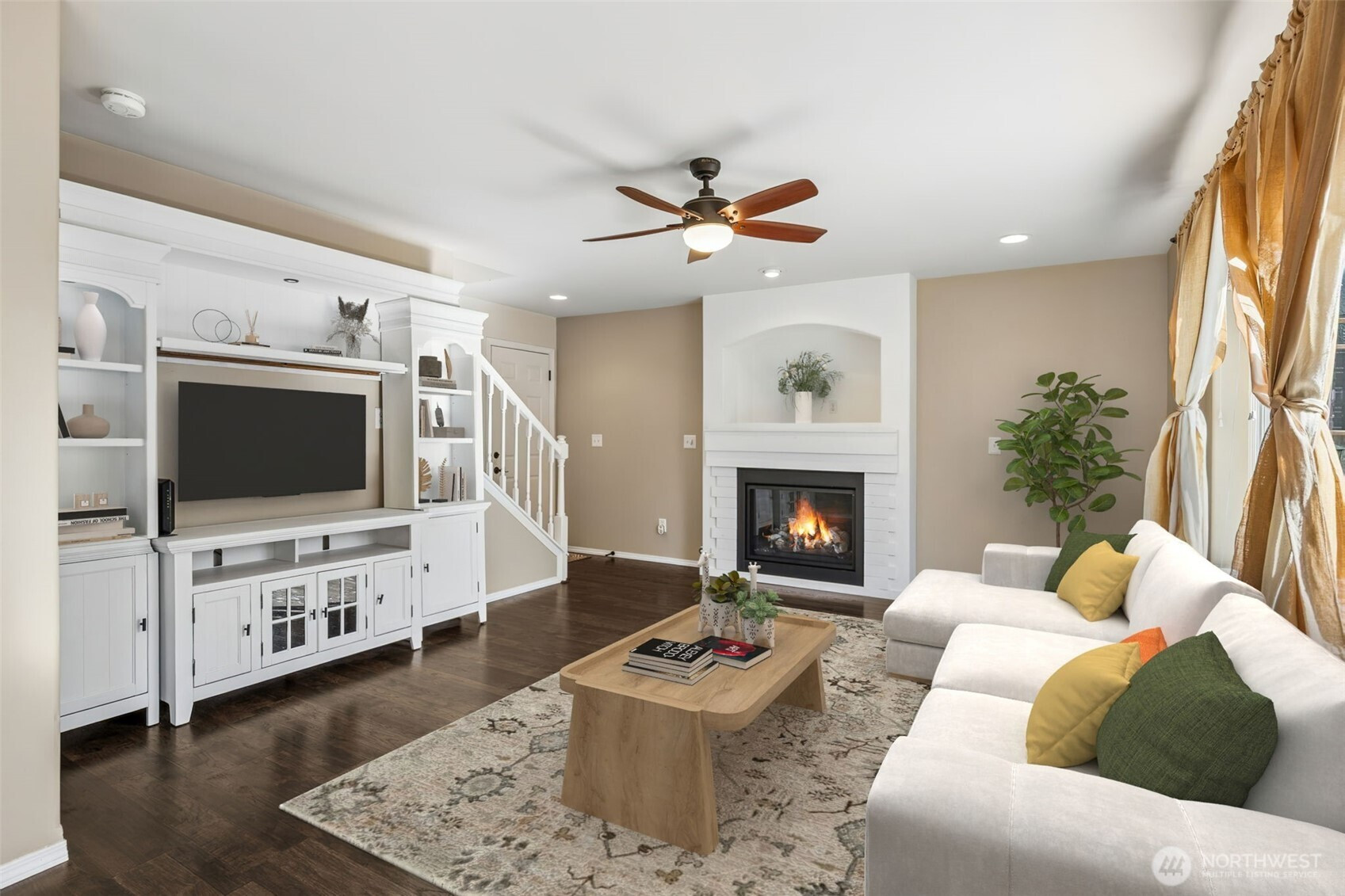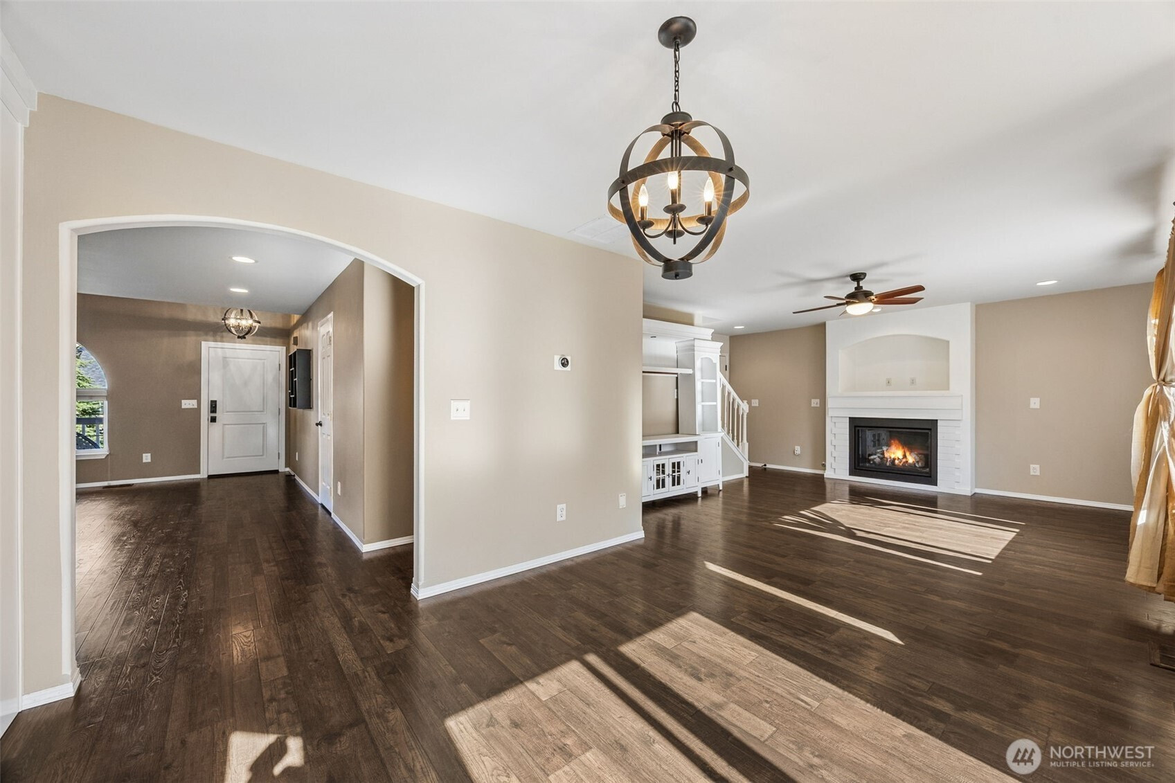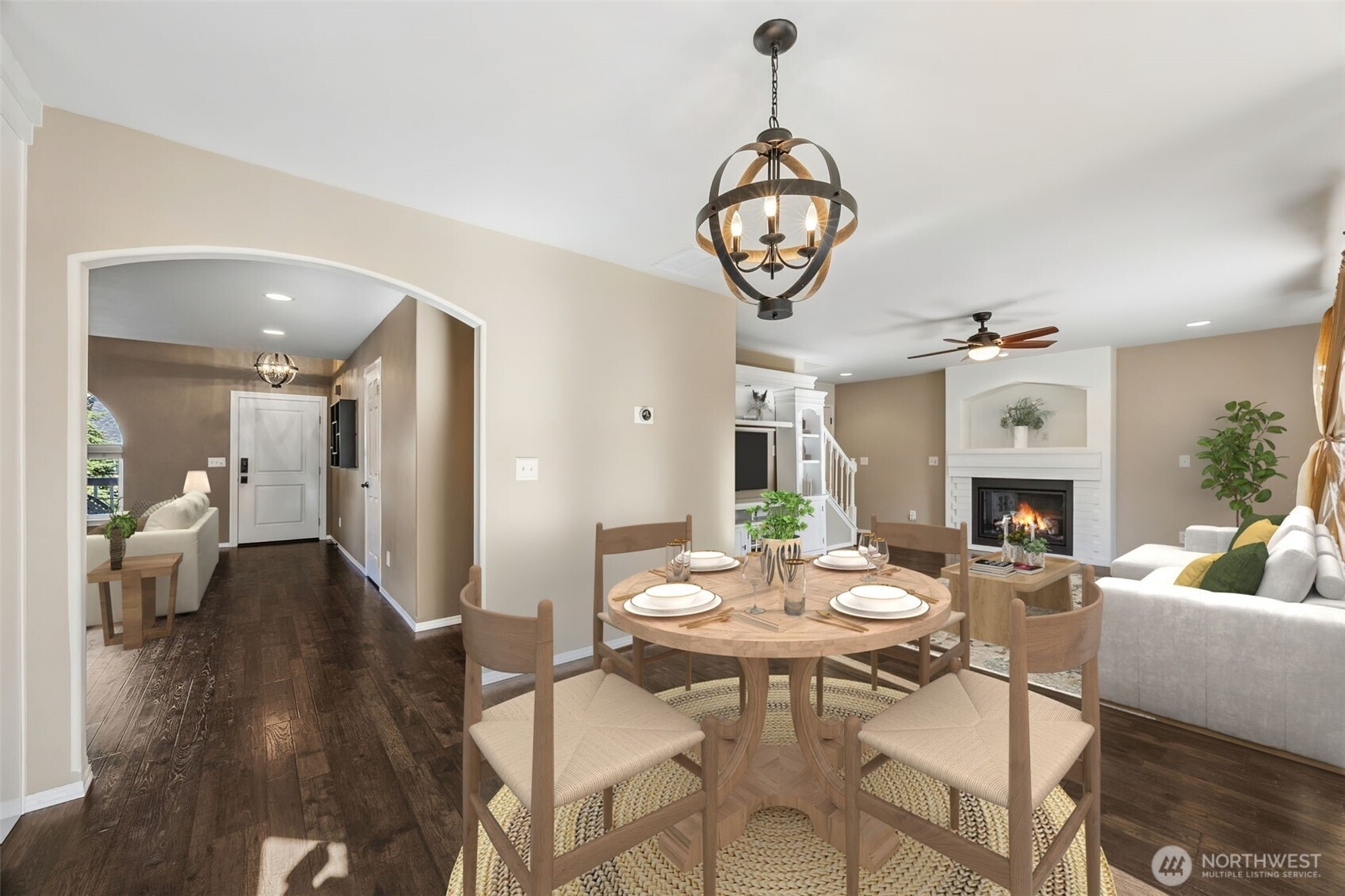 An exceptional offering in the intimate, gated enclave of Canter Ridge, just moments from Rogers High School. This beautiful home has been well maintained and thoughtfully updated. The main floor showcases stunning Pergo WetProtect luxury laminate flooring, two cozy gas fireplaces, designer fixtures, quartz countertops, custom cabinetry, elegant tile work, and premium stainless steel appliances - including a gas range for the culinary enthusiast. Upstairs features a convenient laundry room, updated guest bathroom, and spacious bedrooms. The primary suite is a true retreat, featuring a third fireplace and remodeled ensuite with a relaxing jetted tub. A fantastic whole-home central vacuum system services both the home and garage. The low-maintenance + high-enjoyment landscaping will be in full bloom soon with convenient SMART sprinkler system and charming water feature. All appliances convey, along with garage storage organizers, workstation, and EV charger. A 2022 high-efficiency heat pump and furnace with air purification system ensure optimal comfort year-round. This home is better than new and move-in ready in the Puyallup School District.
