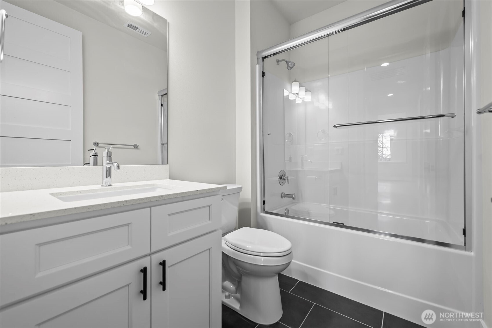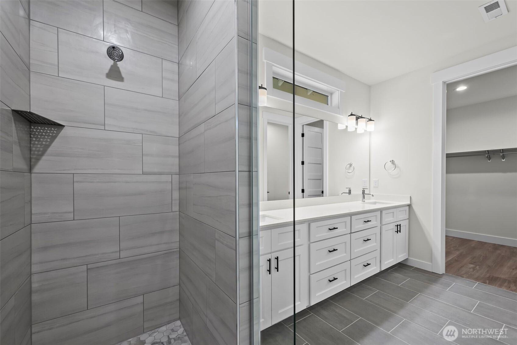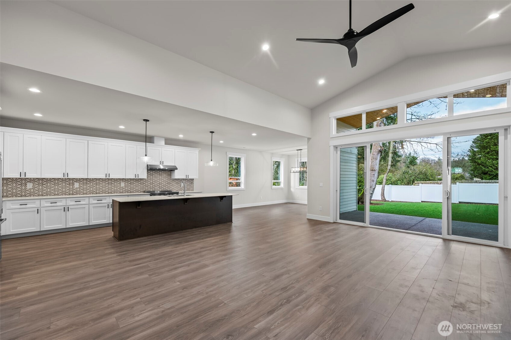A place to gather, unwind, and truly feel at home. Welcome to this thoughtfully designed new-construction rambler in Edgewood, offering 2,518 sq ft of effortless single-level living. From the moment you step inside, 9-ft ceilings, 8-ft interior doors, laminate hardwood floors, and wood-wrapped windows create a warm, airy atmosphere filled with natural light. The heart of the home offers an open great room, where vaulted ceilings, a cozy propane gas fireplace with tile surround and custom cabinetry, and a French-style double slider invite you to relax, gather and entertain. The kitchen is designed for both connection and function, featuring a large center island, generous cabinetry, walk-in pantry, and seamless flow into the dining area—perfect for hosting or casual evenings. The private primary suite offers a peaceful retreat with spa-like bath including a full tile walk-in shower with frameless glass door, dual sinks with extra counter space and walk in closet. Separate guest suite with ¾ bath provides flexibility for visitors or multi-generational living. Plus additional bedroom and full bath with ample storage and closet space. A dedicated den creates the ideal home office or flex space. Enjoy a spacious laundry room with sink and cabinetry. 2-car garage, fully fenced backyard and front and back sprinklers—designed for comfort, convenience, and everyday living. Great walkability within the community with stunning views of Mt Rainier.