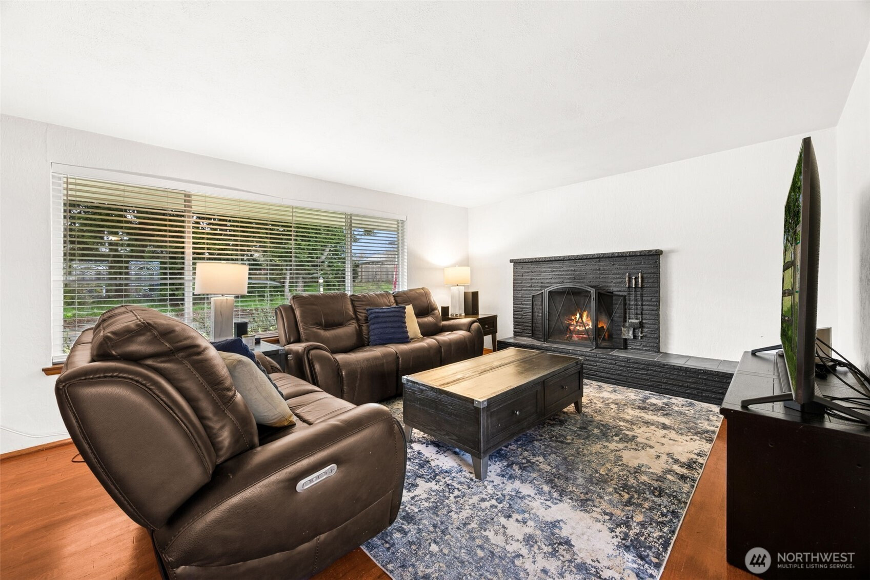 Well maintained 2-bedroom rambler with a 3-bedroom septic, offering flexibility for future expansion + NEW ROOF. The home features a spacious living area and a large dining room between the kitchen and family room, with double doors leading to the backyard patio for easy indoor-outdoor living. The family room features a warm brick hearth and cozy wood-burning fireplace, while air conditioning in this home keeps it comfortable during warmer summer months. The classic white galley kitchen is refreshed with granite countertops and a neutral subway tile backsplash with views into the backyard. The laundry room featuring a newer hot water heater, access to a walk-in pantry/storage area + exterior door leading to the backyard patio. The updated bathroom includes a tile-surround tub/shower combo, granite countertops, and modern lighting. Backyard is partially fenced and offers a firepit area, covered wood storage & small outbuilding that could be a chicken coop along with your very own grape vine, apple and cherry tree! All situated on a generous and fully fenced 11,000 sq ft lot with room to enjoy or expand.