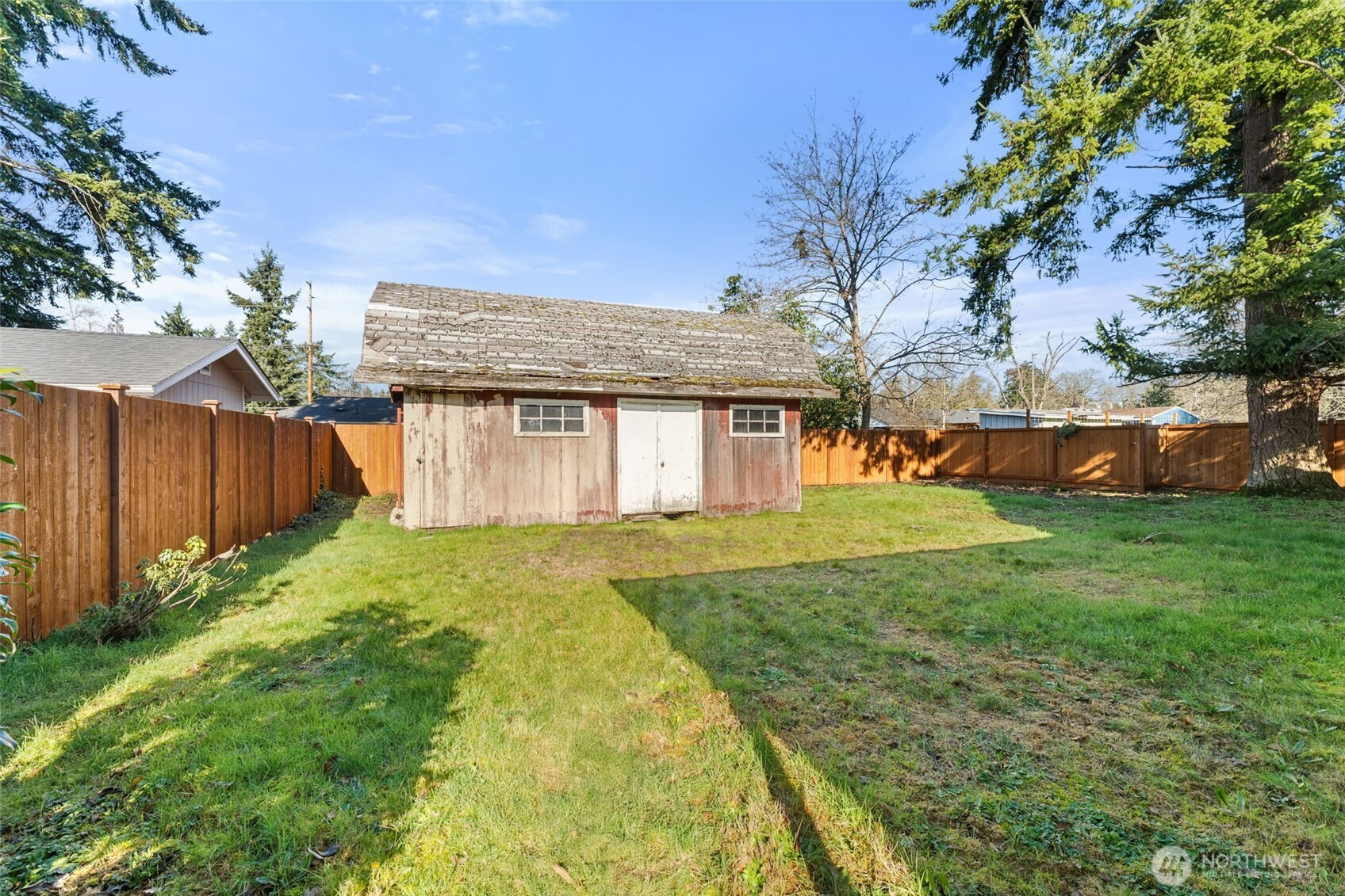 This charming Lakewood home features original hardwood floors and classic character. The home also boasts 4 bedrooms, 2 bathrooms, a freshly updated bathroom and new flooring upstairs, and a newer furnace, plus a versatile bonus room. Enjoy a spacious, fully fenced backyard with a barn-style outbuilding, new fence (2025), and front patio updated in 2022. Ample driveway parking for you and guests. Conveniently located across from Lake City Elementary, near shopping, JBLM, commuter routes, parks, and nearby to American Lake. This home is ready to make it your own and a great investment opportunity!