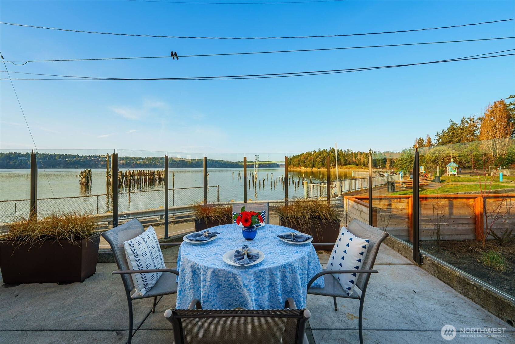 Experience refined waterfront living in this newly constructed luxury residence, soon to be within a gated enclave on Wilton Road at Titlow Beach.The iconic former Steamers Restaurant site was thoughtfully reimagined & rebuilt from the ground up in 2023.Designed by acclaimed Gig Harbor architect Jeannie Radcliffe, this turnkey home captures sweeping, unobstructed views of the Narrows Bridge & Olympic Mountains, w/ breathtaking sunsets & prized western exposure enjoyed throughout.The contemporary floor plan offers three private ensuite bedroom retreats and expansive, light-filled living spaces ideal for entertaining.Highlights include a gourmet kitchen w/Smeg gas cooktop, three fireplaces, an enclosed waterfront deck, an impressive 1,500-square-foot bonus level—fully plumbed and wired—ideal for multigenerational living, guest quarters, or a home office, plus five dedicated parking stalls.Thoughtfully landscaped w/native marine plantings & permeable pavers, the property features underground 400-amp service w/ EV charging & advanced energy systems including solar, high-efficiency heat pumps, HRV/ERV, & Low-E triple-pane glazing.Across the street, 75-acre historic Titlow Park offers trails & waterfront access. Walk to Narrows Marina, Boathouse 19, & the iconic Beach Tavern, w/Whole Foods, Trader Joe’s, & Hwy 16 minutes away. Located in a State Marine Sanctuary w/frequent marine wildlife sightings. Newly completed $6M BNSF Quiet Zone. FEMA Zone X—no flood insurance required.