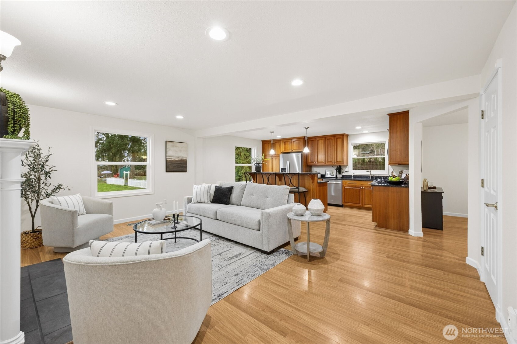 Beautiful private gated Estate situated on 4.7 acres (2 parcels) in Graham being listed under tax assessed value! This rural setting offers partial Mt. Rainier & Cascade views, no HOA, new exterior paint, large, detached garage/shop AND barn! Inside, you’ll find new carpet and new interior paint, along W/stylish new LED lighting. The inviting living room showcases a custom mantle, cozy propane fireplace, & Shaw Laminated floors, while wood-wrapped windows add warmth & character throughout the home. The kitchen is both functional and elegant, ft. Belmont cabinetry W/extra-deep 14-inch upper cabinets, custom crown molding, soft-close doors and drawers, and convenient pull-out shelving. Quartz countertops W/4-inch quartz backsplash complement the space, and the gas/propane stove and all appliances are included. Enjoy entertaining in the spacious family room with new carpet. The main-floor laundry room includes a utility sink, washer, and dryer & access to the side patio for added convenience. Upstairs, the spacious primary suite offers French doors, a large walk-in closet, included armoire, and a five-piece bath. 2 additional generously sized guest bedrooms and a full guest bath complete the second floor. Outside, the property truly shines W/fully fenced layout and partial cross fencing, a private pond, 23 tree orchard, huge garden area, and a 12-zone sprinkler system in the front yard. Other updates include newer roof (2018) & electric hot water tank (2019).