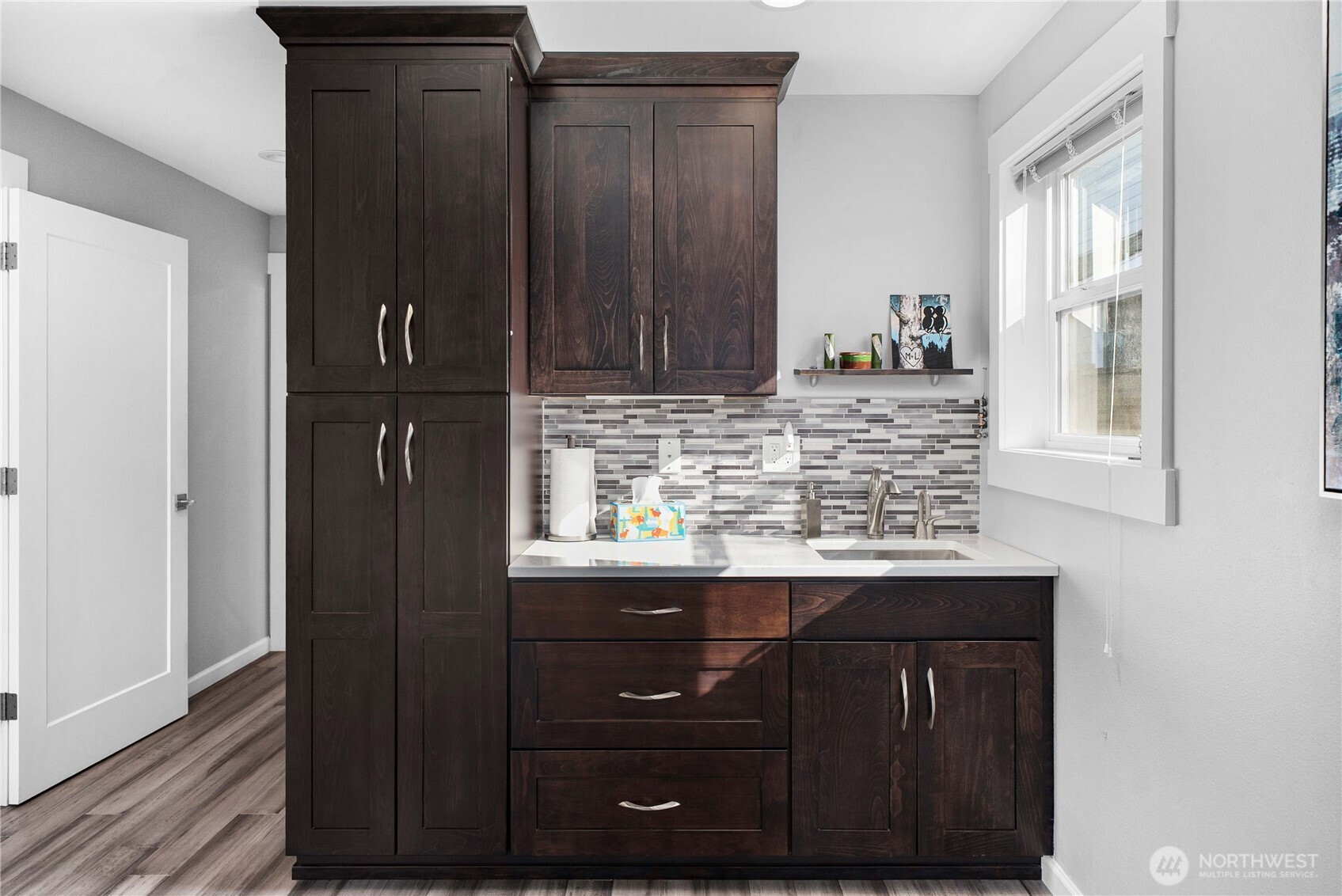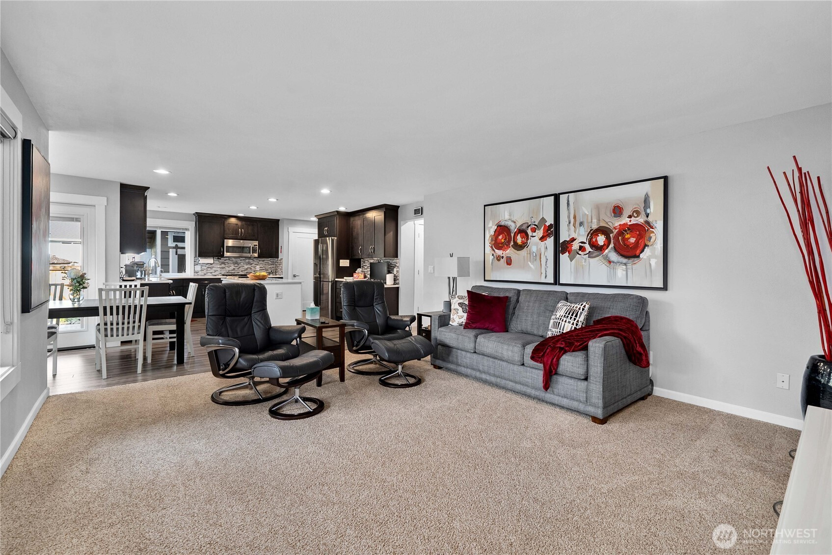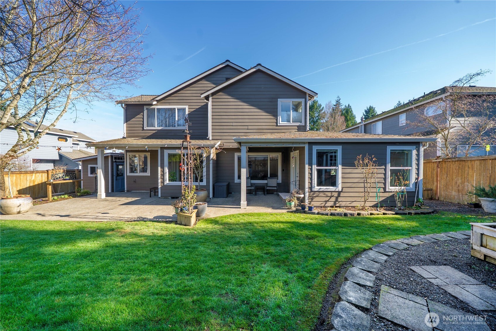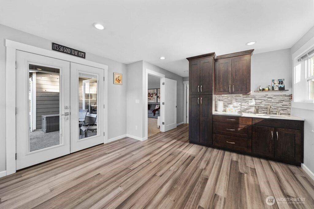 Beautifully updated & meticulously maintained by the original owners, this 4-bedroom + bonus room, 4 bath home features a rare main-level multi-generational suite with separate living quarters, ideal for an in-law suite or extended living. This private addition offers a spacious bedroom, 3/4 bath, walk-in closet & its own living area with wet bar, plus direct access to the covered back patio, creating the perfect setup for guests or extended stays. The main home features a fully remodeled kitchen with new cabinetry, quartz countertops & updated appliances. Bathrooms have been refreshed with new cabinetry, quartz counters & flooring. Interior upgrades include engineered hardwood flooring, new carpet, updated doors & trim, plus added window trim that elevates the home’s finished feel throughout. The primary suite features a spa-inspired bath with heated tile floors and quartz countertops. Enjoy a spacious walk-in glass shower with designer tile and rainfall showerhead, plus a standalone soaking tub. The suite also includes an updated walk-in closet. Major improvements include a new gas furnace (2025), roof (2017) & an extended covered patio ideal for year-round outdoor enjoyment. A unique outdoor cooking shed added in 2024 is plumbed for LNG & electricity & offers excellent versatility for entertaining. Conveniently located in the sought-after Puyallup SD near parks, shopping, dining & everyday amenities with easy access to Meridian & commuter routes throughout Puyallup.