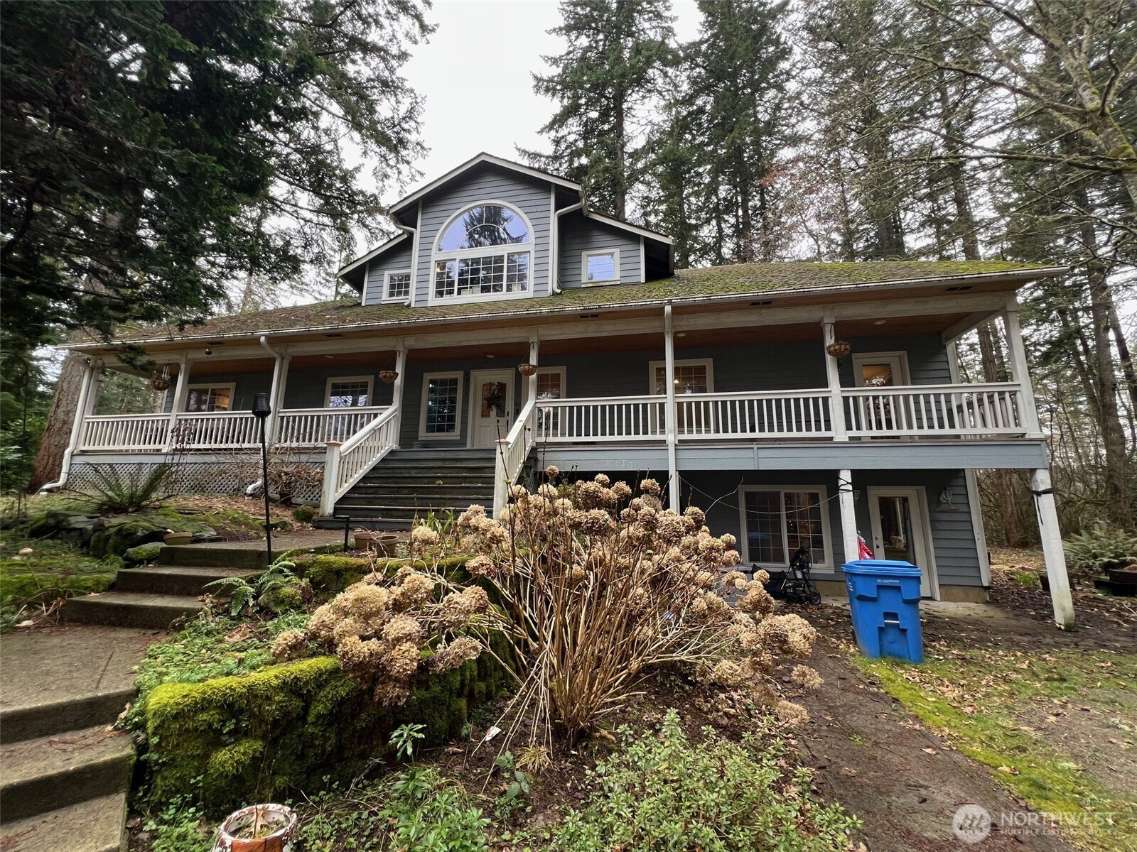 This private oasis is situated at the end of a lush driveway is nestled on 2.5+ acres. The main floor features an open kitchen that is complementary to the formal dining room and the large living room with fireplace. The entire upper floor is the massive primary suite complete a walk-in closet and bathroom with a shower and soaking tub. The entire lower floor can serve as a bonus featuring its own entrance, utility room, and family room. The expansive detached garage also has an office and shop. Move quickly as this property will not last.