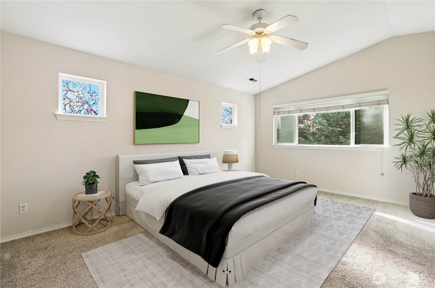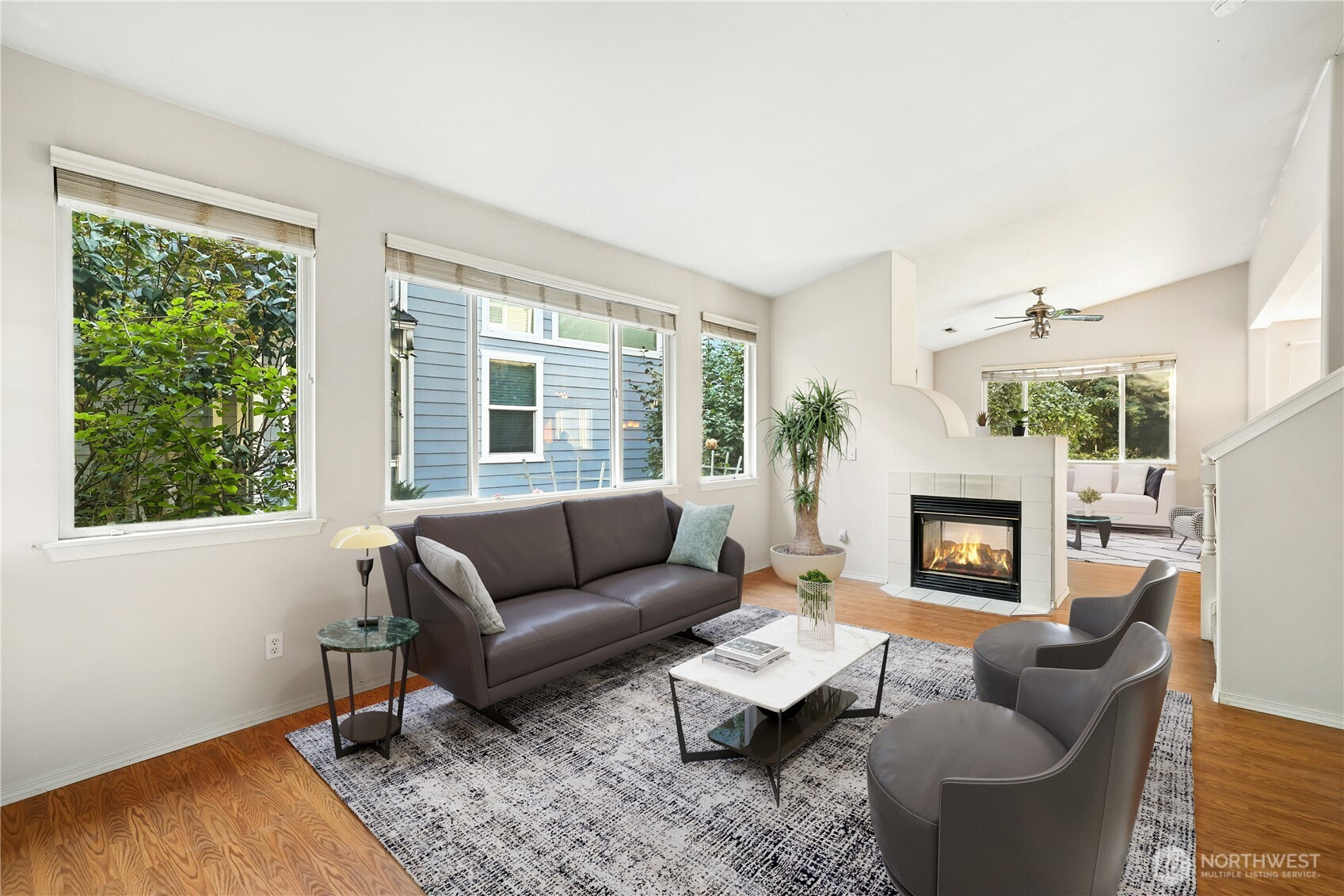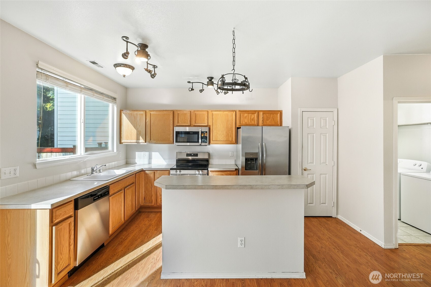 Refreshing, open, and filled with natural light—this 3-bedroom, 2.5-bath home in a gated community is truly better than new. Fresh interior paint, new carpet, and new appliances make it move-in ready. The inviting layout features soaring ceilings, a see-through gas fireplace, spacious bedrooms, and a generous primary suite. The kitchen shines with an island bar and brand-new appliances, perfect for entertaining. Step outside to a private, fully fenced yard with a cedar shed, patio, and plenty of space to relax, garden, or play. Enjoy the charming front porch and a convenient location near Costco, South Hill Mall, restaurants, schools, and parks. A turnkey home ready for you to enjoy!