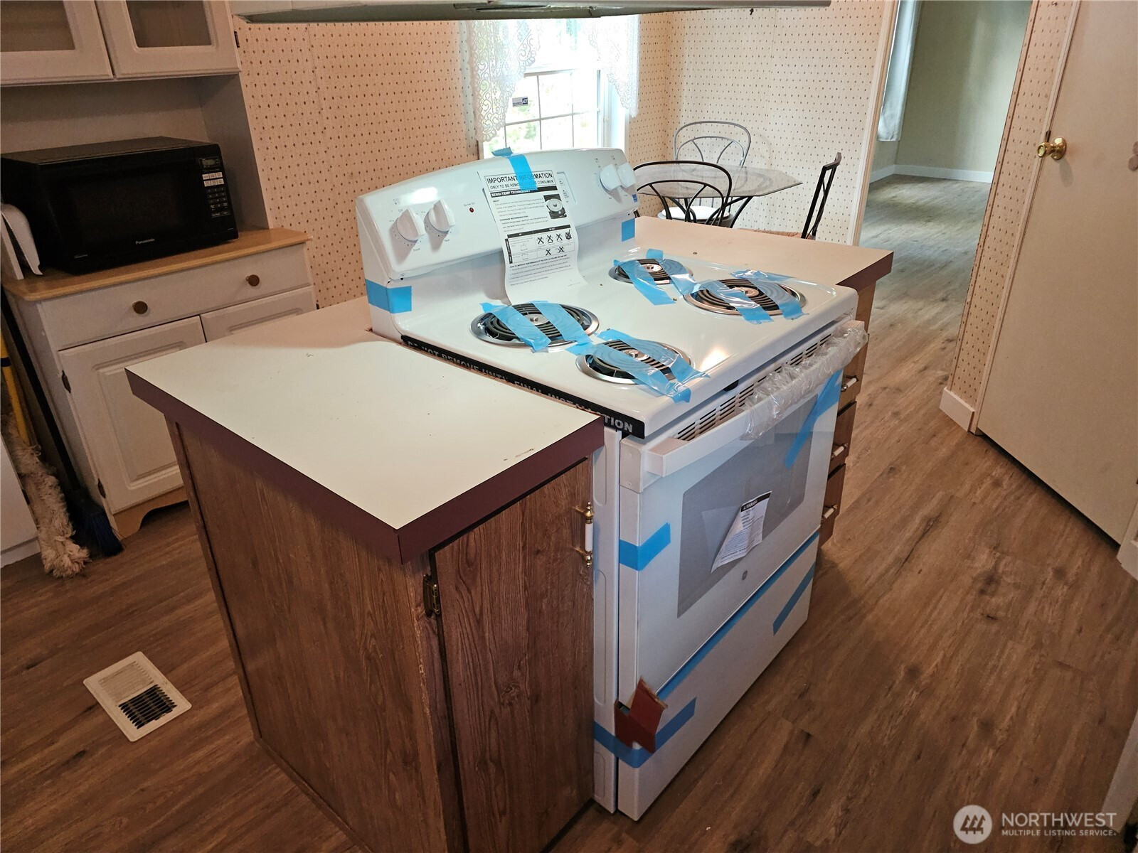 This move-in ready home features brand new luxury vinyl plank flooring throughout and new stainless steel appliances. Comp Roof. The spacious primary suite includes a full bath and dual closets. Enjoy a bright kitchen with a breakfast bar and pantry. Situated on a desirable corner lot, this home offers a private paved driveway, carport, and storage shed. Located in a well-maintained park with a play area, picnic space, and RV parking. Space rent is $1,100/month and includes water and sewer. Owner financing available—must be park approved.
