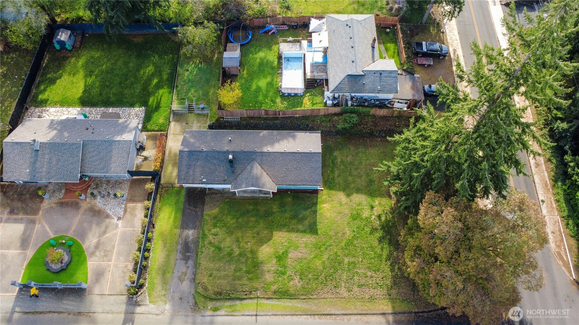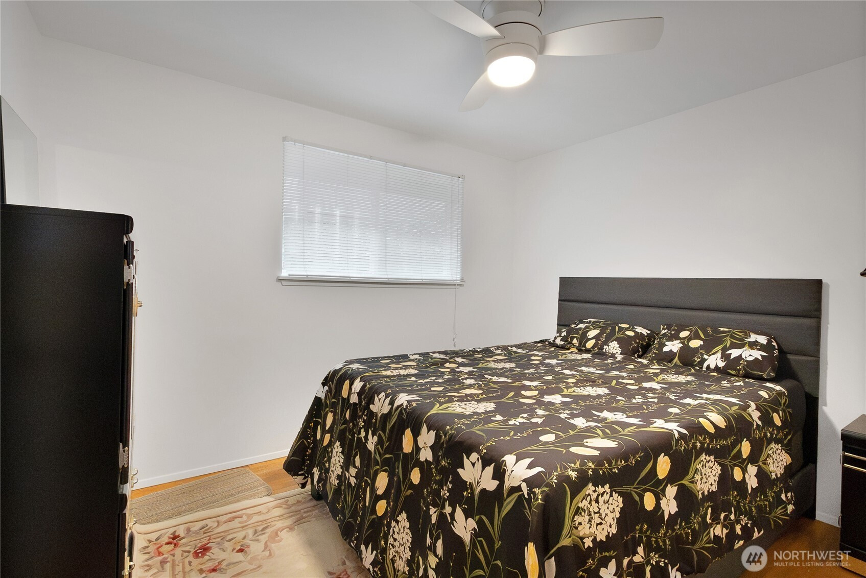 Conveniently located near Lakewood Towne Center and I-5 for easy commuting, this charming 3 bed / 1 bath rambler sits on a corner lot and offers comfortable one-level living! Enjoy newer hardwood laminate floors throughout and a cozy living room with a gas fireplace and ceiling fan. Beautifully updated full bath features a stylish sliding barn door and all bedrooms include hardwood floors + ceiling fans. The bright and spacious bonus room provides great flexibility- perfect for a home office, gym, or playroom- plus a separate utility room for added convenience. The backyard offers extra parking space and a partially fenced grassy area ready for pets, play, or entertaining. A great home in a convenient location!