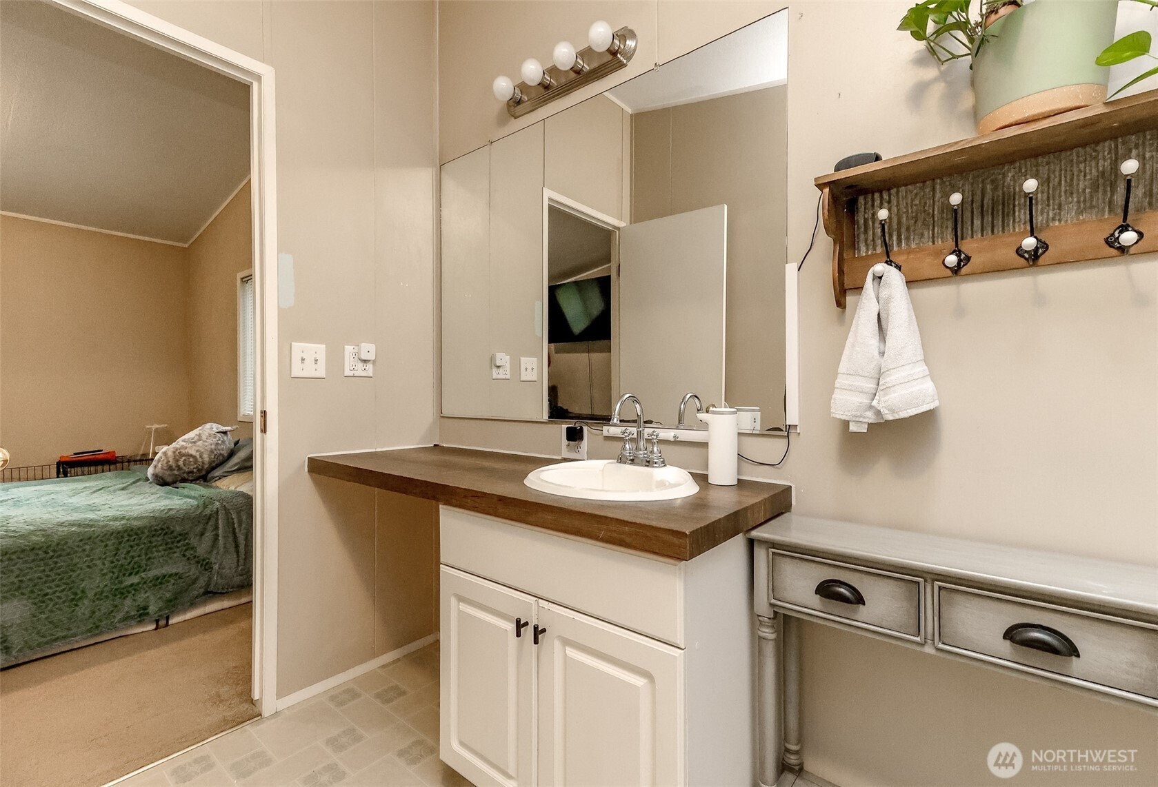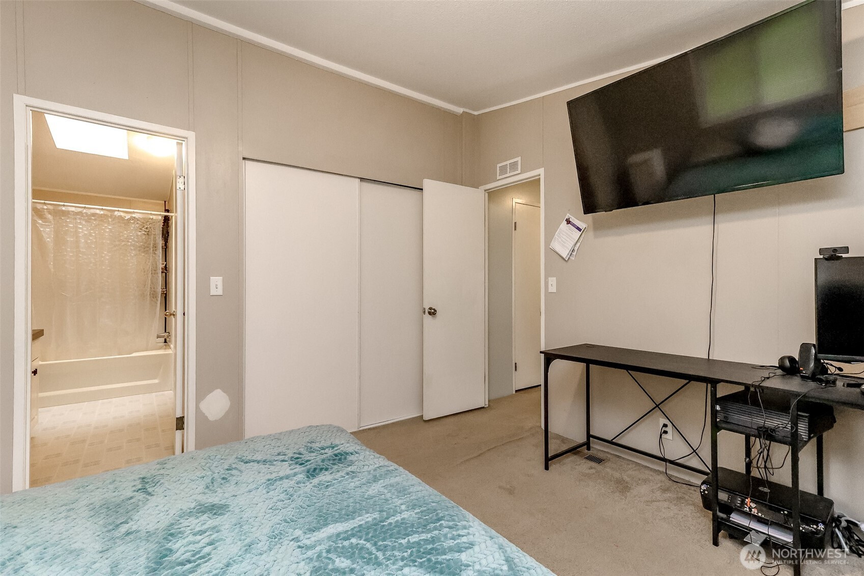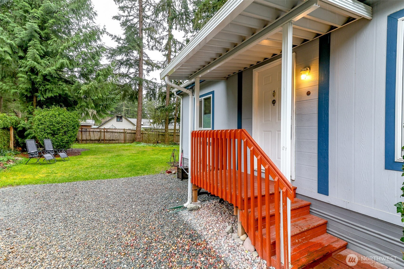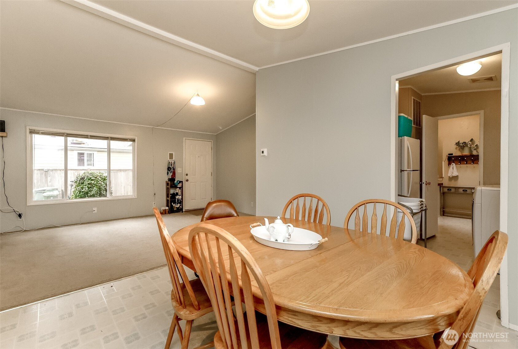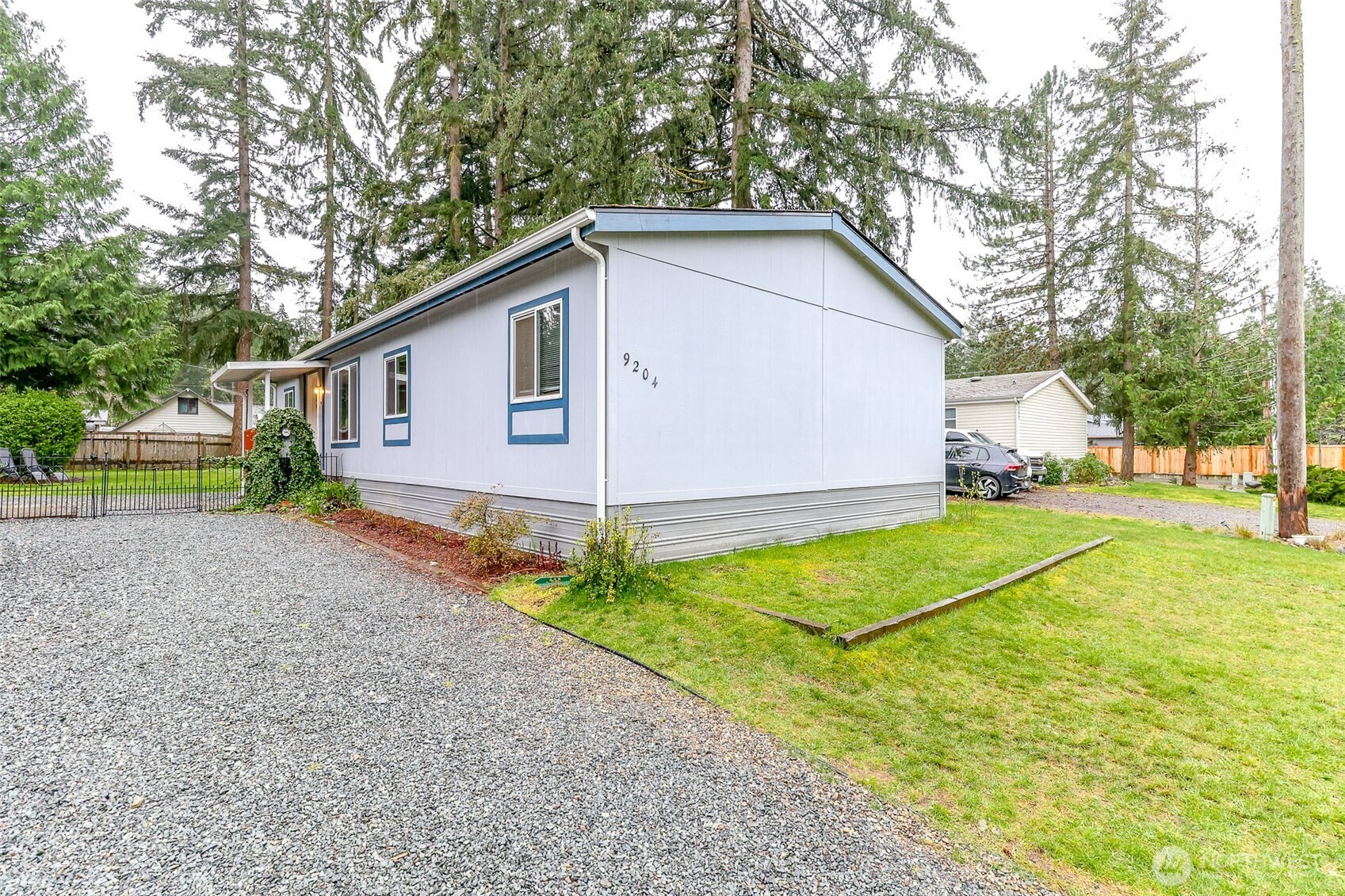 Large lot in all ages park. Huge yard with plenty of parking. Primary bedroom with en suite at one end of home, 2 beds with full bath at the other end. Two living areas, and dining room off kitchen great for entertaining. Plenty of storage and cabinets. Newer carpet and paint 2 years old. Space rent includes septic and garbage. Park approval required. Call today!
