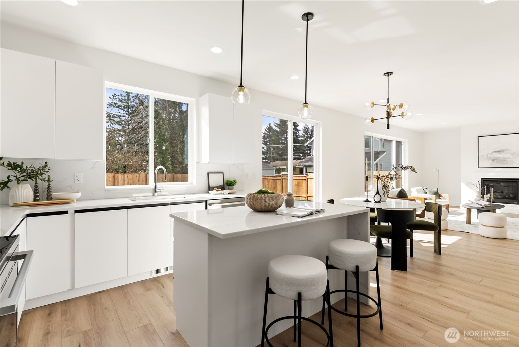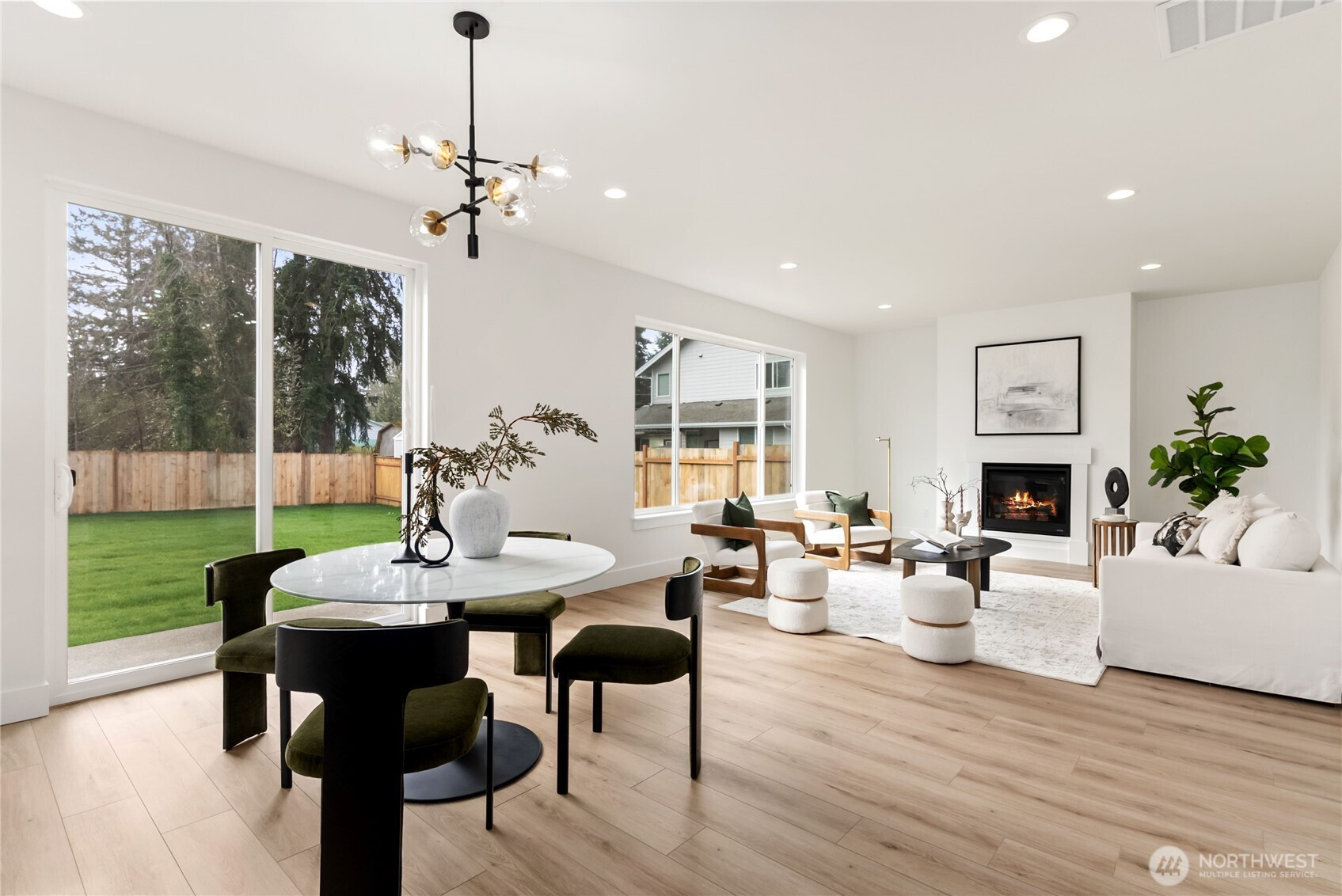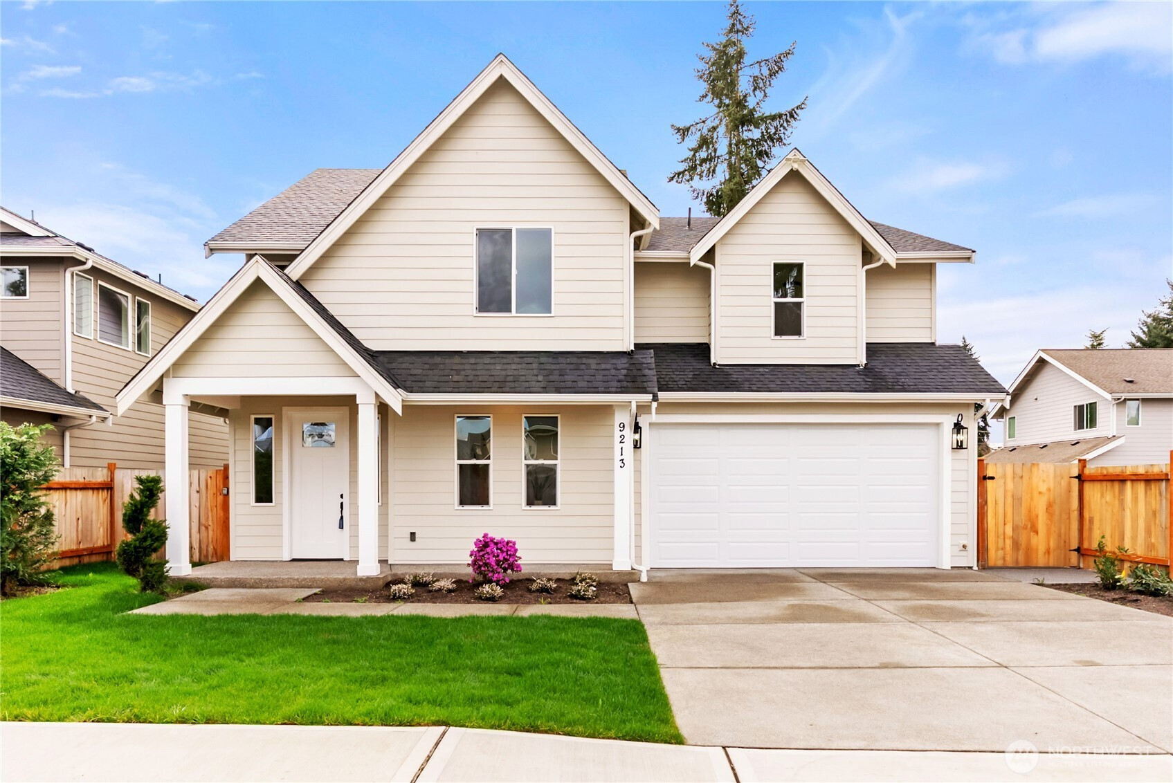 Beautiful new construction home tucked away on a quiet dead-end street in Tacoma! This spacious 2,493 sq ft residence offers 4 bedrooms plus office/bonus room, 2.5 baths, and 2 car garage. Enjoy 9 ft ceilings, abundant natural light, and upgraded carpet with premium pad. The stunning kitchen features modern cabinetry, full tile backsplash, large island, all appliances included, and a generous pantry. Living room and bright open family room with a cozy gas fireplace.Upstairs you'll find a flexible loft and bonus room, ideal for media, play, or workspace. The primary suite offers a true retreat with tiled bathroom floors, soaking tub, separate shower, and walk-in closet. Main bath also features tile flooring.Covered front porch and beautifully landscaped front and backyard, complete with a back patio and full concrete walkway for easy access. Fully fenced yard provides privacy and functionality. Built with upgraded insulation for efficiency and comfort year-round. No HOA. Convenient Tacoma location close to amenities, parks, and commuter routes. Move-in ready!