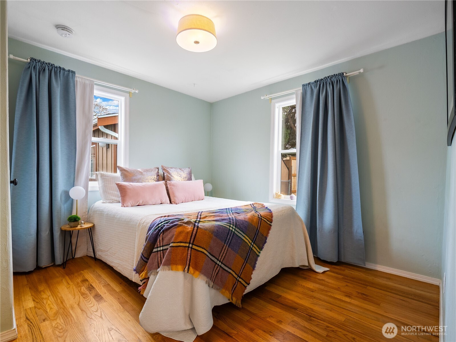 Cute as a button and move-in ready! This beautifully remodeled 3-bedroom, 1-bath home offers 1,075 sq ft of comfortable living on a generous 8,075 sq ft lot. Inside, you’ll love the hardwood floors in the living room, stainless steel appliances, and thoughtful updates throughout. A bonus room on the second level provides flexible space for a home office, playroom, or guest retreat.Step outside to enjoy the fully fenced yard with mature fruit trees—perfect for relaxing, gardening, or entertaining. A detached garage adds convenience and extra storage. Stay comfortable year-round with central A/C. Ideally located close to shopping, schools, and restaurants, with easy access to I-5 for commuters. This charming home blends comfort, functionality, and location—don’t miss it!