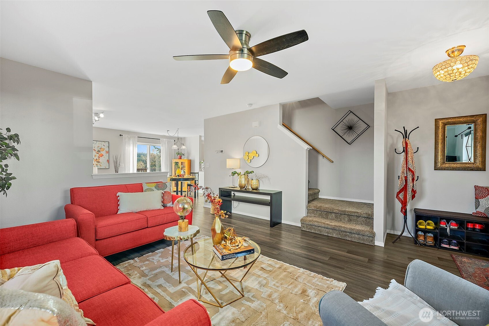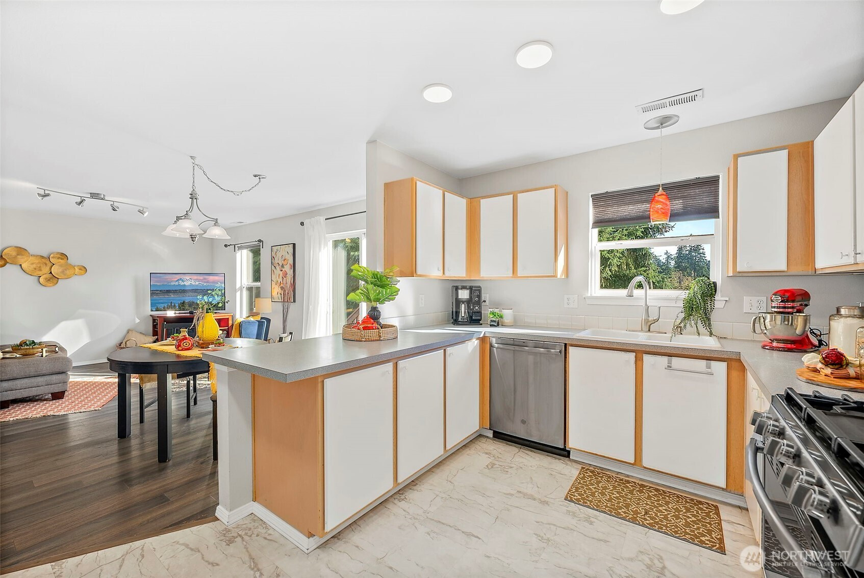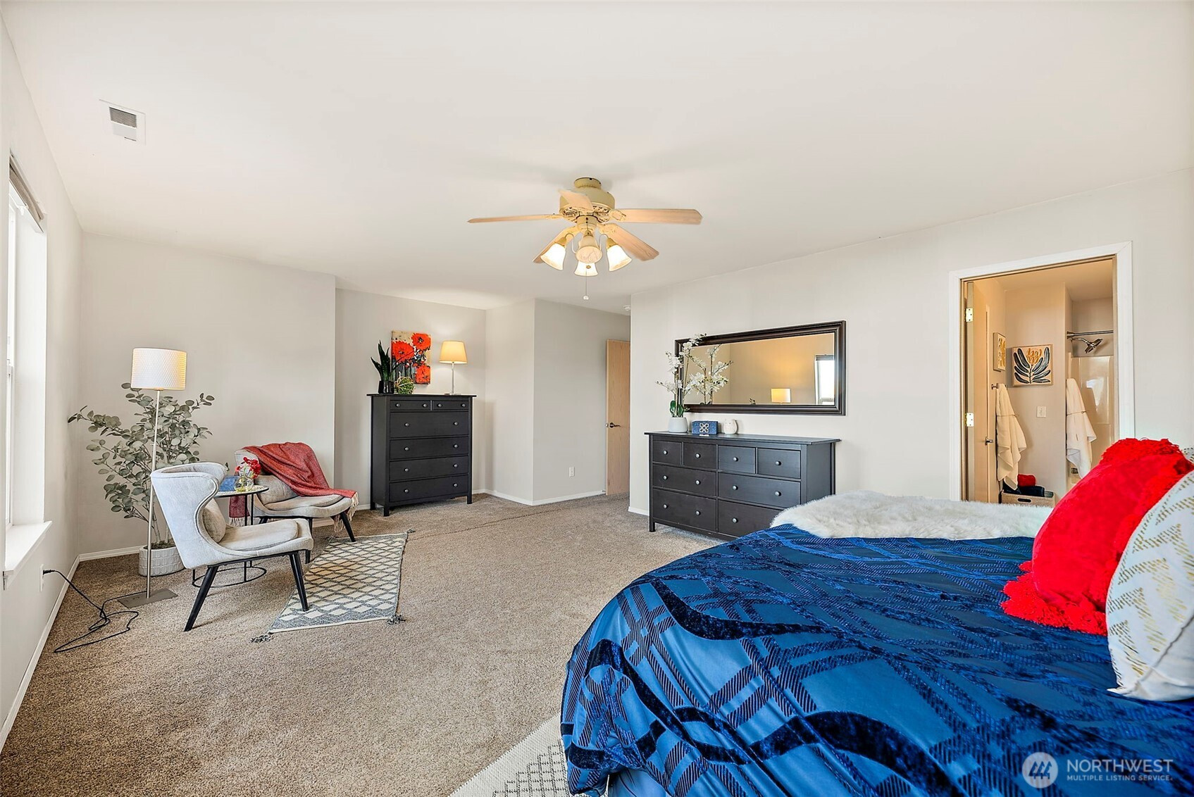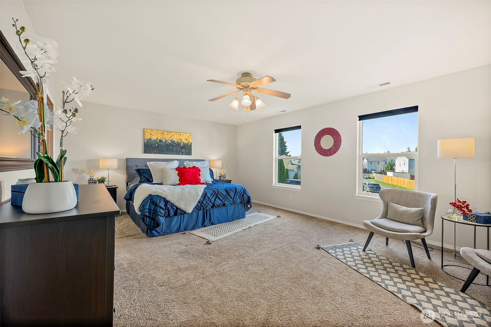 Lovingly maintained home in a quiet corner of a gated South Hill community w/ MT. RAINIER VIEWS! From the front porch, step into the formal living room, separated from the family room by a pony wall. Family room is open to the dining space & kitchen. All making the 1st floor open & inviting. Huge walk-in-pantry! Also on 1st floor are a built-in office nook & 1/2 bath. Upstairs are a great loft area, laundry room, & all bedrooms, incl. large primary suite w/ WIC & full bath. Back yard features a large deck, perfect for entertaining & enjoying your mountain view, fire pit & raised garden beds. New furnace & heat pump AC for year-round comfort! New appliances, finishes & fixtures throughout in 2018. Close to all South Hill shopping & dining!