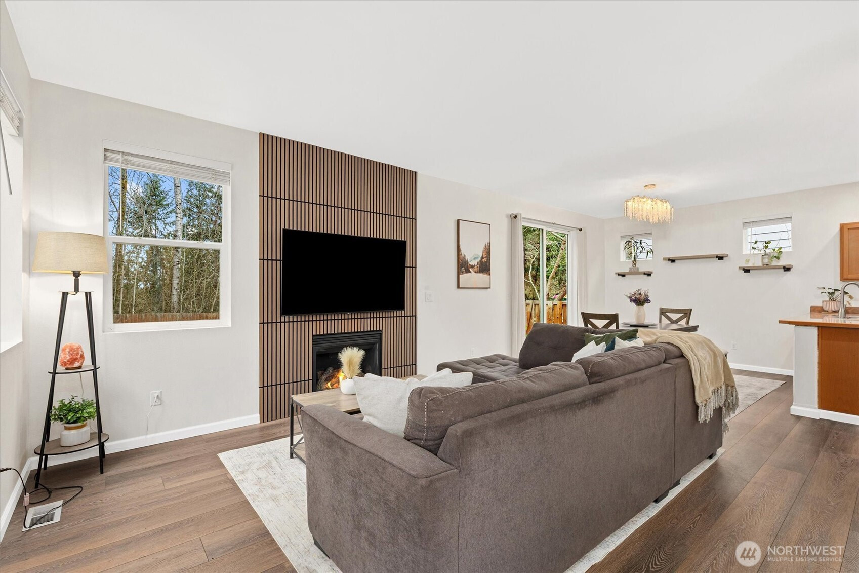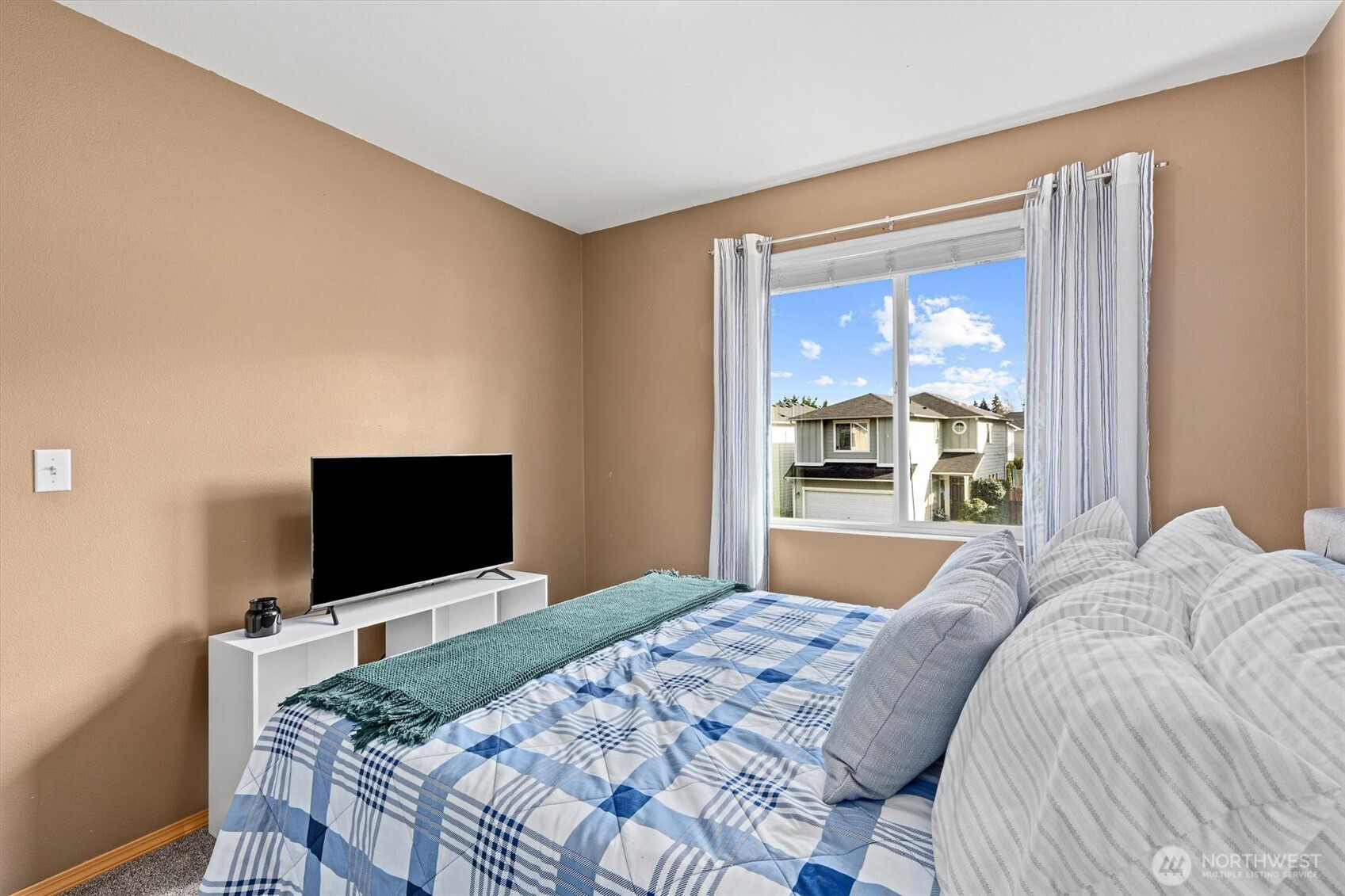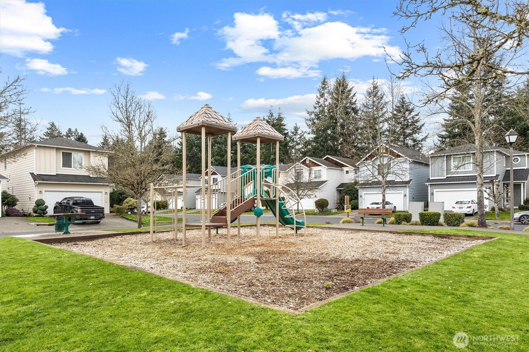 Welcome to Sterling Ridge at Silver Creek, where privacy and thoughtful updates shine in this beautifully maintained 3-bedroom, 2.5-bath home backing to a peaceful lush greenbelt. The open-concept layout seamlessly connects the kitchen, dining, and living areas, creating an inviting space for everyday living and entertaining. New durable vinyl plank flooring spans the main level, offering modern style and easy maintenance. An abundance of windows fill the home with natural light and showcase the tranquil wooded backdrop. The kitchen features new stainless steel appliances, double oven, generous counter space, and a spacious pantry designed for both function and style. Upstairs, the oversized primary suite offers a relaxing retreat with ample closet space and a well-appointed en suite bath complete with a soaking tub. Two additional bedrooms provide flexibility for guests or household needs and the versatile den makes an ideal reading nook or home office. A finished two-car garage with brand-new epoxy flooring, newer 2024 furnace, tesla charger and shelving adds convenience, while the expansive backyard offers room to garden, play, or unwind in a private setting. Located near parks, Puyallup schools, shopping, and commuter routes. This home blends comfort, functionality, and peaceful surroundings in one exceptional package.