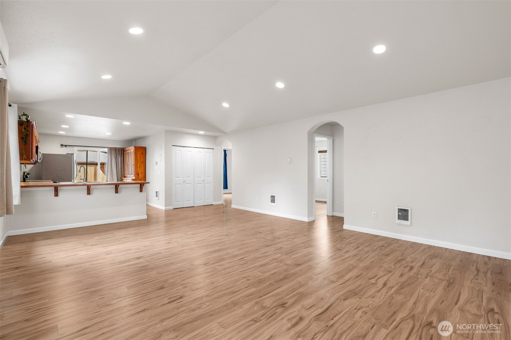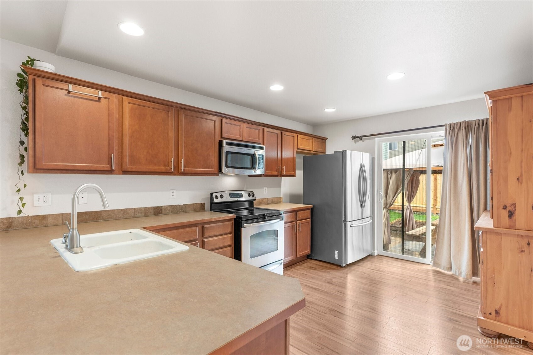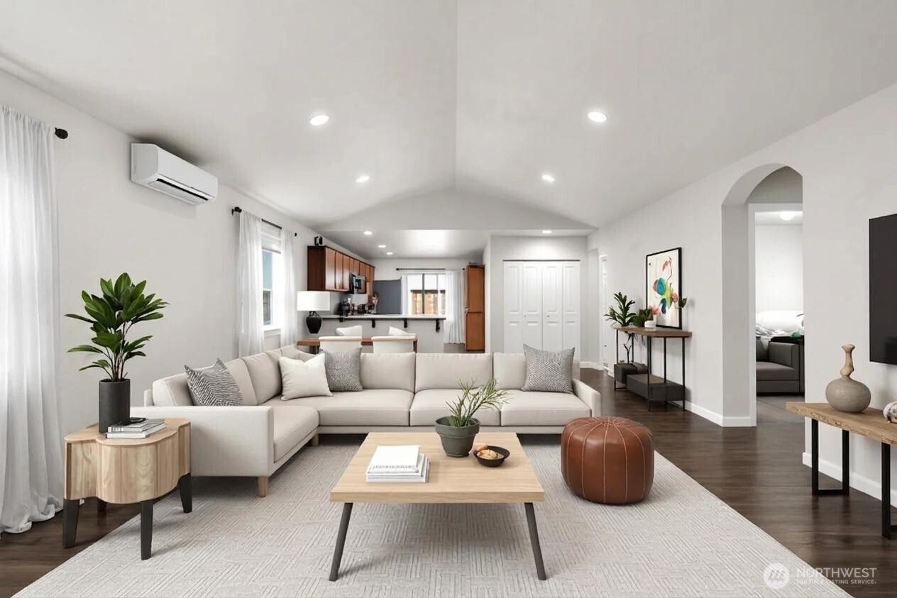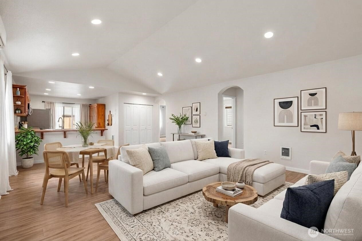 Single-level home in Graham offering 3 bedrooms, 2 bathrooms, and approximately 1,276 sq ft of living space. Built in 2009, this rambler home features a functional layout with open living and dining areas designed for efficient everyday use. Interior updates include new paint and new flooring (2026). Kitchen offers ample cabinetry and workspace with adjacent dining area for easy flow.Primary bedroom includes attached bath and 2 additional bedrooms provide flexibility for guest rooms, home office, or other uses.Exterior features a fully fenced yard with raised garden beds, situated on approximately 4,500 sq ft lot with driveway and garage parking.Located approximately 0.5 mi to Meridian Ave E, ~1.5–2.0 mi to Graham Town Center, and ~2.0 mi to Frontier Park, with access to Bethel School District schools.