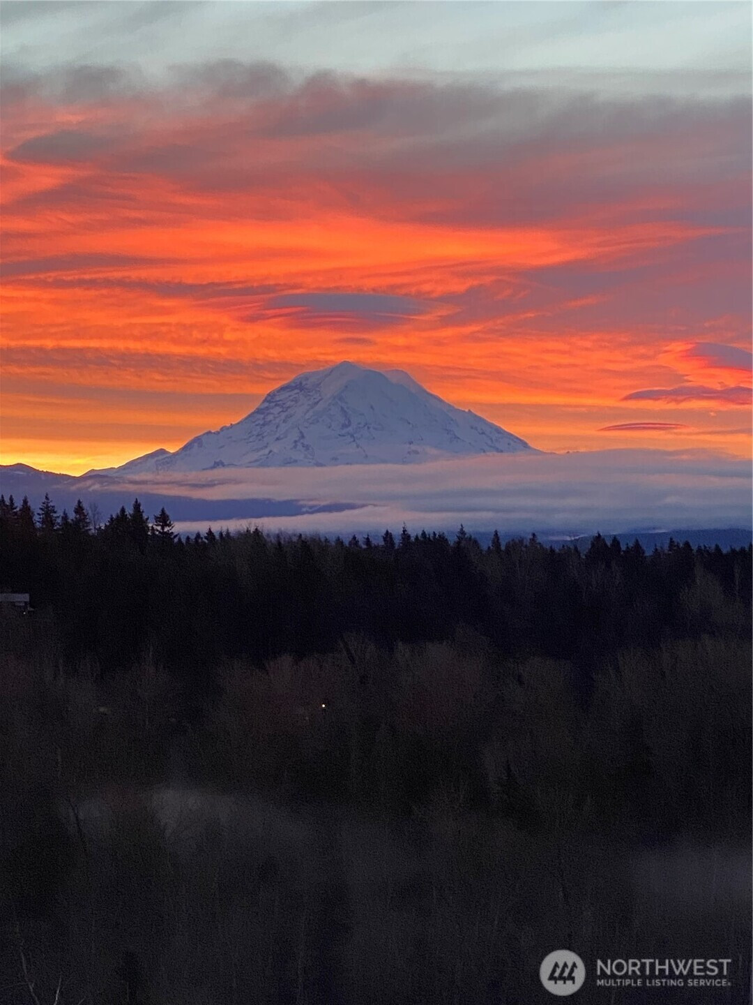 Be ready to hold your breath when you see Mt Rainier out of the back windows of this home. The view is everything and more than you could imagine. This is a truly a special find. You have no neighbors on the back side of the property except for the occasional deer or rabbit that stops by. The primary suite is located on the main level, with the other two bedrooms and full bath upstairs. Vaulted ceiling in the living room. view of Mt Rainier and Cascades from most of the rooms in the home. Not only is this a peaceful location since it is both gated and on a cul-de-sac, but it is located within a few moments drive to Hwy 410 so you can quickly be on your way to anywhere.