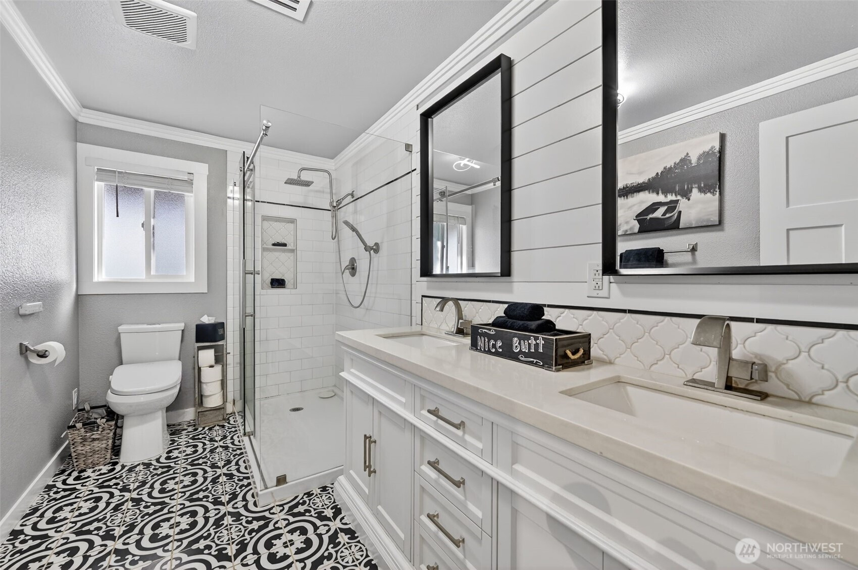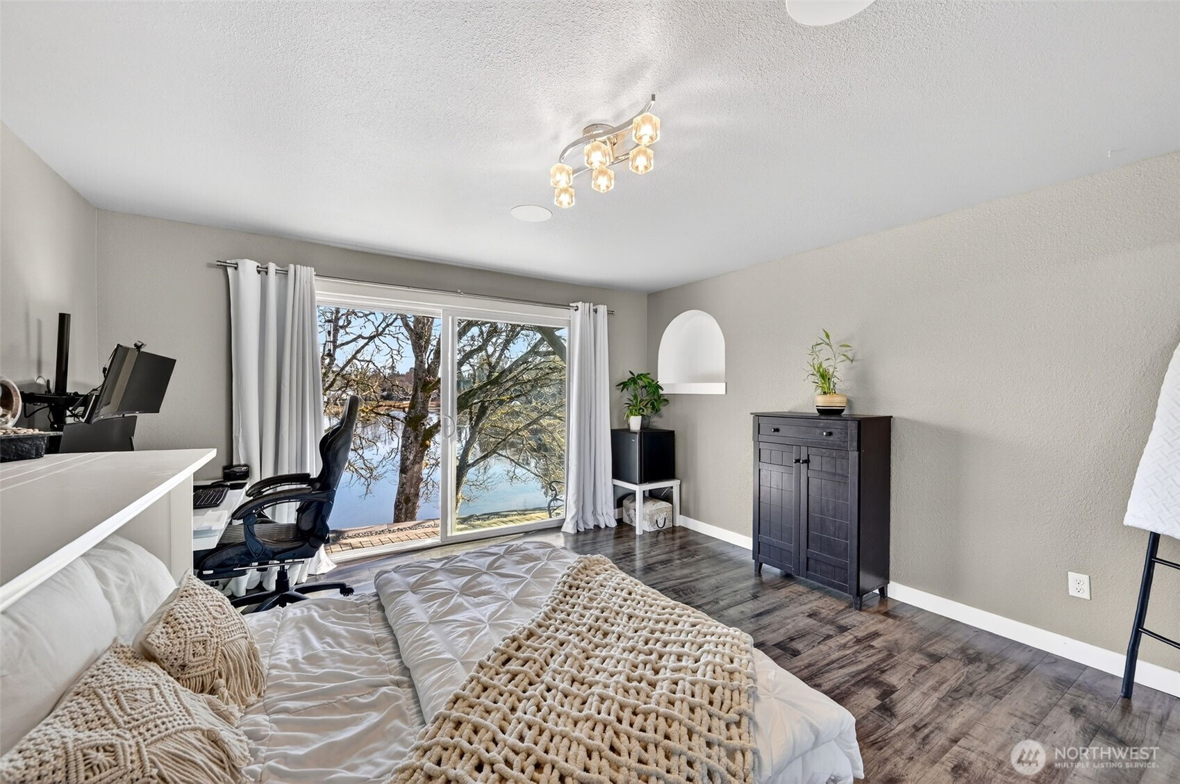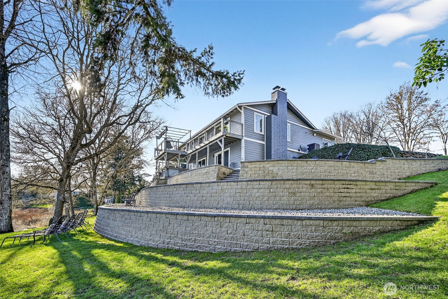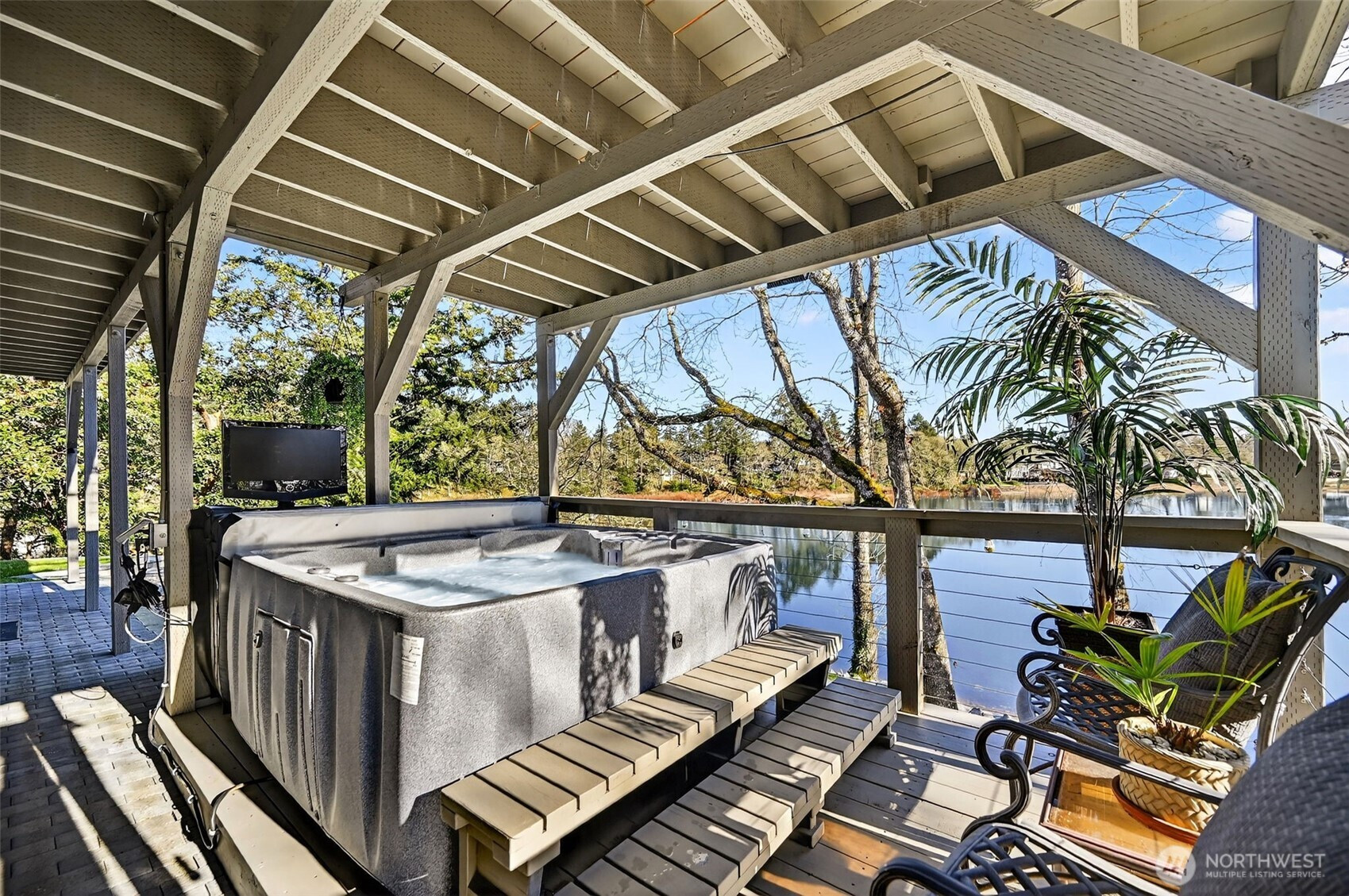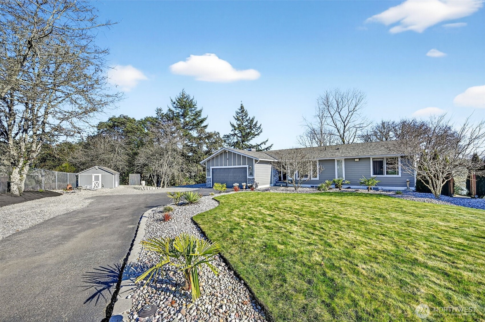 Nestled on 1.1 acres of private lakefront, this impeccably maintained 4-bedroom, 3-bath home offers 115 feet of rare no-bank waterfront with a private dock and serene water views. The main level lives like a single-story home with two spacious bedrooms and seamless living spaces that open to the lake. The expansive lower level is ideal for generational living, featuring a kitchenette and bar, two additional bedrooms, a large family room, and a bonus space currently used as a home gym. Thoughtfully designed with modern infrastructure, the home includes fully wired smart-home technology, Ethernet to every room, Sonos audio with built-in speakers throughout downstairs, indoor/outdoor Wi-Fi coverage across the property. Additional upgrades include two 200-amp electrical panels, Tesla EV charger, additional 240V garage outlet, advanced surveillance system, heat pump with A/C, and a new roof. The custom garage workshop features built-in cabinetry, professional hex LED lighting, and a hidden commercial-grade air compressor system with ceiling-mounted hose reels. Outside, enjoy a park-like setting with large decks, hot tub, custom retaining walls with lighting, and multiple storage sheds. The long asphalt driveway offers ample parking for RVs, boats, and guests. No HOA. Located minutes from the historic town of Steilacoom, parks, beaches, golf, JBLM, and I-5, this property blends waterfront tranquility with modern comfort. Please see virtual tour and floorplan attached.