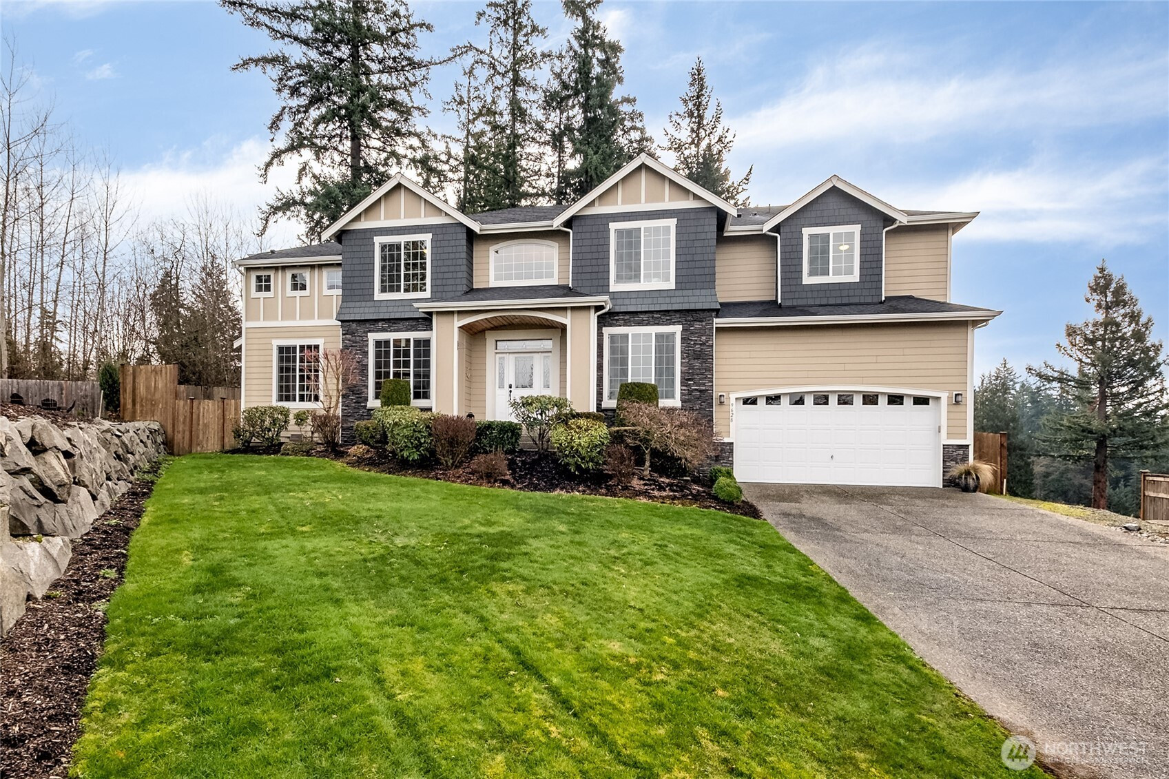 Nestled at the top of a quiet cul-de-sac in the sought-after community of Simon’s Creek, this stately JK Monarch Craftsman home offers timeless elegance with modern amenities, creating a perfect blend of comfort and style. It's spacious layout and inviting indoor and outdoor spaces make it not just a house but a warm and welcoming place t create lasting memories. Sitting on a generous .50-acre lot with a private backyard the home enjoys lovely territorial views and stunning sunsets. A grand front entry welcomes you with vaulted ceilings and extensive hardwood flooring. The main level offers formal living and dining rooms, a private den/office, and a spacious great room anchored by a gas fireplace with tile surround and white mantle. The chef’s kitchen features an oversized island with eating bar, granite counters, full tile backsplash, a large step-in pantry and stainless steel appliances. Upstairs find a luxurious primary suite with ensuite bath, tile shower, dual walk-in closets, and elegant finishes. Three additional large bedrooms and a generous Bonus room create space for a media center/game room or ? The Logan B floor plan includes an extra-deep 3-car tandem garage with loft storage, Trane heat pump, cement plank siding, and timeless Craftsman details throughout.